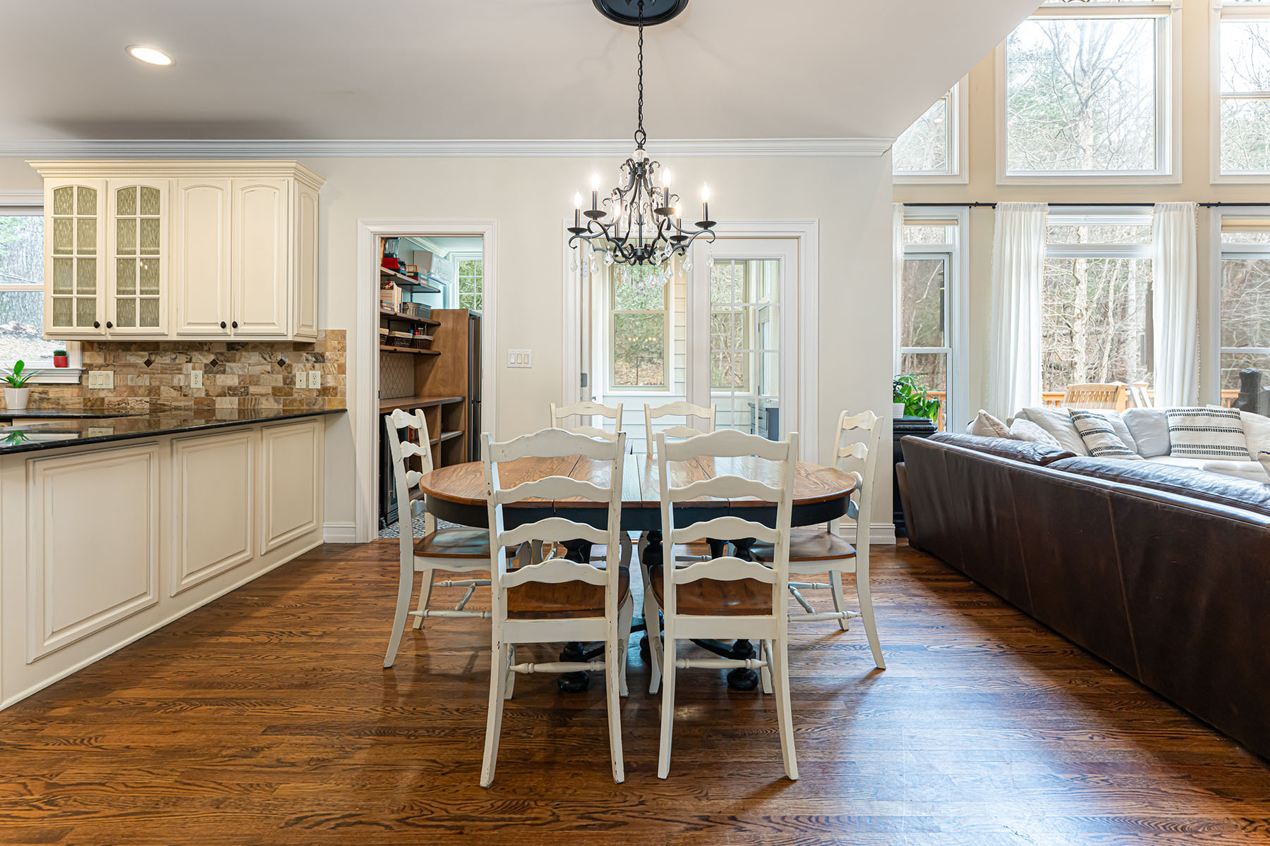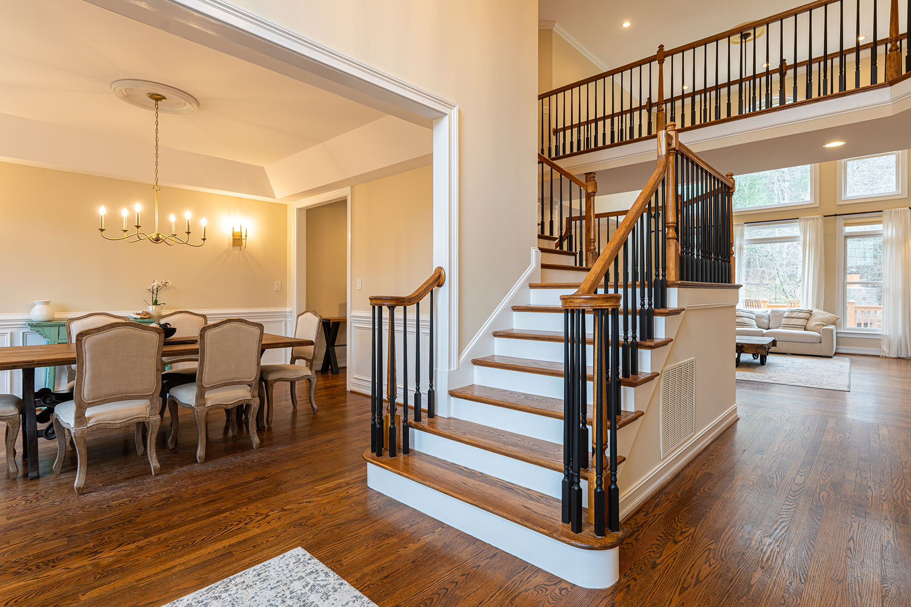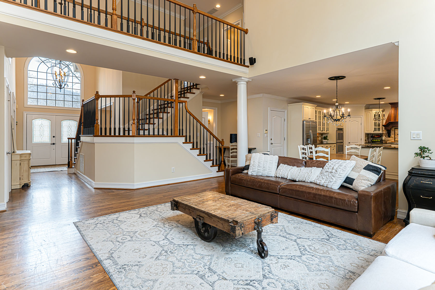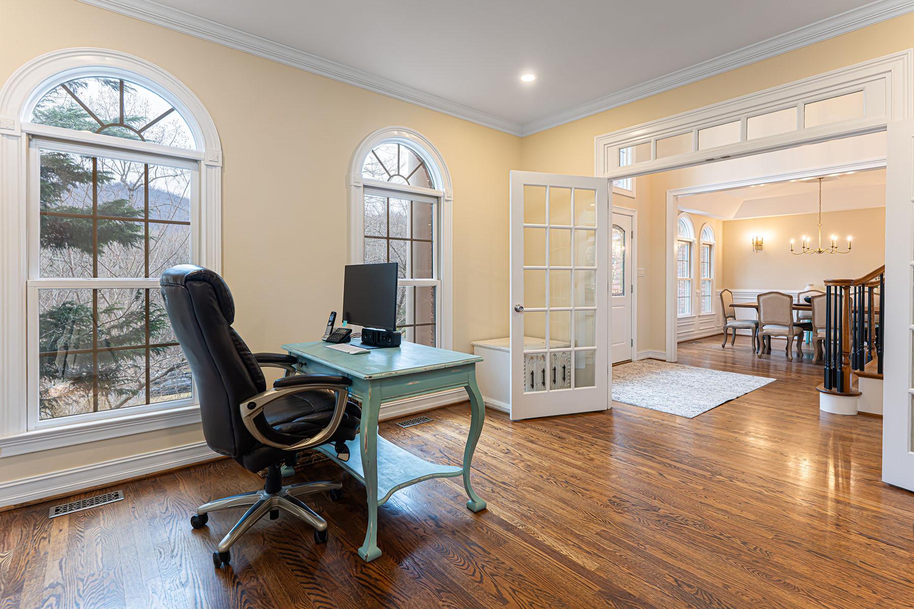 For those seeking space and access, 39 Windover Drive offers a rare combination of convenience, presence, and thoughtful design all within gated Poplar Ridge. The home unfolds across three well-defined levels, each crafted with intention. The main floor features hardwood floors, a dramatic two-story great room with a gas fireplace and custom built-ins, formal dining, a private office, and a main-level guest suite. The chef's kitchen is equipped with premium appliances, including a Wolf cooktop and vented hood, KitchenAid double wall ovens, Bosch dishwasher, expansive island, and two walk-in pantries designed for both function and scale. Upstairs, the primary suite offers a large, private retreat with its own sitting area and fireplace, a four-seasons room currently being used as an exercise room, spa-inspired bath with jetted tub and tiled shower, and an oversized walk-in closet. Additional bedrooms include both ensuite and shared configurations, providing flexibility for family and guests. The lower level is dedicated to recreation and entertaining, complete with a private theater, game room with a wet bar, additional bed/bonus, full bath, and direct access to the fenced backyard. Outdoor living extends to a large back deck, brick patio with fireplace and raised garden beds, creating an inviting setting for gatherings. A three-car main-level garage, mature landscaping, storage shed, and proximity to community amenities further enhance this offering. Enjoy easy access with close proximity to the gate and a preferred setting directly across from the community park. Ideally located just minutes from South Asheville's premier conveniences, including Whole Foods, Ingles, Publix, dining, shopping, entertainment, and the scenic Blue Ridge Parkway, the home offers a rare balance of private gated living and everyday accessibility.