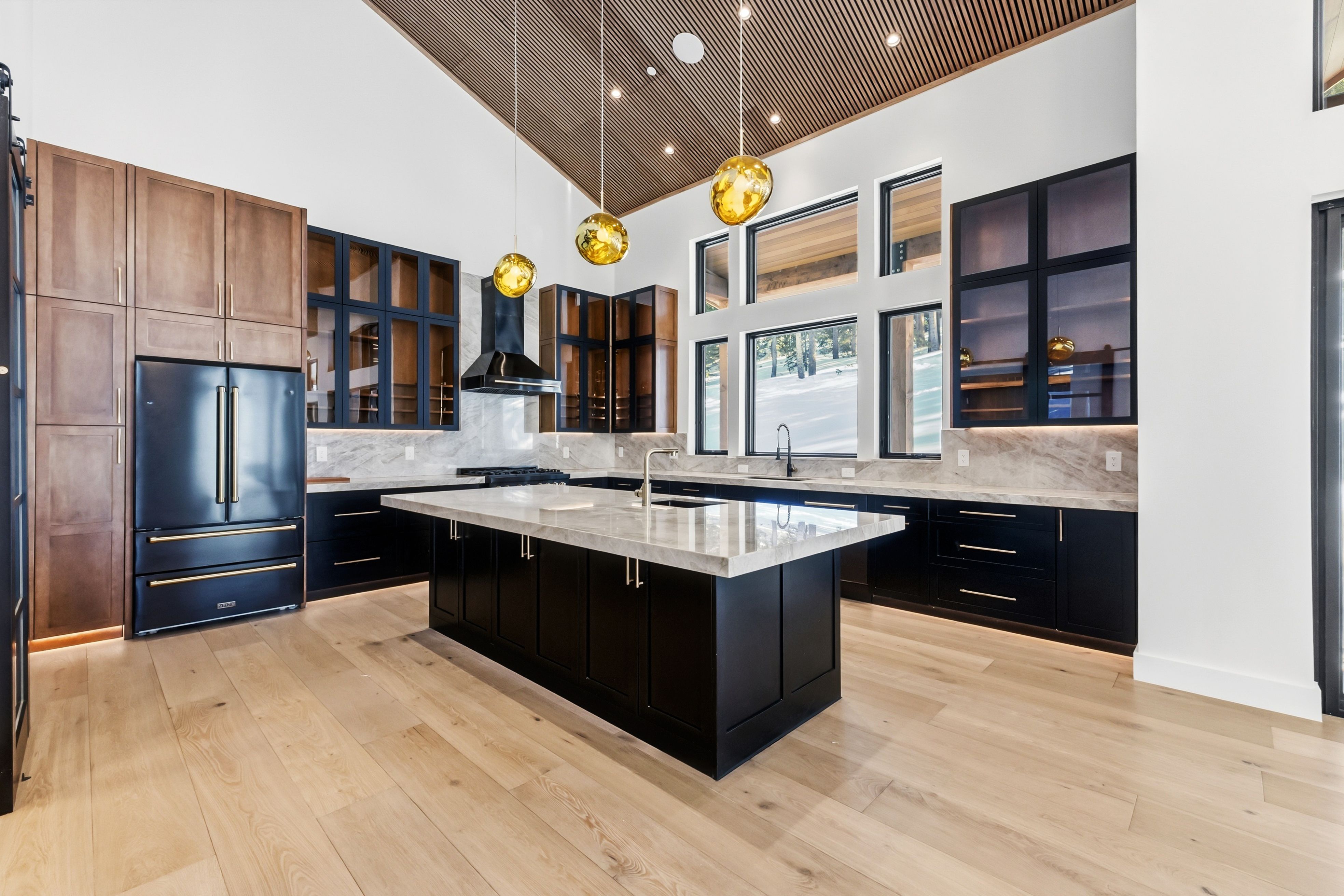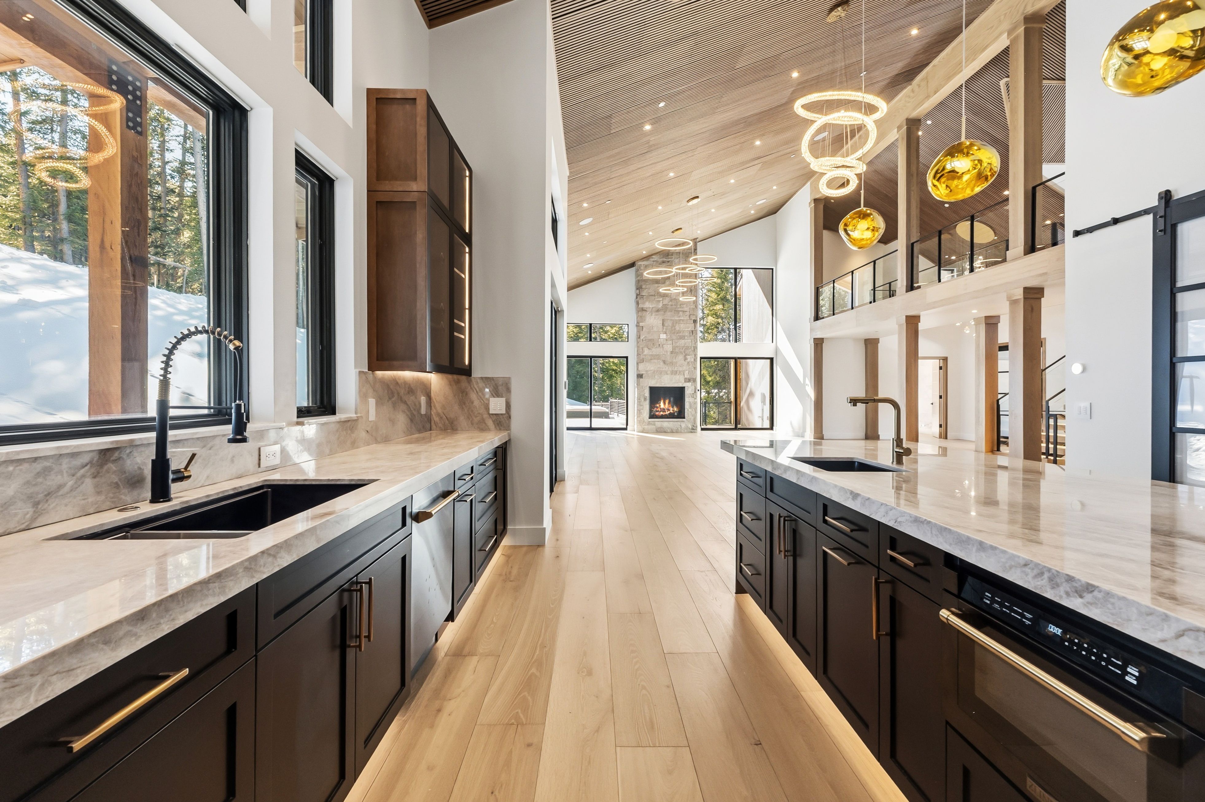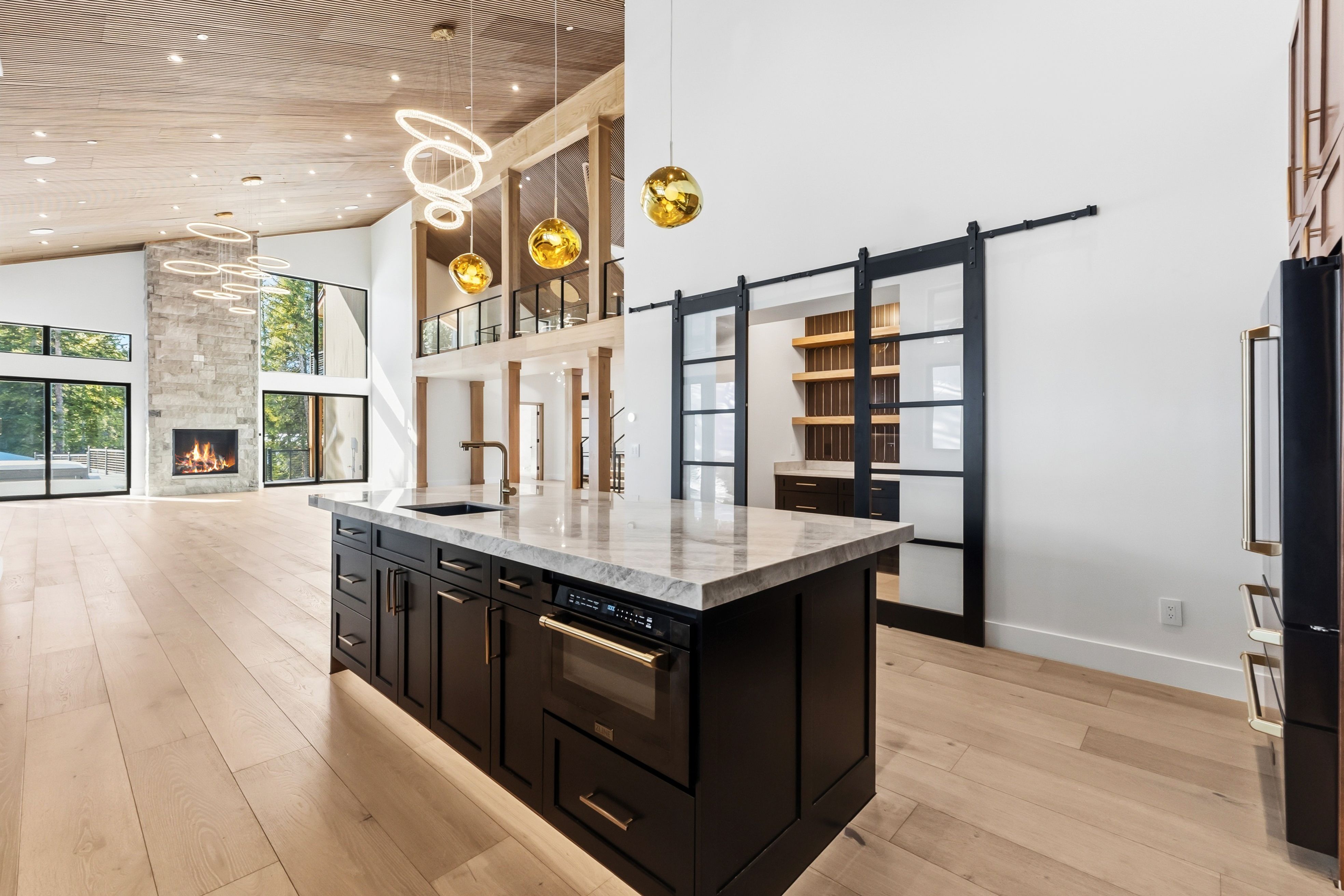 The chef’s kitchen features Zline appliances, a generous 10-foot island, and a dedicated butler pantry for both daily living and hosting. Multiple gathering spaces throughout the home are centered around fireplaces, creating inviting areas after a day exploring Breckenridge’s trails and slopes.
