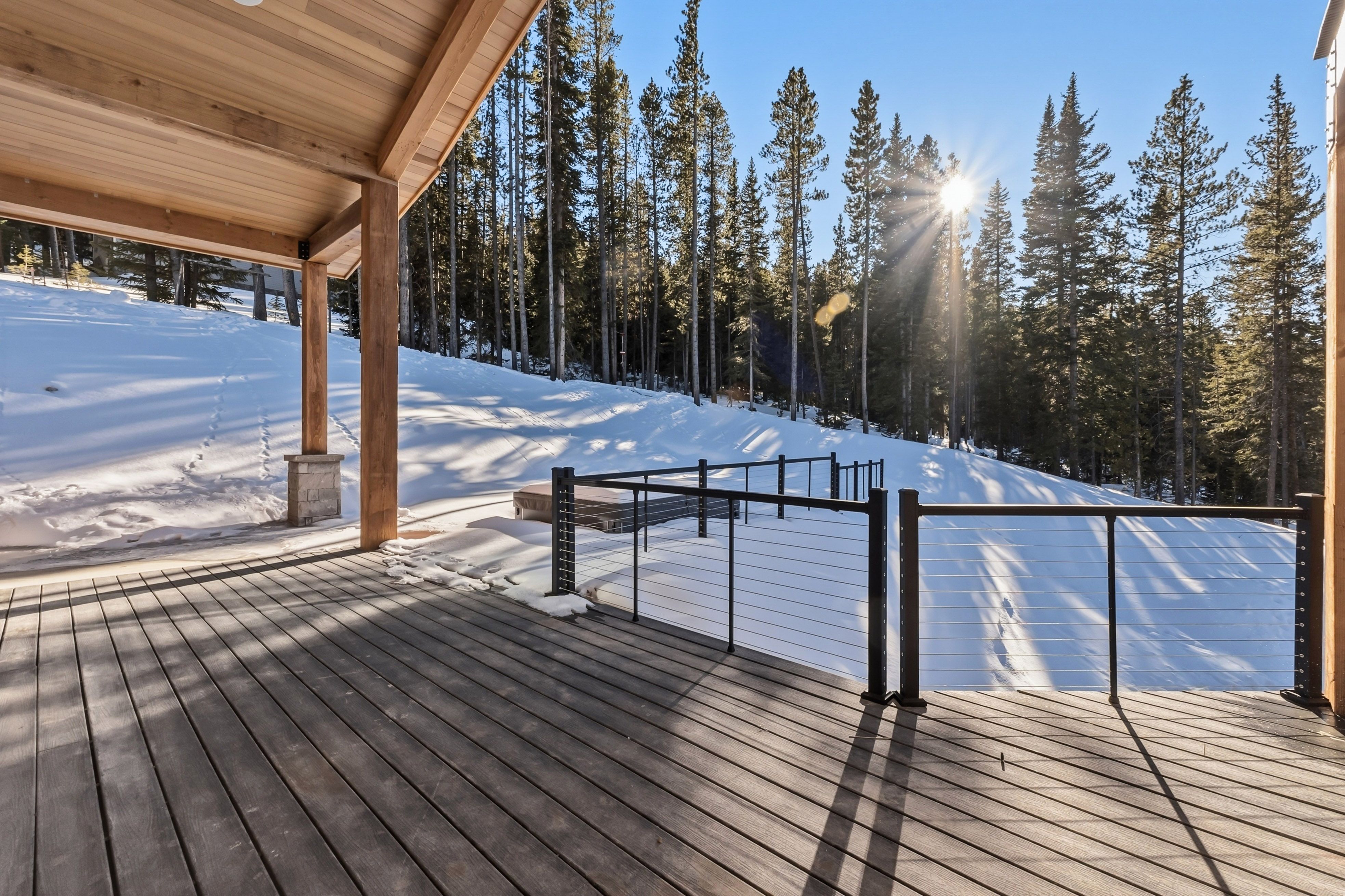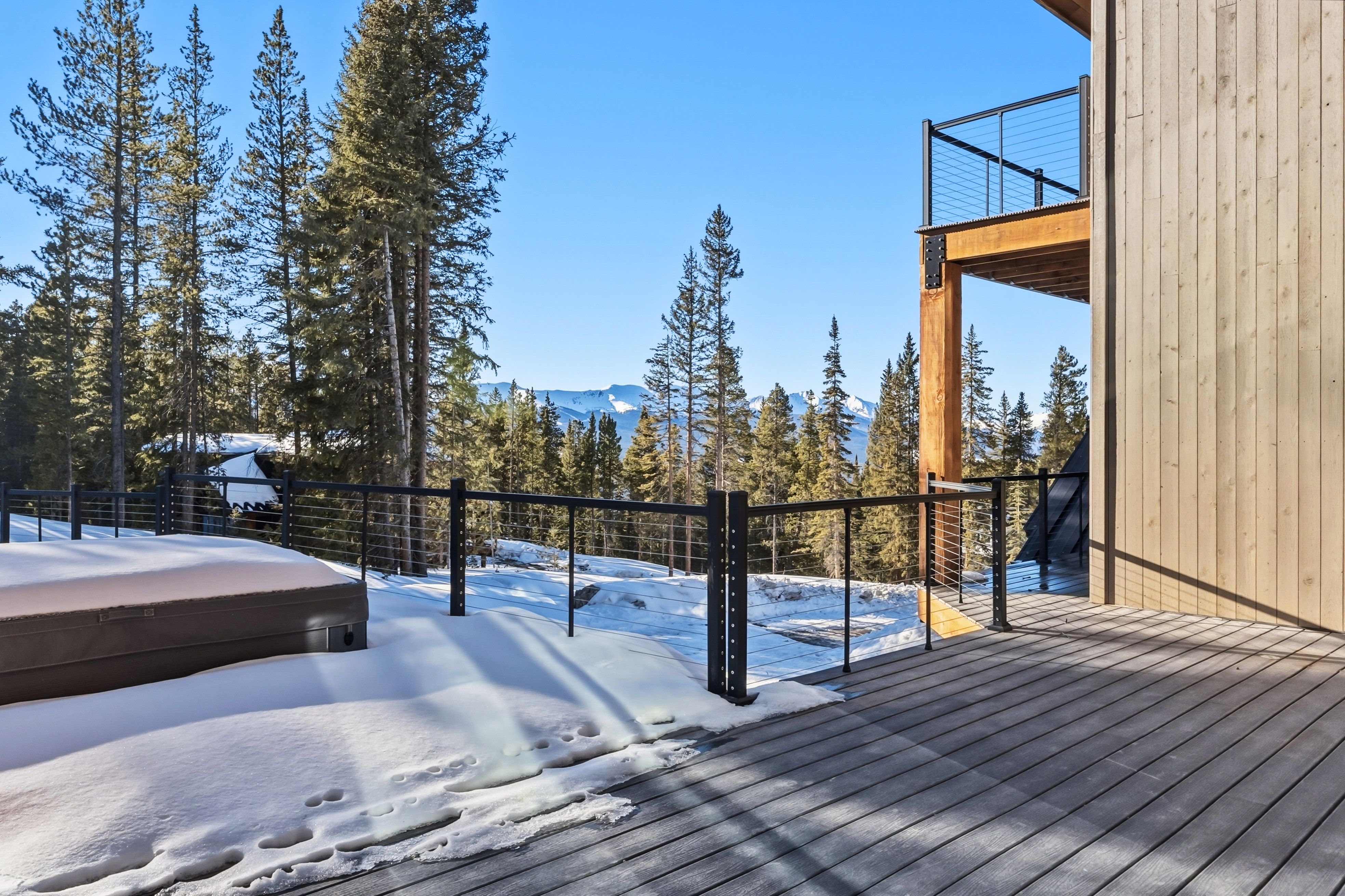 Outdoor living includes more than 2,300 square feet of decks, balconies, and patio space positioned to take in the surrounding mountains, plus a hot tub terrace ideal for relaxing after skiing or hiking. A 4-car garage provides ample storage for vehicles and mountain gear.