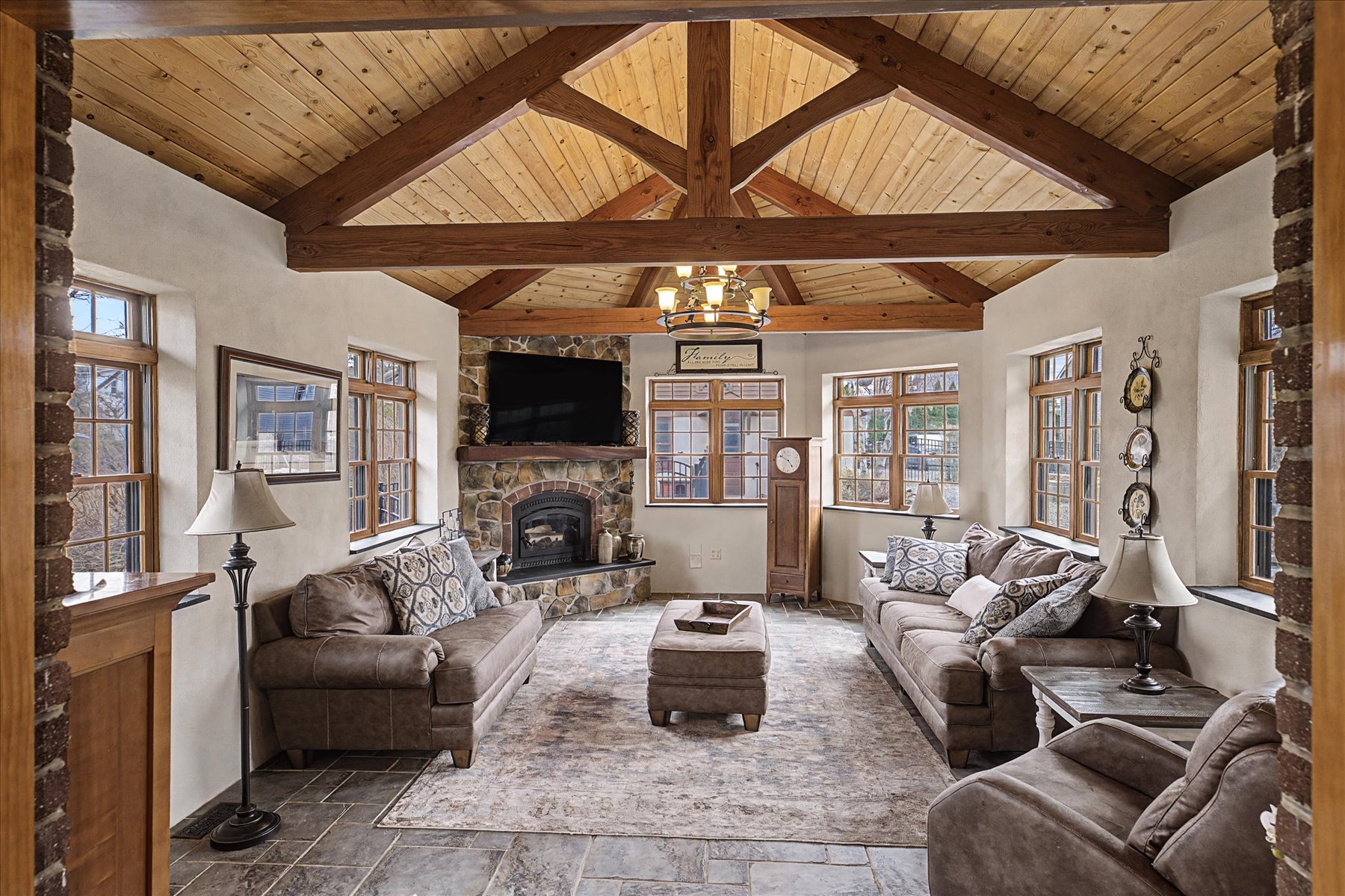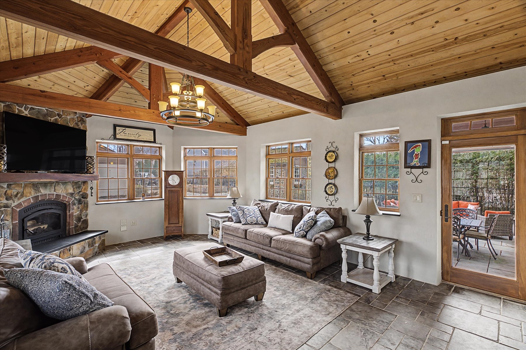 Distinctive Tudor-style home on Aurora Street offering architectural character, quality construction, and extensive improvements over time. Originally built in 1959 and completely rebuilt in 2010 with additional kitchen and landscaping updates completed in 2020 and 2023, the home blends classic design with modern systems and thoughtful updates .Inside, the dramatic great room features vaulted wood ceilings with exposed beams and a stone fireplace, creating a striking focal point for everyday living and entertaining. Hardwood flooring runs throughout much of the home, and the flexible layout includes first-floor bedrooms and full bath for added versatility. Comfort is enhanced by radiant hydronic floor heating and multi-zone central air conditioning, while a concrete tile roof installed in 2010 adds durability and long-term value. Outdoor spaces include a private courtyard setting with mature trees and a charming garden shed, ideal for relaxing or entertaining. A rear alley provides access to a detached garage and private parking area with a gated entry designed to accommodate vehicle access. Located in Phillipsburg near the Delaware River and just minutes from downtown Easton, Lafayette College, restaurants, shops, and major commuter routes including Routes 22 and 78.