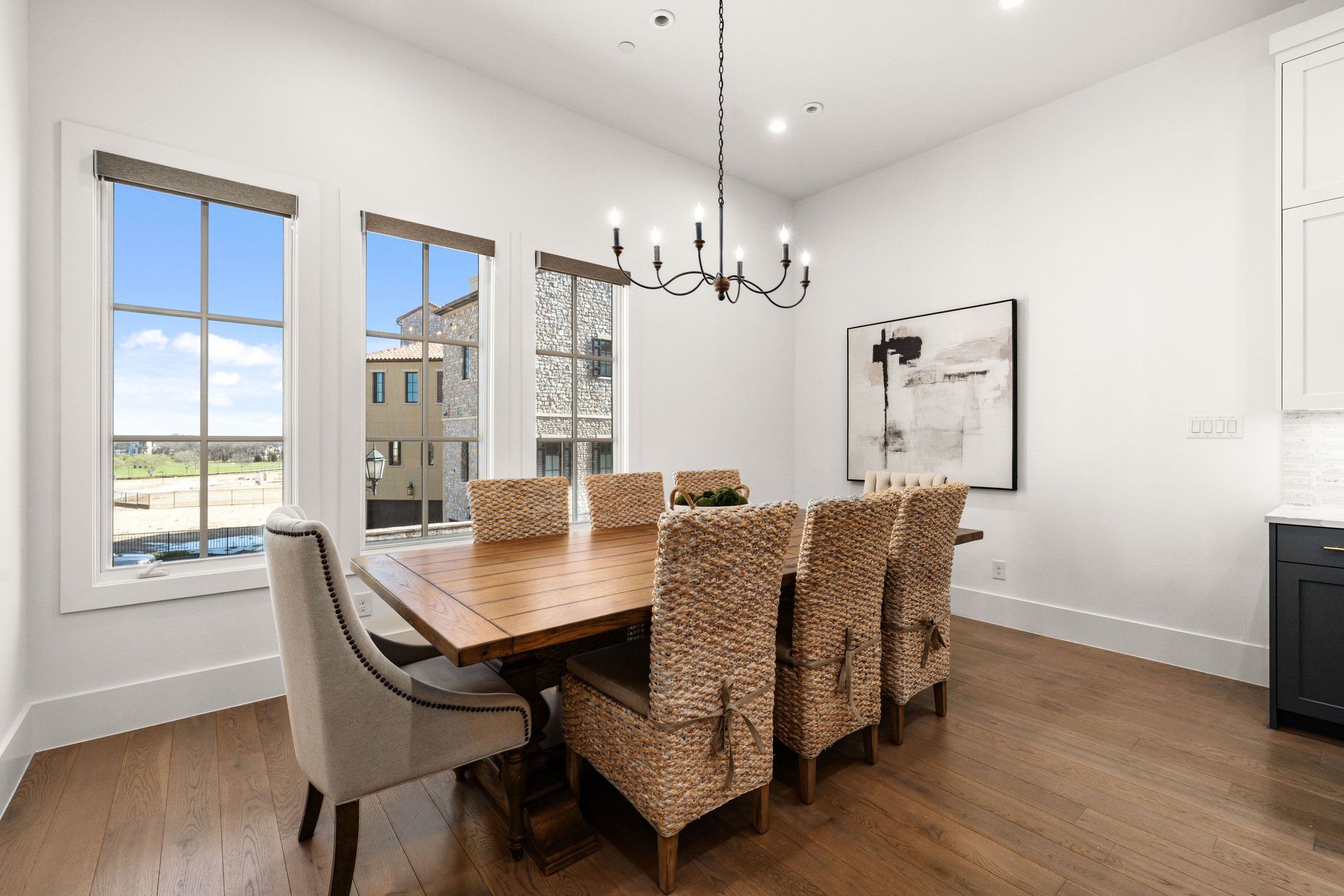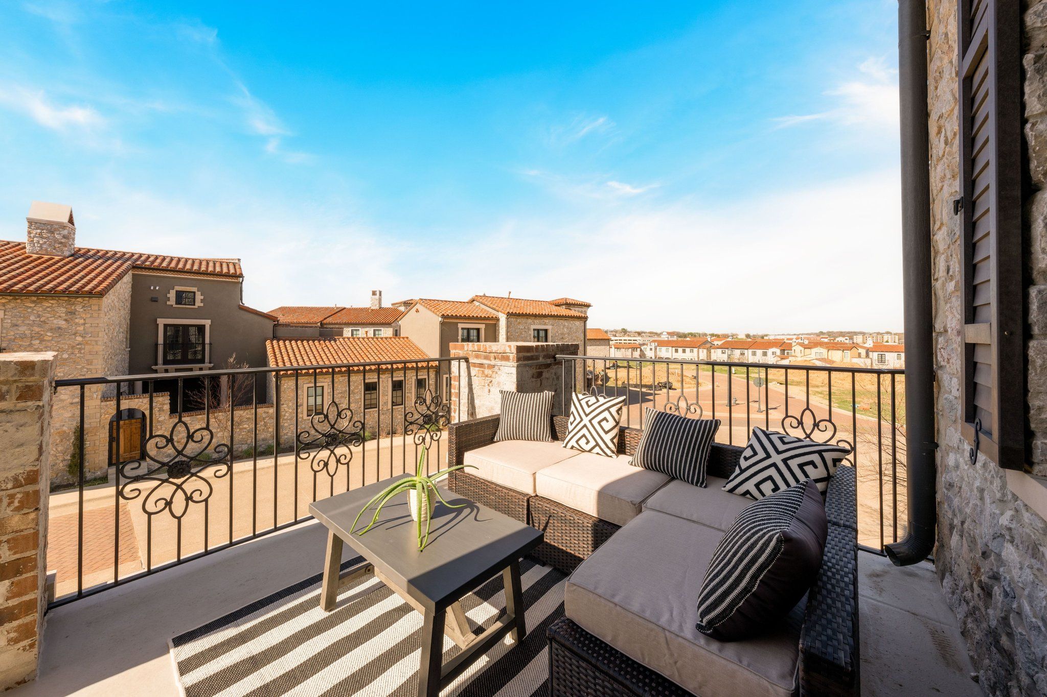 Welcome to 67 Cortes, a beautifully maintained Mediterranean Villa-style townhome in the heart of Westlake! Inspired by the charm of a European village, this elegant residence offers refined architecture, warm textures, and sophisticated living spaces designed for a luxury lock-and-leave lifestyle. This spacious corner residence, featuring a private elevator, comes move-in ready with a perfect blend of comfort, style, and convenience. Step through a quaint covered porch entry to find a ground-level bedroom, hardwood floors, and a bright, open-concept living area with large windows and high ceilings that flood the space with natural light. The modern kitchen is equipped with stainless steel Wolf and Sub-Zero appliances, a prep area, ample cabinetry, and a breakfast bar—ideal for both everyday living and entertaining guests. Upstairs, the generous primary suite boasts a walk-in closet and a spa-like ensuite bathroom with an enclosed tub and shower relaxation zone. Additional bedrooms provide ample space for family, guests, or a home office. Enjoy the convenience of an in-unit laundry and attached garage parking. Roam free on four outdoor patios, each offering expansive views—perfect for relaxing, dining, or entertaining. On the ground level, a romantic courtyard awaits with a welcoming firepit surrounded by elegant stone walls and direct access to an impressive grill tower—one of many unique characteristics. This covered area features a dedicated BBQ grill under a covered patio, allowing you to savor the views while you cook and entertain year-round. On the fourth floor, discover a versatile flex room with a full bath that opens onto an oversized rooftop patio boasting near panoramic views of Westlake Entrada. Located in a desirable Westlake community zoned for Southlake Carroll or Westlake Academy, you’ll also enjoy access to walking trails, top-rated schools, shopping, dining, and easy freeway access for commuting. Don’t miss your opportunity to make this one-of-a-kind townhome your next home!
