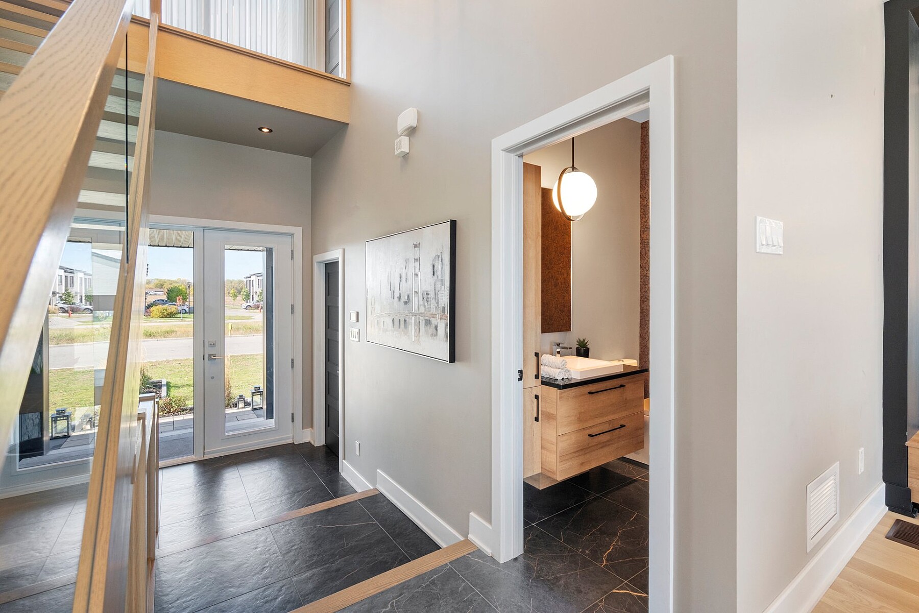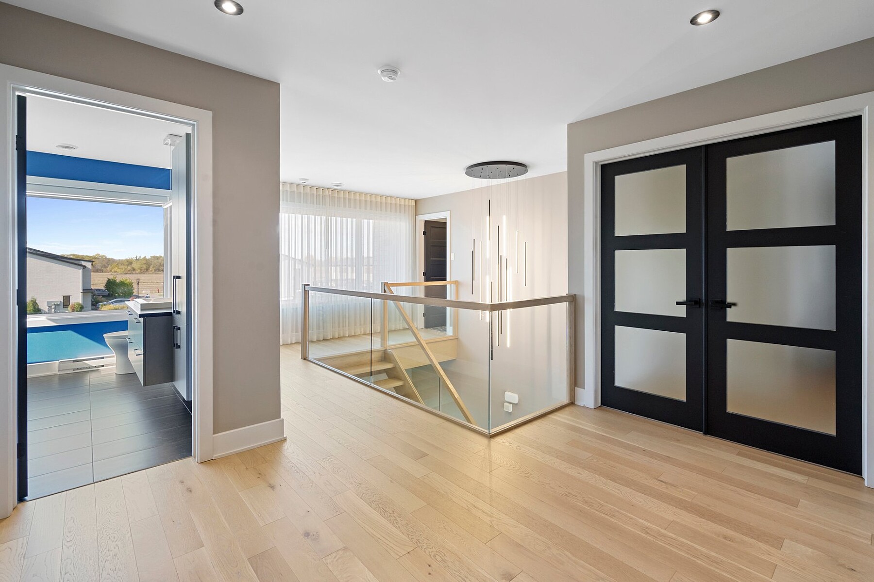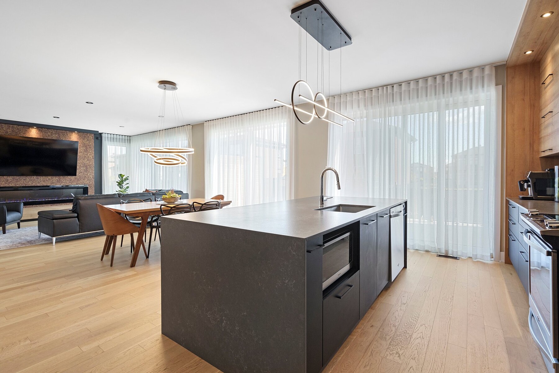 Located in a sought-after area of Saint-Eustache, this elegant Newtown-style home blends design, comfort, and brightness. Featuring three spacious bedrooms, two full bathrooms, an open-concept living area, and an independent laundry room. The fully finished basement offers a 3½ intergenerational suite with private entrance. Private backyard with heated saltwater pool, double garage with EV outlet, and central heat pump. Near the future REM, hospital, schools, and services. A modern home combining prestige, tranquility, and an exceptional quality of life.