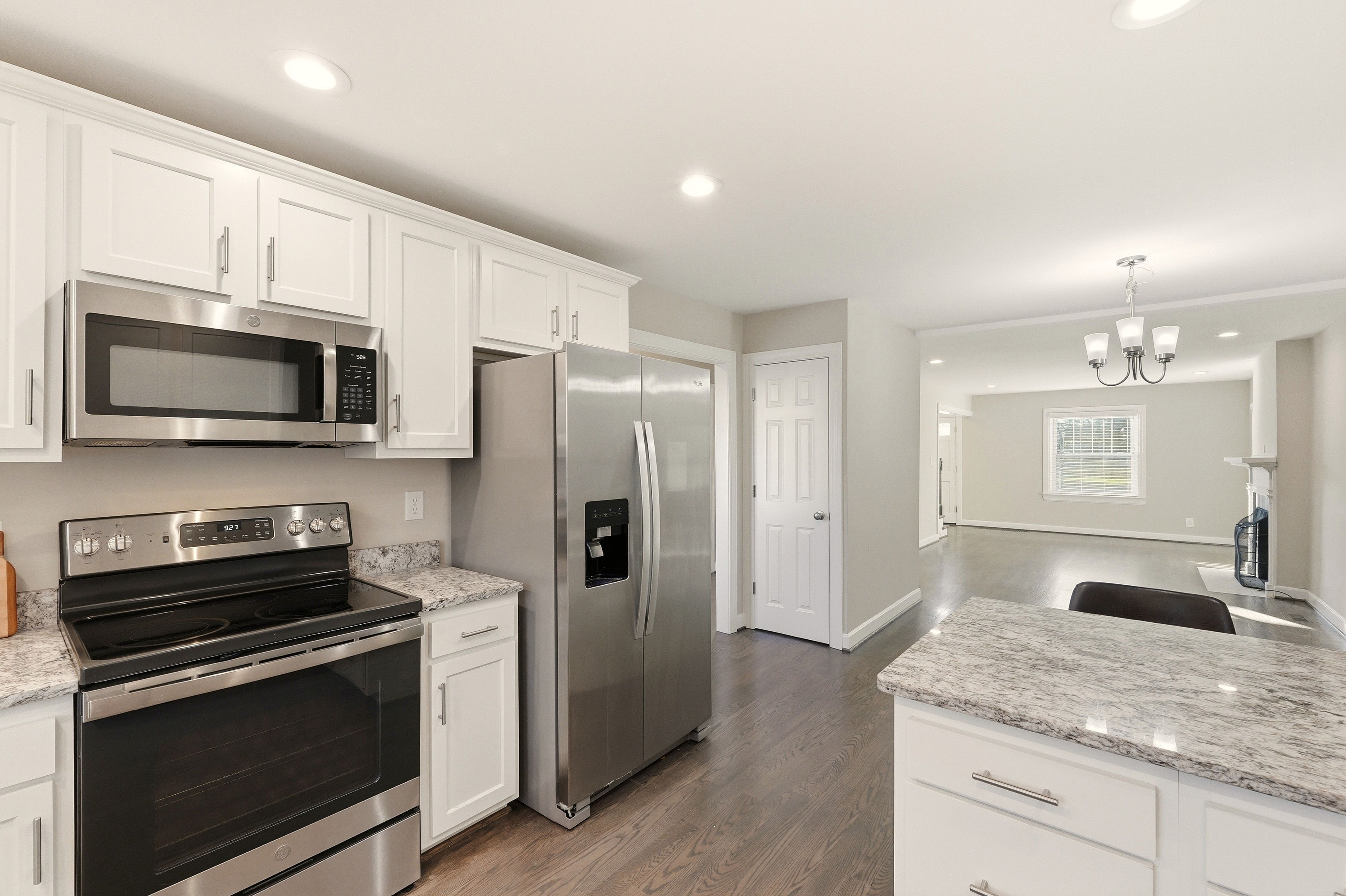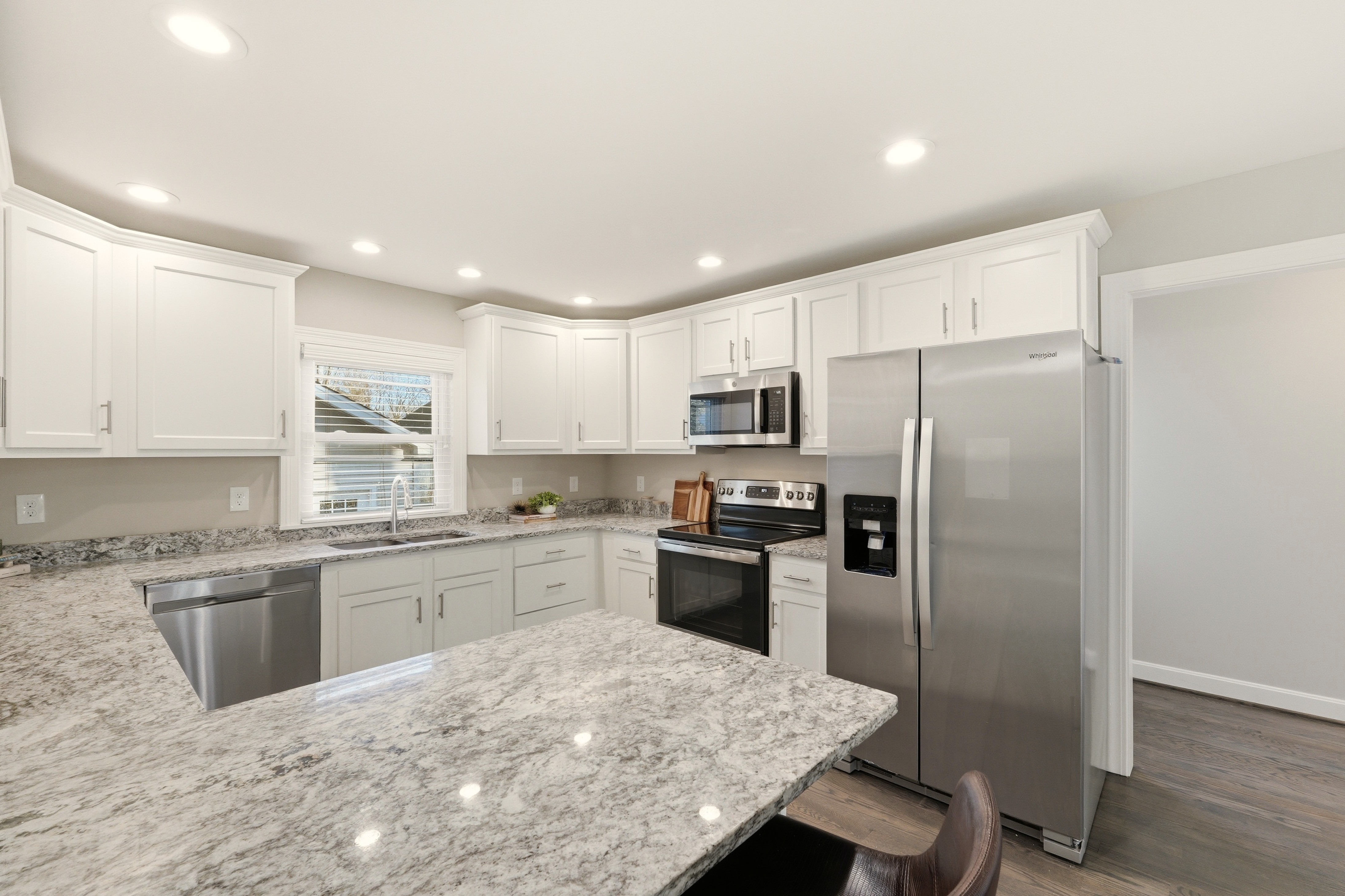 Welcome to this beautifully updated Lyndon residence offering three bedrooms and two-and-a-half bathrooms, thoughtfully designed for both comfortable daily living and effortless entertaining. Hardwood flooring, an open-concept layout, and a generously sized backyard create an inviting and highly functional setting. The kitchen features essential appliances, ample cabinetry, bar seating, and flows seamlessly into an eat-in breakfast area and generous living room, creating a well-connected main living space. Located on the main level, the highly sought-after primary suite offers a private retreat with a spa-inspired bath featuring a dual-sink vanity, oversized shower, and walk-in closet. First-floor laundry and a conveniently located half bath add everyday convenience. Upstairs, you will find two well-proportioned bedrooms and a centrally located full bath. A versatile bonus space within the upper-level living area offers flexibility for a potential fourth bedroom (with the addition of doors), a loft-style living area, or a secondary family room. The bonus space also includes a kitchenette, making it well suited for guests, extended living, or multi-purpose use. The unfinished basement provides excellent storage and future expansion opportunities. Outdoor amenities include a back deck, a recently added detached two-car garage, an expansive concrete driveway, and an exceptionally deep lot with a large backyard—perfect for entertaining, recreation, or gardening. Ideally located near the heart of Lyndon, the home offers quick access to I-264 and I-64 and is just minutes from the shopping, dining, and everyday conveniences along Shelbyville Road, including Oxmoor Center and St. Matthews.