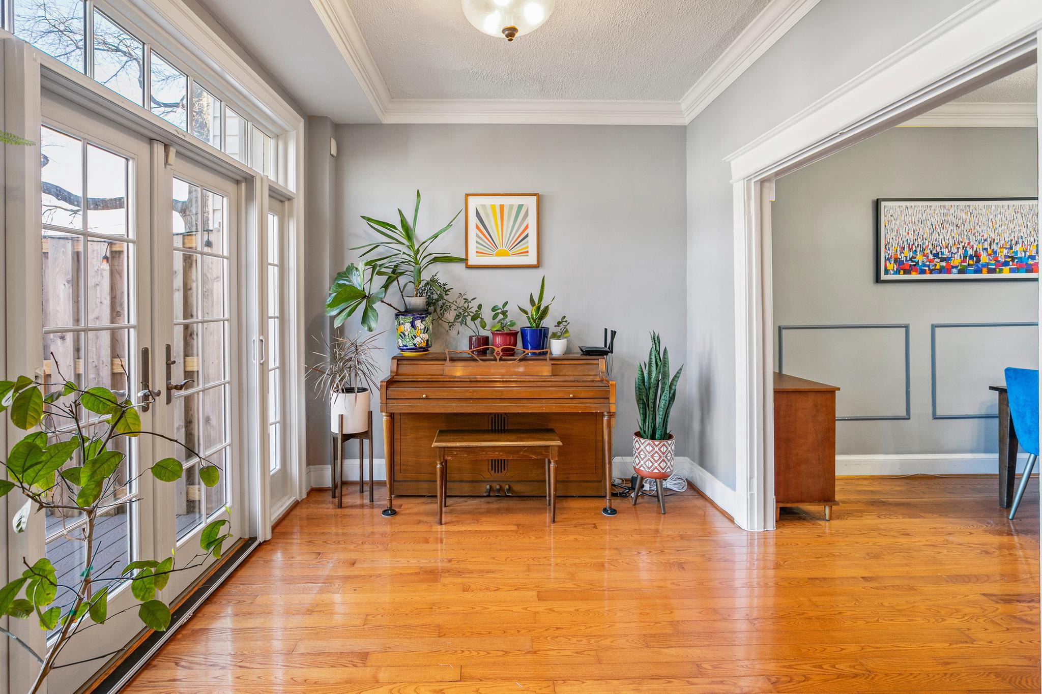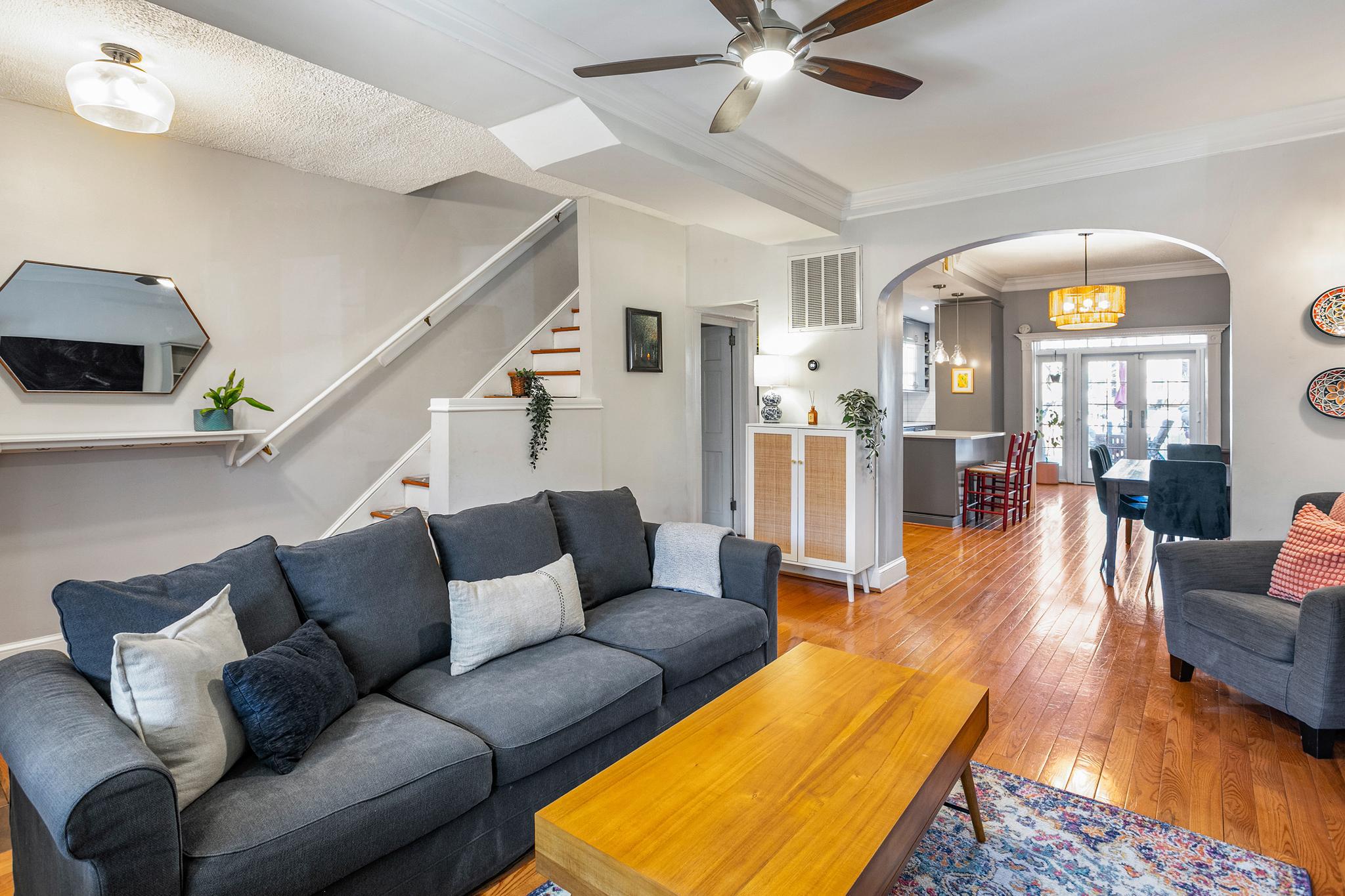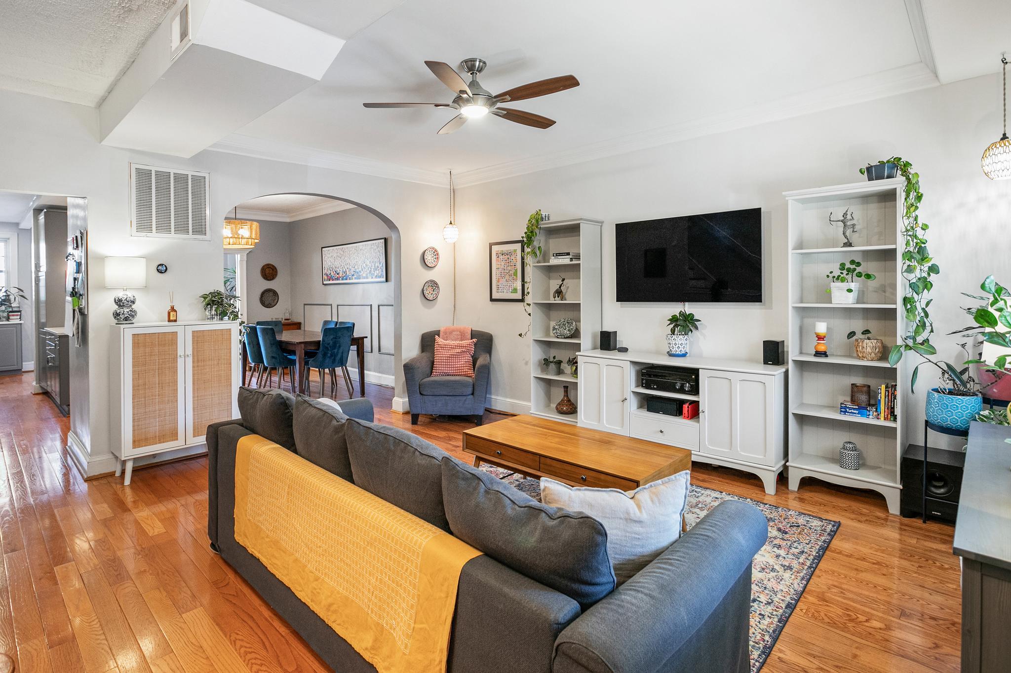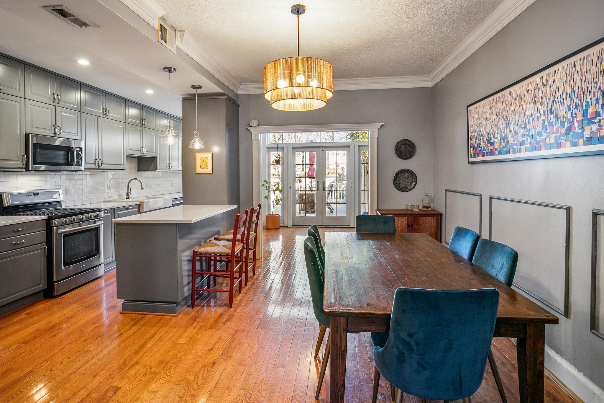 Welcome to 427 Ingraham Street, NW in the heart of Petworth, on a charming tree-lined street. This sunny and spacious home offers comfortable living and updates throughout. The main level features wood flooring, a generous living room, and a gourmet kitchen with quartz countertops, a farm sink, stainless steel appliances, ample cabinetry, and island seating. This beautiful home includes lovely original details, with modern finishes throughout.Just off the kitchen, a bright sunroom opens through French doors to a well maintained Trex deck overlooking a flat green backyard, and a convenient private parking pad with an electric garage door. Upstairs, you’ll find three sizable bedrooms filled with natural light and two beautifully renovated full bathrooms.The lower level expands the living space with a recreation room and a new secondary kitchenette featuring granite countertops, a full-size stainless steel refrigerator, a sink, and storage cabinets. This level also includes a large office or den with a closet, a full bathroom, and a walk-in storage room with laundry and utilities. Notable upgrades include a rebuilt deck, new HVAC system, fresh exterior paint, new basement flooring and paint, improved drainage by the basement and back door, a regraded and sodded backyard, a landscaped front yard, a replaced porch roof, and silver roof sealant. This move-in-ready home features solar panels as well. Conveniently located a few blocks to Le Coop coffee shop and everything Petworth has to offer!