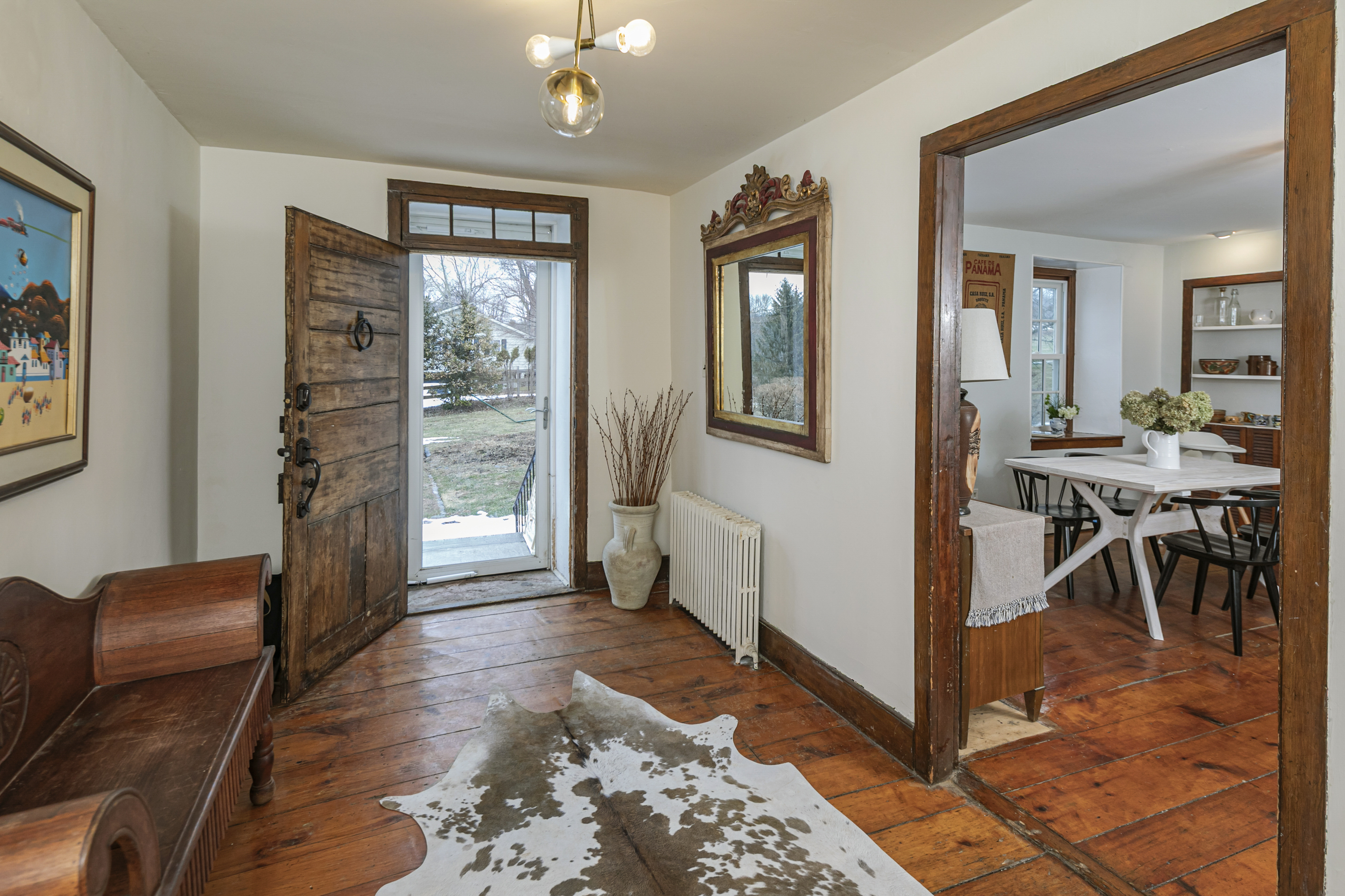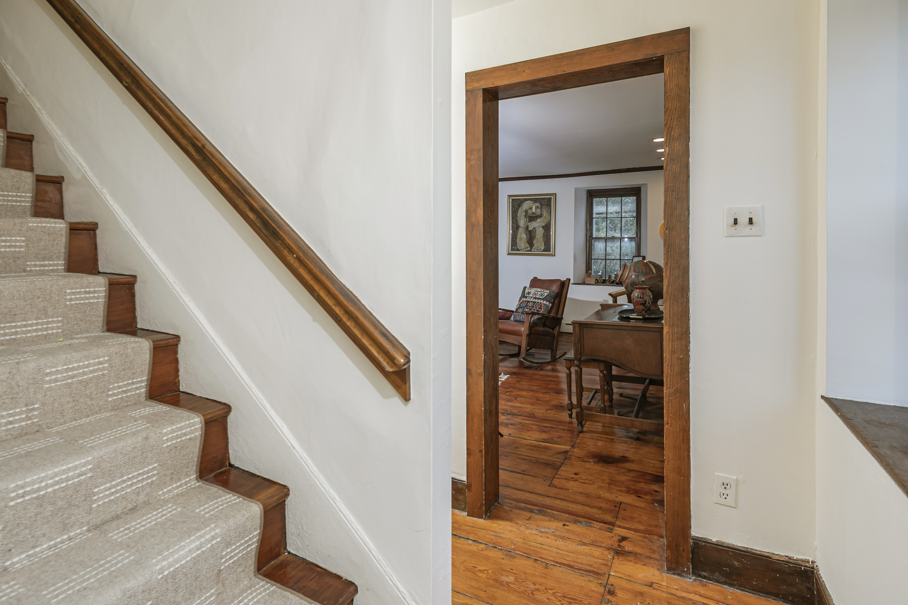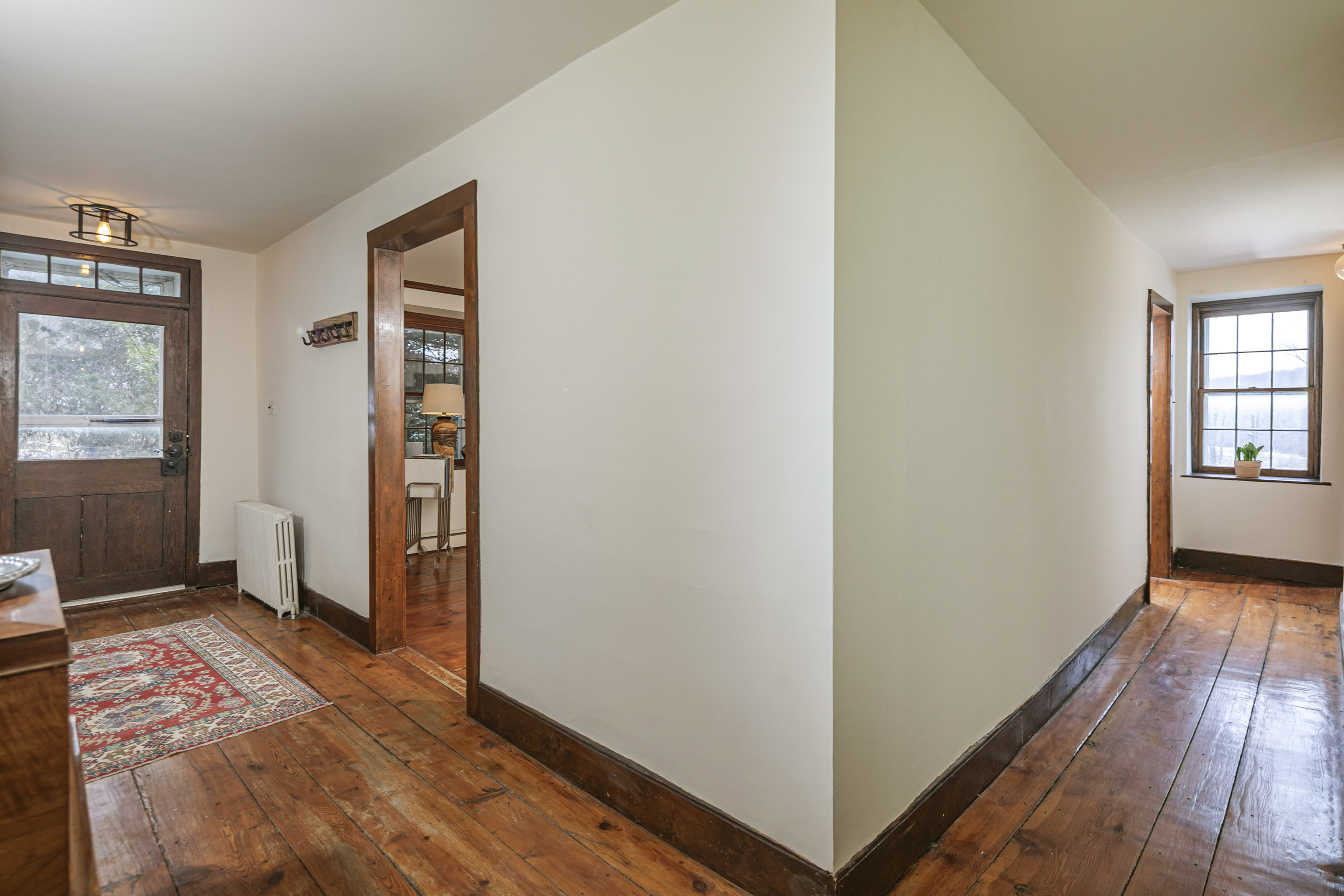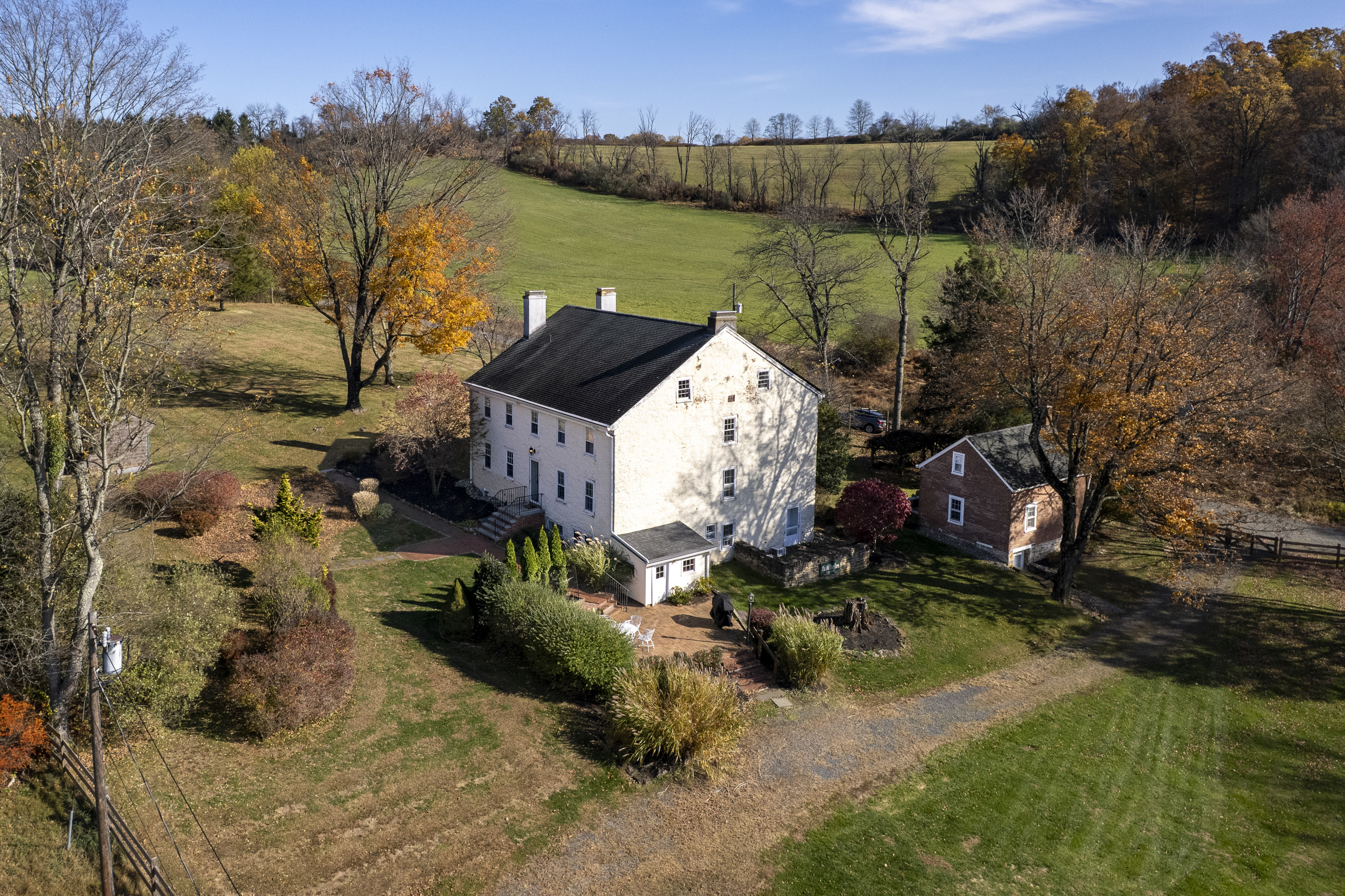 Driving along a winding country road in Hopewell Township, where farms, fields, and woodlands shape the landscape, a gazebo and romantic pond glint through the trees before revealing this stately 1840s historic home with a charming guest cottage. Brick patios and walkways weave through the gardens, connecting the house and cottage in a series of inviting outdoor spaces. The scene is quintessential Hopewell Valley: historic, peaceful, and surrounded by bucolic countryside. Inside, the main house retains the craftsmanship and character of the 19th century. Random-width wood floors glow with age and patina, while generously proportioned rooms are detailed with original doors and hardware, and window sills nearly a foot deep. A wide foyer welcomes visitors from the front entrance. The kitchen sits opposite the dining room, creating a natural gathering hub. Down the hall, a study with built-in bookcases offers a quiet retreat, while the living room features its own built-in shelving. Two deep storage closets and a half bath sit conveniently near the kitchen. Upstairs, three bedrooms share a hall bath, while a fourth bedroom has its own private bath. Closets, both in the bedrooms and along the hallway, provide storage uncommon in homes of this vintage. A walk-up attic offers additional potential, and the walk-out basement houses a laundry room, a gym, and a half bath. The guest cottage adds flexibility to the property. With its own kitchen, fireplace (as-is), and bath, it makes an ideal space for long-term visitors or even a creative studio. This offering carries a remarkable piece of local history. In the 19th century, it served as the Pennington area’s poor farm, part of a municipal system that provided housing and work for residents who had fallen on hard times. Established in 1843, it operated for more than a century, reflecting an early form of community social support long before modern public assistance programs. Today, the property’s peaceful setting tells an entirely different story. Located in the highly regarded Hopewell Valley School District and roughly midway between New York City and Philadelphia, it offers easy access to vibrant dining, shopping, culture, and mass transit. With its layered history, classic architecture, and idyllic surroundings, this home stands as both a reminder of Hopewell’s past and a serene country retreat for modern life!THIS HOME HAS SOLAR PANELS ON THE ROOF, OWNED BY THE SELLER.