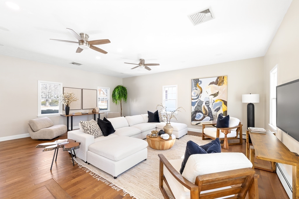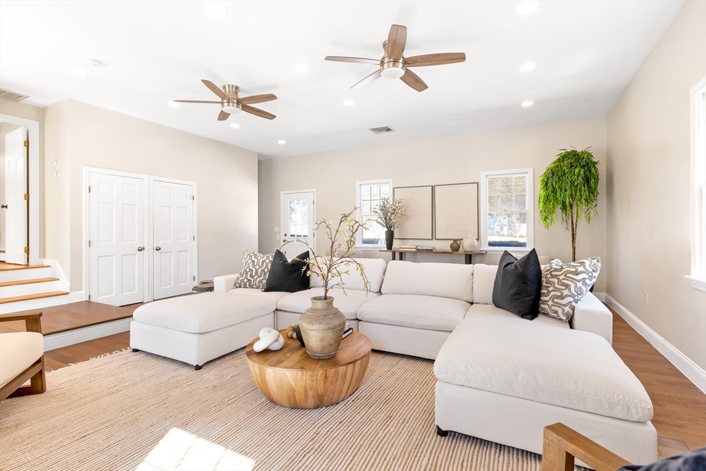 This fabulous turnkey 4-bedroom Colonial in the convenient Cochituate neighborhood of Wayland will check every box on your list! With a great flowing floor plan on the first level, you will find a generous kitchen, formal dining room, living room, office, powder room and laundry room. Also on this level but with its own separate entrances is a gigantic family room space with high ceilings, perfect for gatherings or just relaxing at home. Upstairs you will find a full primary ensuite, plus three additional bedrooms and another full bathroom. The finished lower level offers space for an office/studio, another bonus recreation/exercise room, plus plenty of unfinished storage space. The exterior of the home boasts a deck off the back, parking for at least six cards, and great open flat yard space w/storage shed. Endless recreational opportunities are nearby with Lake Cochituate and the town beach. Great commuter location plus top-rated school system makes this a home not to be missed!