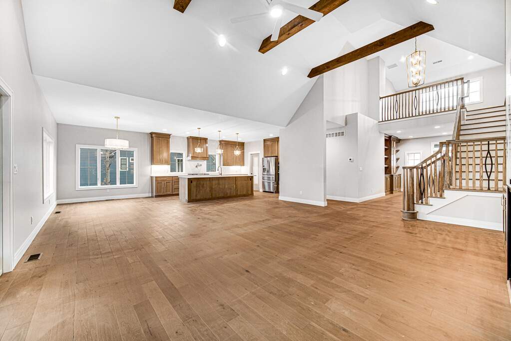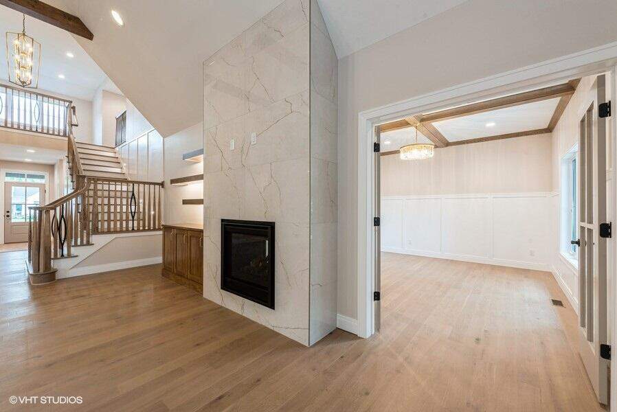 Builder offering interest rate buy down with acceptable offer. Welcome to The Woods of Sagamore! This newly built home offers five bedrooms, four and a half bathrooms, and a thoughtfully planned layout ideal for everyday living and entertaining. The main level features French oak floors and an open great room with a two-way fireplace shared with the adjoining den. Large sliding glass doors lead to a covered porch--also with a gas fireplace and Sunspace screened vinyl windows--creating an easy indoor-outdoor flow for relaxing or hosting guests. The kitchen combines style and functionality with extensive cabinetry, a prep kitchen, and a walk-in pantry with custom storage. It's designed to support everything from weeknight meals to larger gatherings. The main-level primary suite provides a quiet retreat with abundant natural light and a 9-foot ceiling. The primary bath features dual vanities, freestanding tub, and walk in shower. The large primary closet is complete with plenty of shelving and hanging space. Upstairs, you'll find three additional bedrooms, a bonus room, and two full bathrooms--offering flexible space for family, work, or guests. The finished basement adds even more versatility with a wet bar, large open recreational area, full bath, and bedroom. Outside, a hardscaped patio and fire pit offer a comfortable setting for enjoying the yard throughout the year. Quality finishes and thoughtful details can be found throughout, making this home both welcoming and easy to live in.