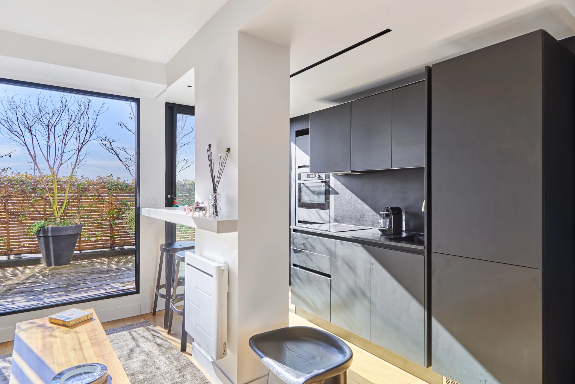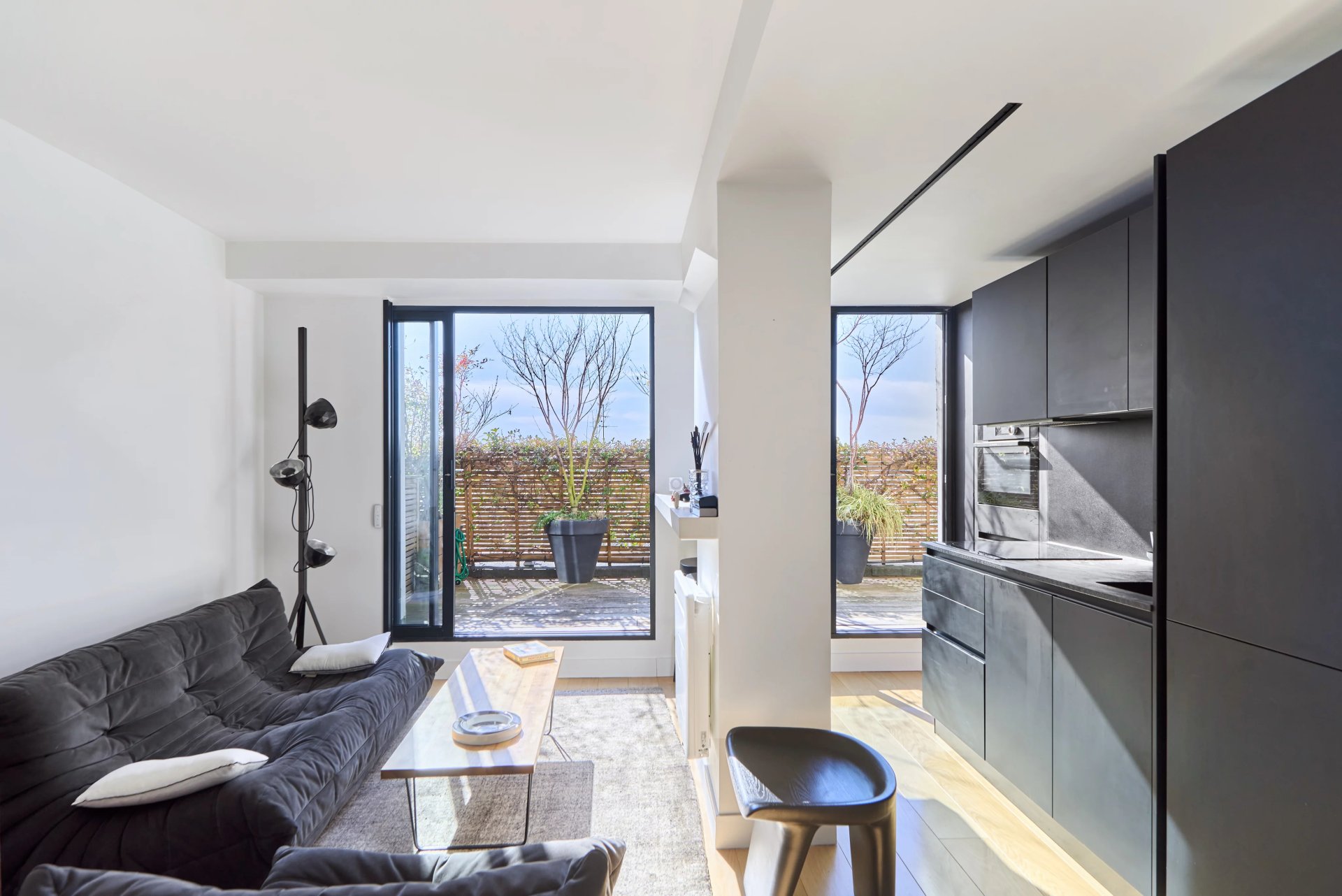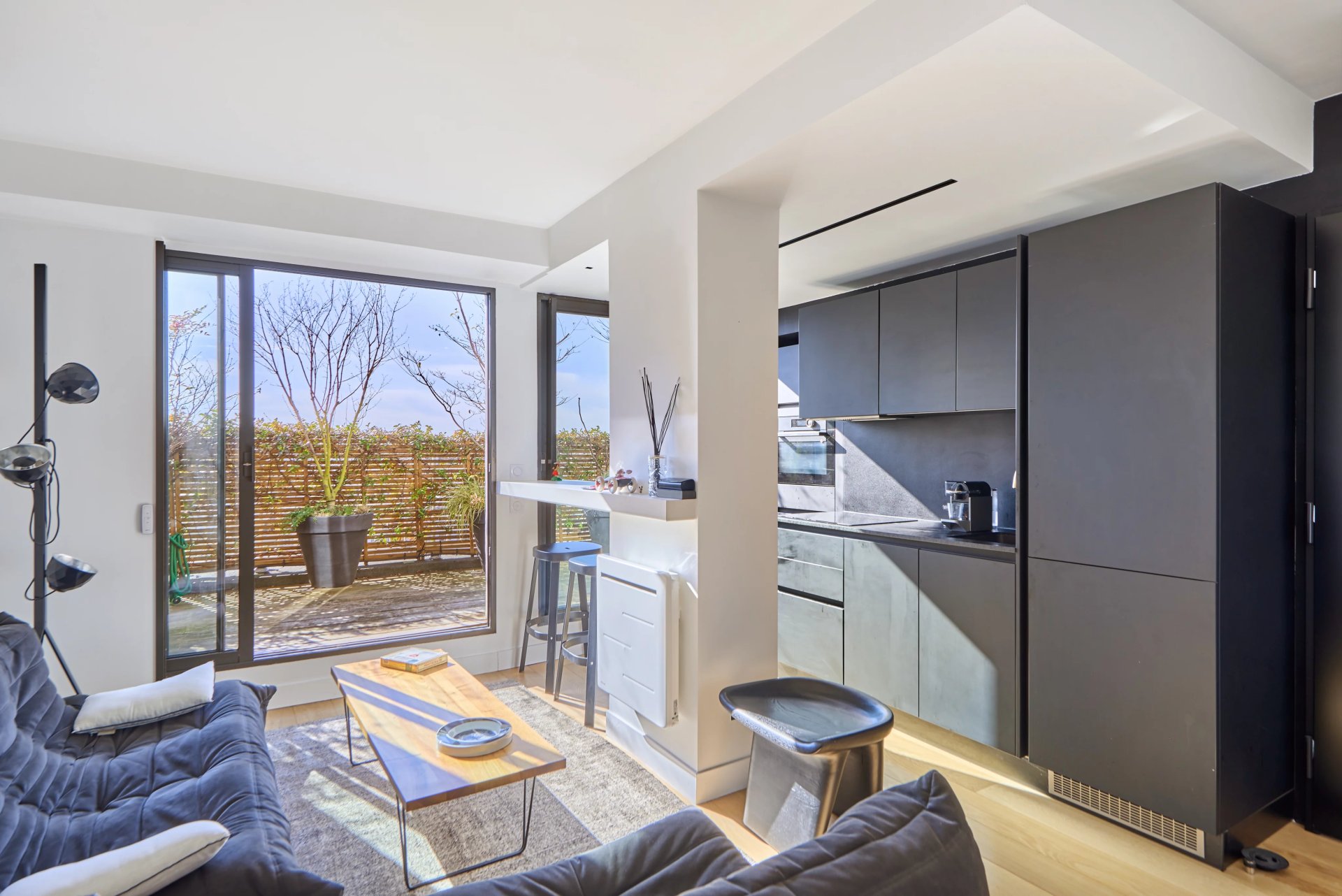 Offering 44.93 sqm of bright dual-aspect floor space and 39 sqm of living space as defined by the Carrez Law, it includes a bright living room opening onto a 20 sqm terrace, a bedroom, and a shower room with a wc.