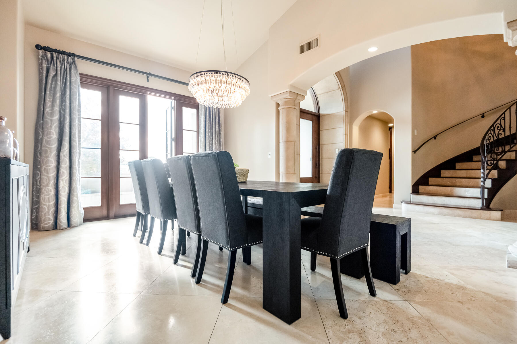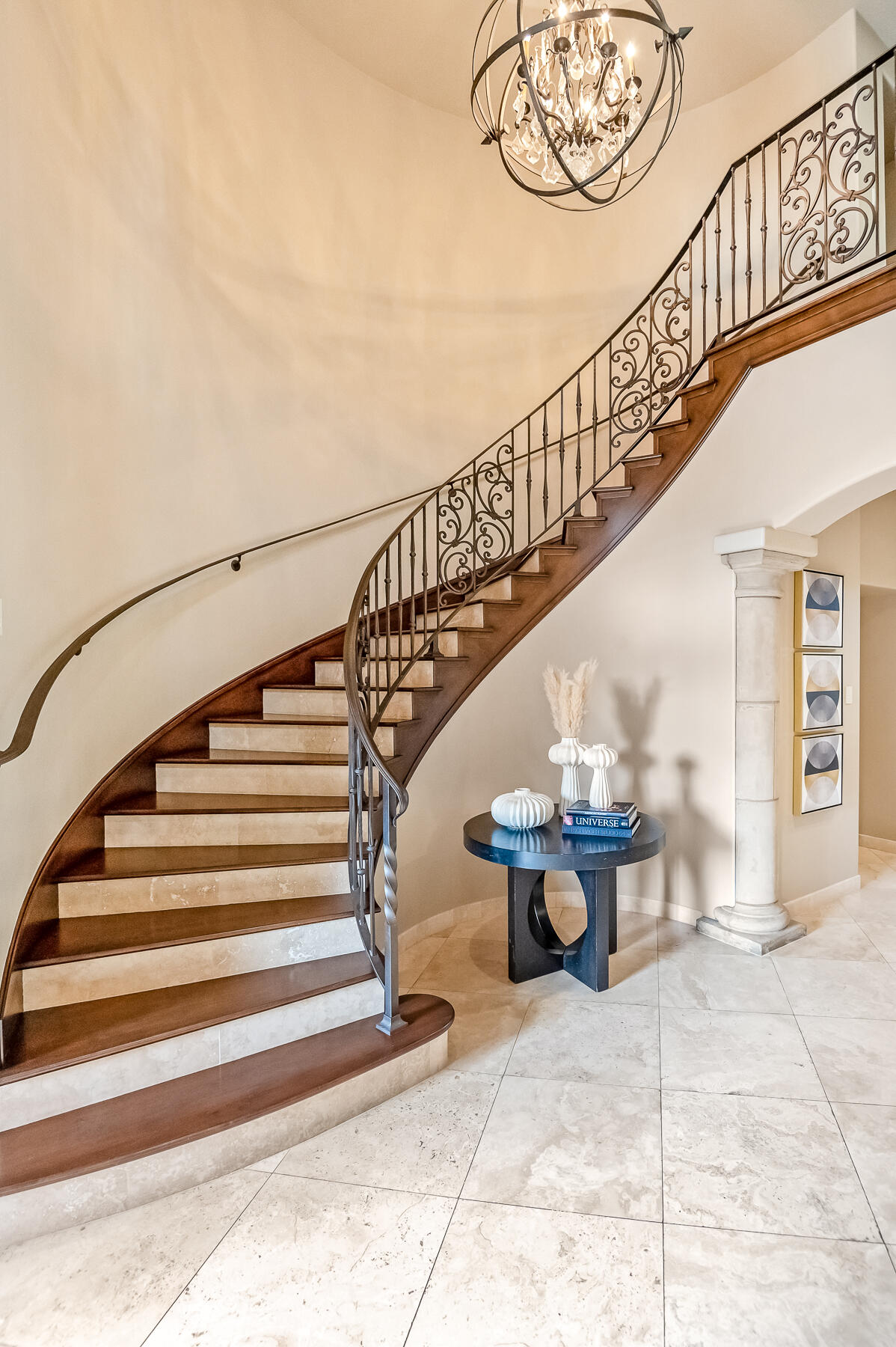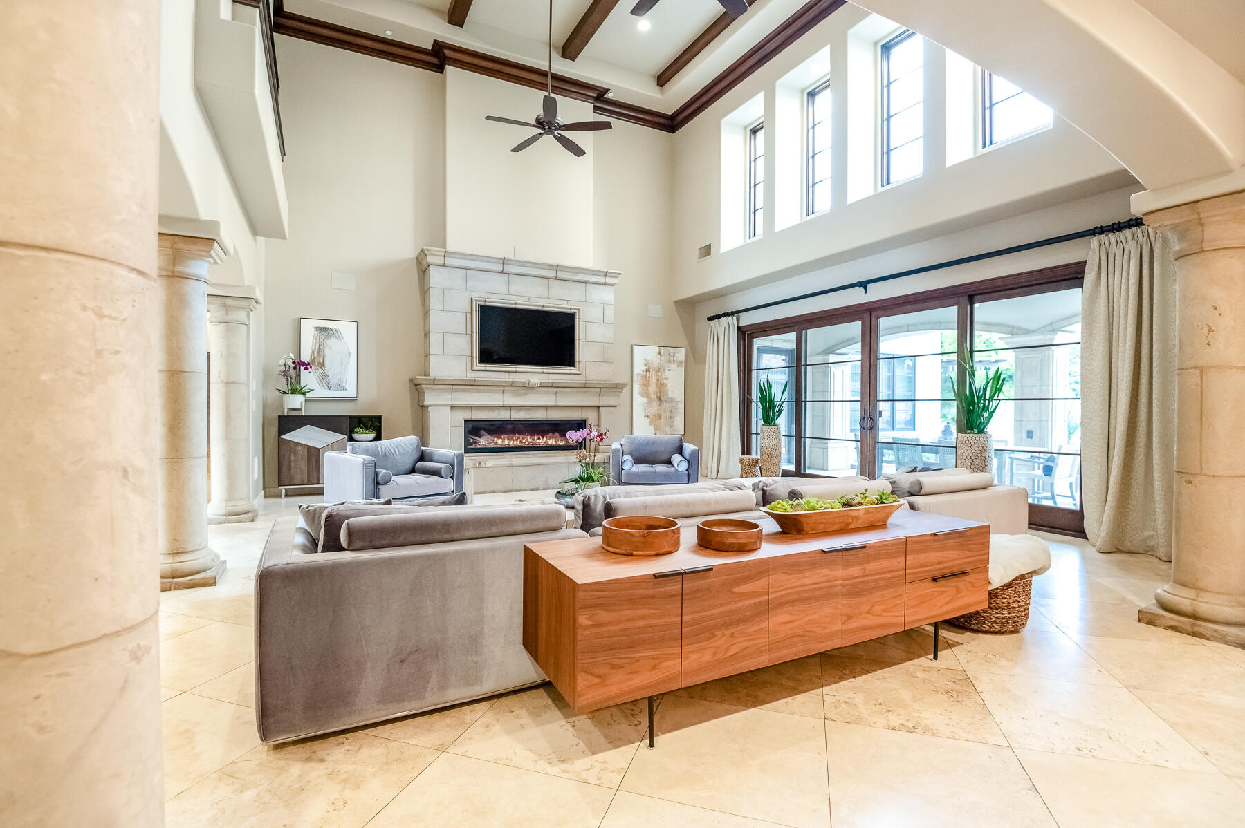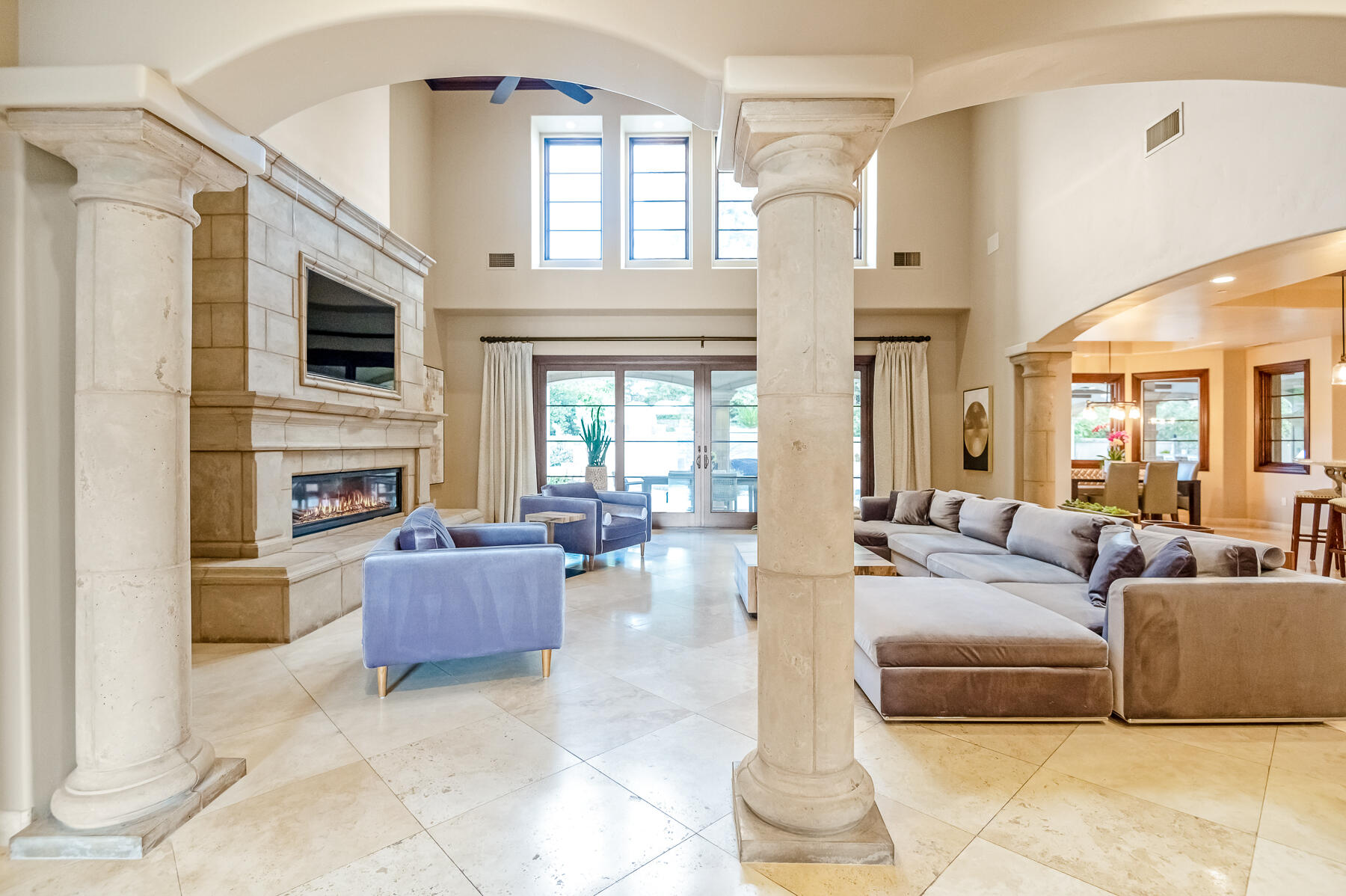 An Exquisite property in the Gated Community of Da Vinci @ Bella Sera provides amenities seldom seen. Enter through the Fabulous door past the Grand Staircase and Formal Dining room to the open Great Room. This stunning space offers soaring ceilings, fireplace and bar area as well as views to the expansive back yard Oasis. The Main floor offers two Ensuite bedrooms as well as the Owners' suite. This space boasts generous his and hers walk in closets and dressing areas with custom cabinetry. The Owner's bath is akin to one experienced at a luxury resort and there is a breakfast/coffee bar with beverage frig and sink. Also located on the Main floor you will find a large office with two desk areas for projects and studying and a laundry/project room with generous counter space and wrapping center. They say the heart of a home is the kitchen...This kitchen is a Chef's dream! An Amazing island and ample counter space are just a part of it. Please refer to the attached document for details on the commercial appliances and amenities. An In person view is warranted. There is a walk through pantry complete with Thermador Freezer and commercial ice maker and floor to ceiling storage space. With all that cooking you may find a home gym/work out space to your liking. This one offers rubberized floors and a large TV and is adjacent to a spa bathroom complete with steam shower with built in lounge. Access the 2nd level from one of the 3 staircases to enter an amazing space with gorgeous wood flooring currently furnished with Pool and Shuffleboard tables with 2 hidden TVs that drop down from the ceiling, an Executive office, Theatre Room and Media Room. Relax outside with a full outdoor kitchen, living room w/fireplace and TV. Heaters built in to the ceiling to make the most of the seasons as well as a beautiful pool, spa and firetable. The separate oversize garage can accommodate a batting cage or golf practice area as well! We look forward to seeing you...