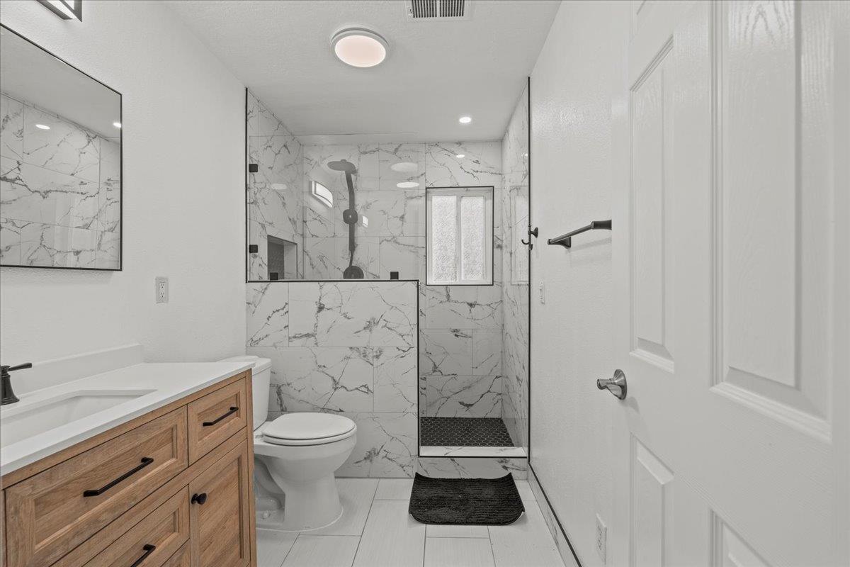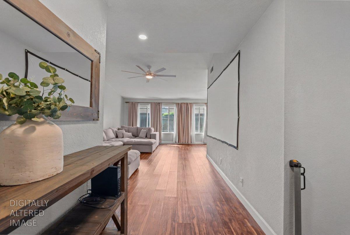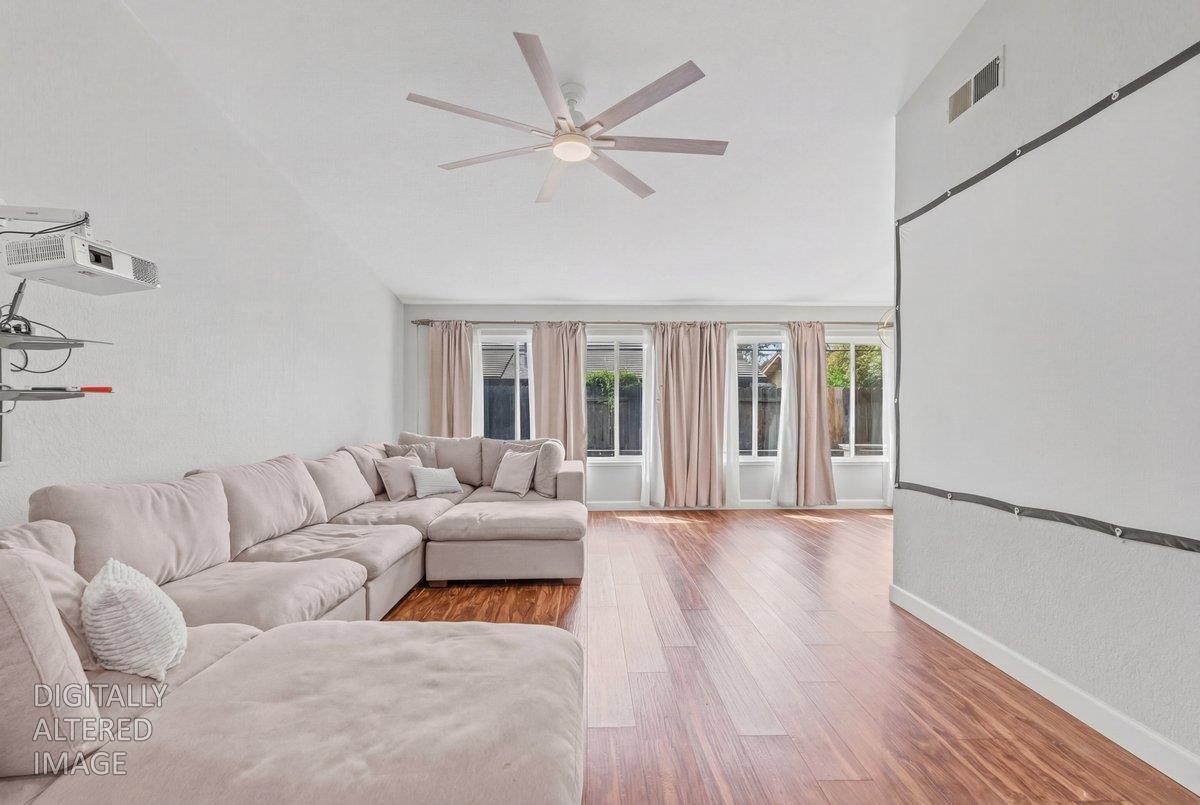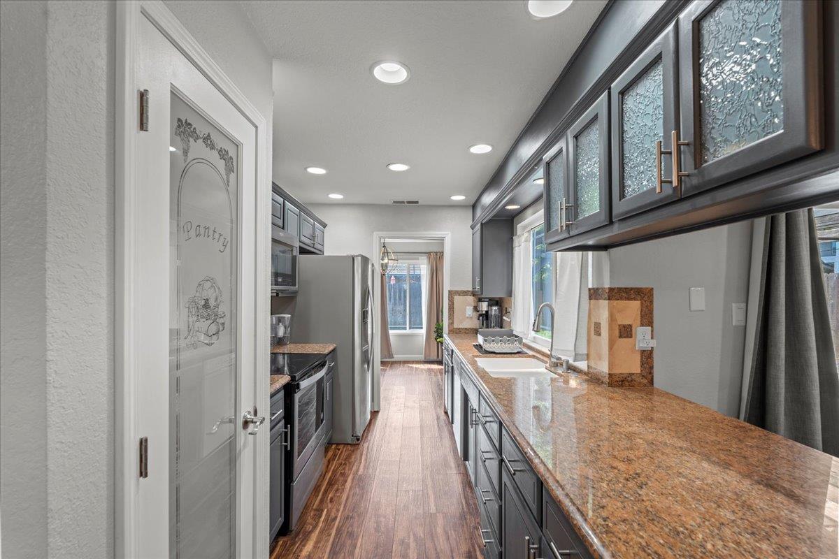 Welcome to a beautiful 3 bedroom, 2 bath home in the sought after Stonewood neighborhood. The inviting open floor plan features vaulted ceilings and large windows that fill the home with natural light. A charming barn door adds character between the kitchen and dining area. The kitchen offers stone countertops, plenty of cabinetry, a pantry, and a causal dining bar. The kitchen also opens up to an additional living space featuring a breakfast nook area, a stunning accent wall, fireplace, and skylight. The primary bedroom includes spacious dual closets and an updated bathroom with custom fixtures, creating your own private retreat. Additional highlights include newer flooring, a newer water heater, new dishwasher, dual-pane windows, and ceiling fans in each bedroom. Out back, enjoy the spacious yard perfect for relaxing or spending time with guests. Conveniently located in Lodi Unified School District, near shopping, dining, and parks.