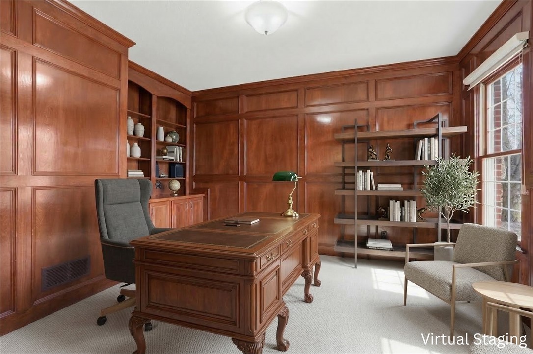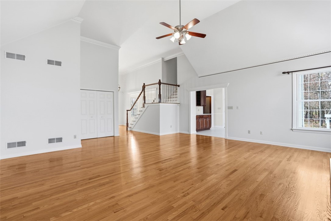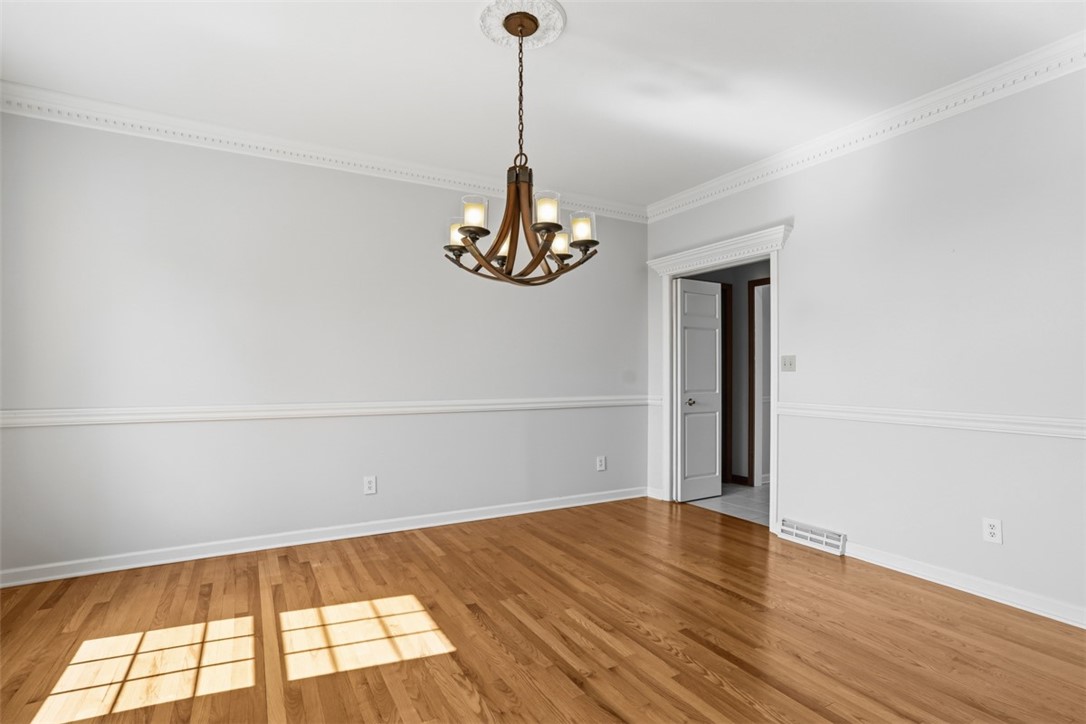 Located in the highly sought-after Oakview Estates, this beautifully maintained 4-bedroom, 3.5-bath home with a first-floor primary suite offers the space, features, and location you are searching for. Tucked at the end of a quiet cul-de-sac, the property provides both privacy and convenience. Step inside to an open-concept floor plan highlighted by hardwood flooring, abundant natural light, and elegant architectural details throughout. A private home office with French doors, custom built-ins, and decorative paneling creates the perfect work-from-home space. The formal dining room features elegant chair rail and dentil molding, ideal for entertaining and holiday gatherings. The spacious two-story family room with vaulted ceiling and fireplace serves as the heart of the home, seamlessly connecting to the eat-in kitchen. Designed for both function and style, the kitchen includes stainless steel appliances, tile backsplash, ample cabinetry, a coffee bar, two pantries, and access to the rear deck - perfect for outdoor dining or relaxing. The main-level primary suite is a standout feature, complete with a cathedral ceiling, two walk-in closets, and a spacious en-suite bath. Upstairs you'll find three generously sized bedrooms and a full bath, providing comfortable space for family or guests. The finished walkout lower level adds incredible flexibility with a kitchenette, full bathroom, and additional living/entertainment space - ideal for guests, a game room, or potential in-law suite. Additional recent updates include a new roof, new fenced yard, and a newly replaced and expanded driveway. With its first-floor living option, finished walkout basement, modern updates, and prime Cranberry location, this home offers a rare opportunity in one of the area's most desirable neighborhoods.