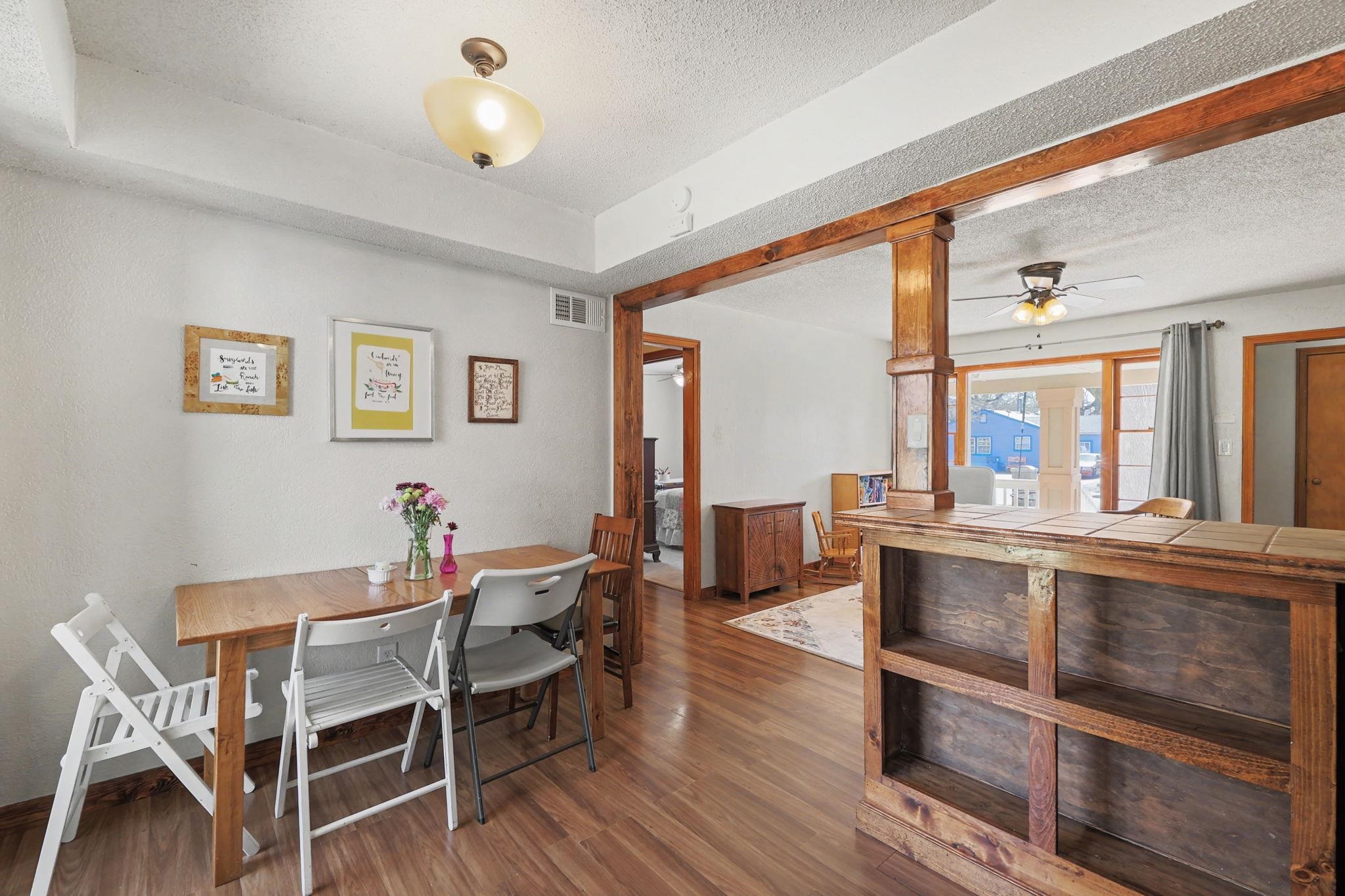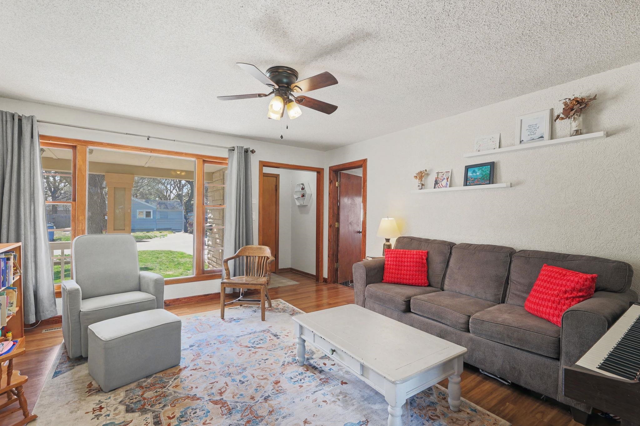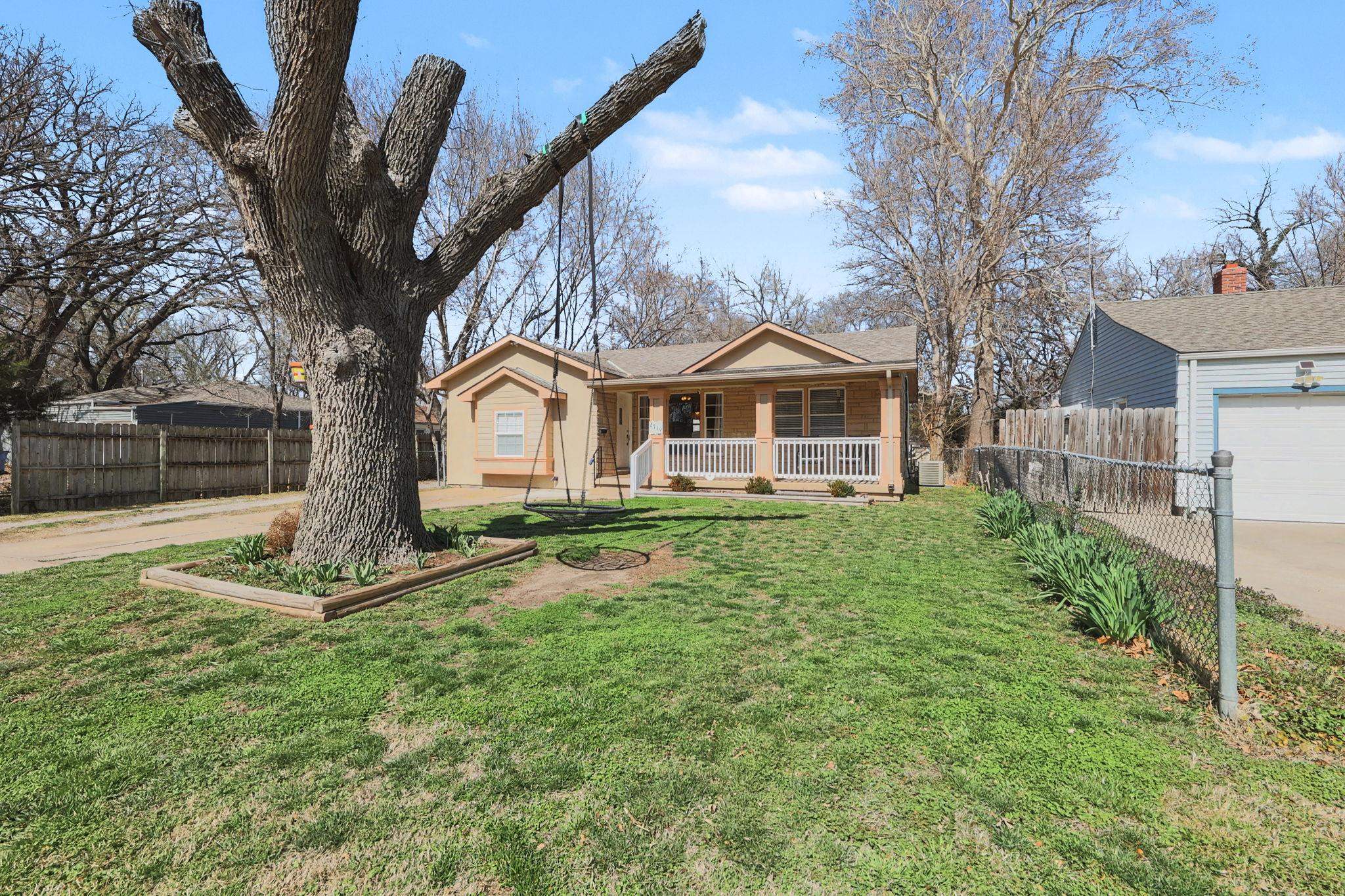Check out the photos and virtual tour of this super attractive, 3 bedroom, 1 bath Ranch that's so convenient to the interstate for quick travel to all areas of Wichita, Boeing and McConnell! Great curb appeal with updated exterior front elevation with the best covered front porch for your rocking chairs! Inside you'll love the nice sized living and dining area with laminate flooring. This home steps down from the living room to a large master bedroom with huge walk-in closet. There are two additional bedrooms and full bath on the other side of the home for a nice split-bedroom layout. Super cute kitchen with pantry and serving bar between dining and living room. There is access to the fully fenced backyard from the dining area. Step out to a small deck overlooking the tree-lined backyard that your pets and family will enjoy! Storage is no problem with a large shed in the backyard as well. Plenty of driveway for extra parking of vehicles or your RV. This is a super cute, well maintained home at a great price in today's market! Schedule your private showing soon before it's SOLD!