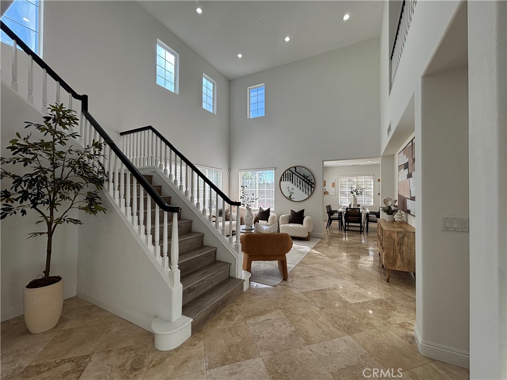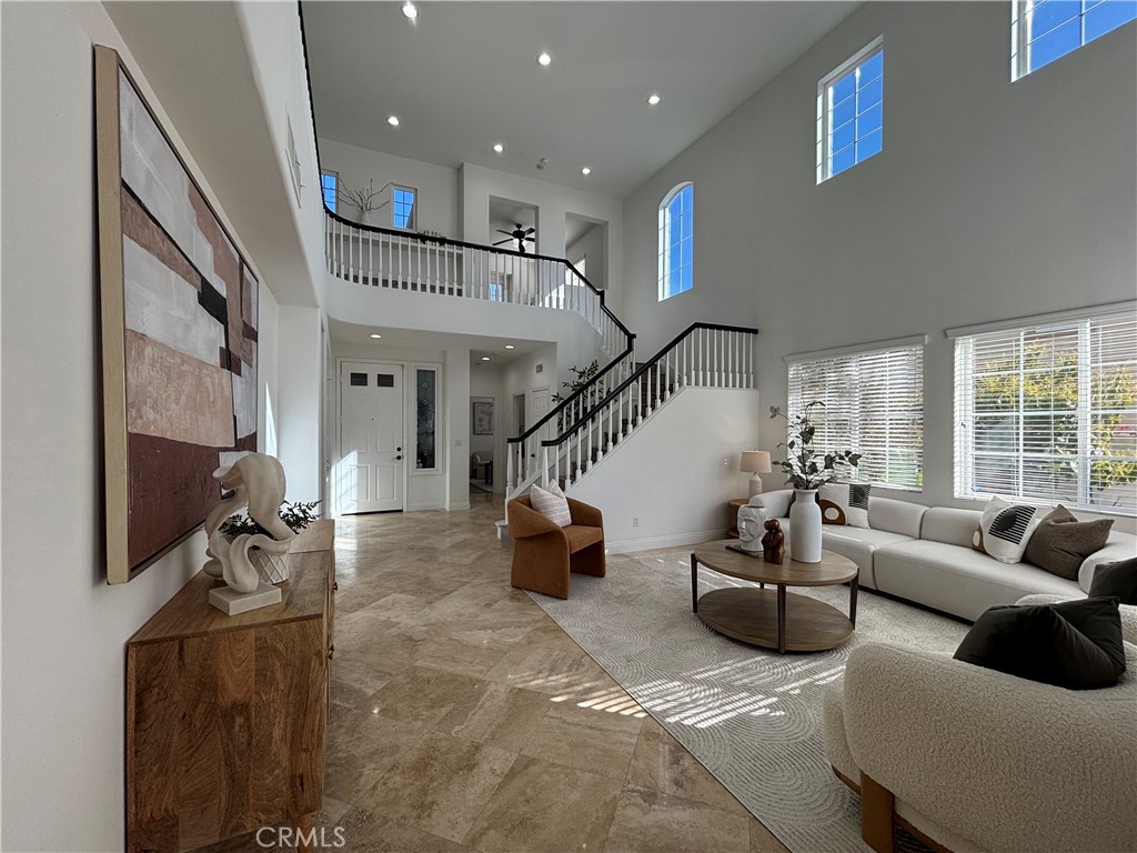 Mother-In-Law or Guest Quarters make this exquisite Talega property unique. The desirable, Miraleste Plan 3 has a tasteful interior, and features soaring ceilings with a dramatic staircase, an abundance of windows for natural light, formal living room, 4 spacious bedrooms plus loft, 3 1/2 bathrooms, new luxury vinyl flooring on stairs and bedrooms, and travertine flooring downstairs in this open floor plan. The Guest Wing is situated on the main level, complete with a bedroom, walk-in closet, 3/4 bathroom and sitting room. The bright white kitchen adjoins the family room with fireplace and dinette, including a large center island with breakfast bar, stainless appliances, double ovens and walk in pantry. The upper level has 3 additional bedrooms and a loft that can be used as a 5th bedroom, home office or den. The master suite enjoys peek ocean views and an ensuite bathroom with soaking tub, separate shower stall, dual vanities, and two walk-in closets. An inside laundry room is conveniently located on the main level with built-in sink and plenty of cabinets. The exterior is enhanced with a gated courtyard entry, an oversized wrap around backyard with covered patio, coastal breezes, built in BBQ, mature fruit trees and a huge 2nd floor covered balcony accessed by two of the secondary bedrooms. Did we mention Solar! The Solar is owned! Talega amenities include 3 recreational pools, a heated lap pool, many parks, hiking trails, Freddie Couples Golf course, sports fields, tennis courts, Talega events for all age groups including concerts in the park, award winning K-8 Vista Del Mar school and the Talega Village shopping center. Located not far from San Clemente's beaches with world class surf, charming downtown shops, restaurants and the Outlet Mall.