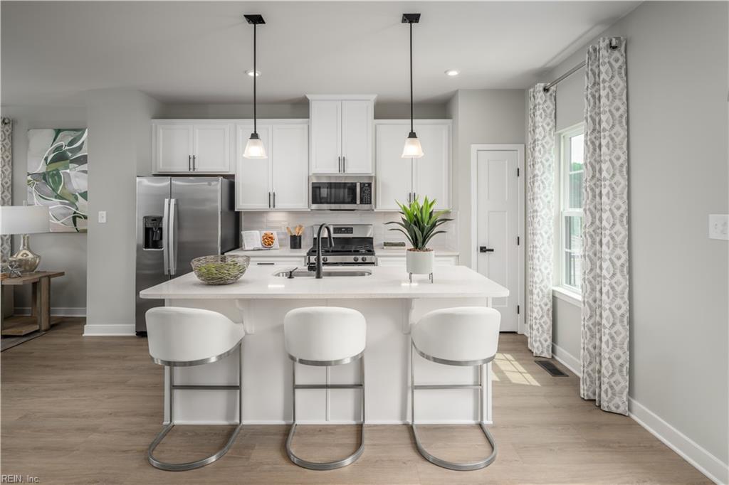 New Construction from the ground up! Modern Open Concept and an abundance of natural light make the Beethoven a townhome that feels like a single-family home. Entering in through the living room, flowing into the kitchen, with included 7ft island, provides plenty of room for cooking and entertaining plus optional powder room. Upstairs are two additional bedrooms, a hall bath with shower/tub combination, and a generous Owner's Bedroom that features a tray ceiling and a large closet. On ensuite Owner's Bathroom features a dual vanity and seated tile shower. This home checks all the boxes here at Reids Place! Create the space with personal touches like metal finishes, cabinet colors and counter top upgrades! Deliveries of July/Aug/September. 15 min to NCDOC, 22 Min to Norfolk Naval Shipyard, 35 mins to Little Creek, 20 mins to Portsmouth Naval Hospital