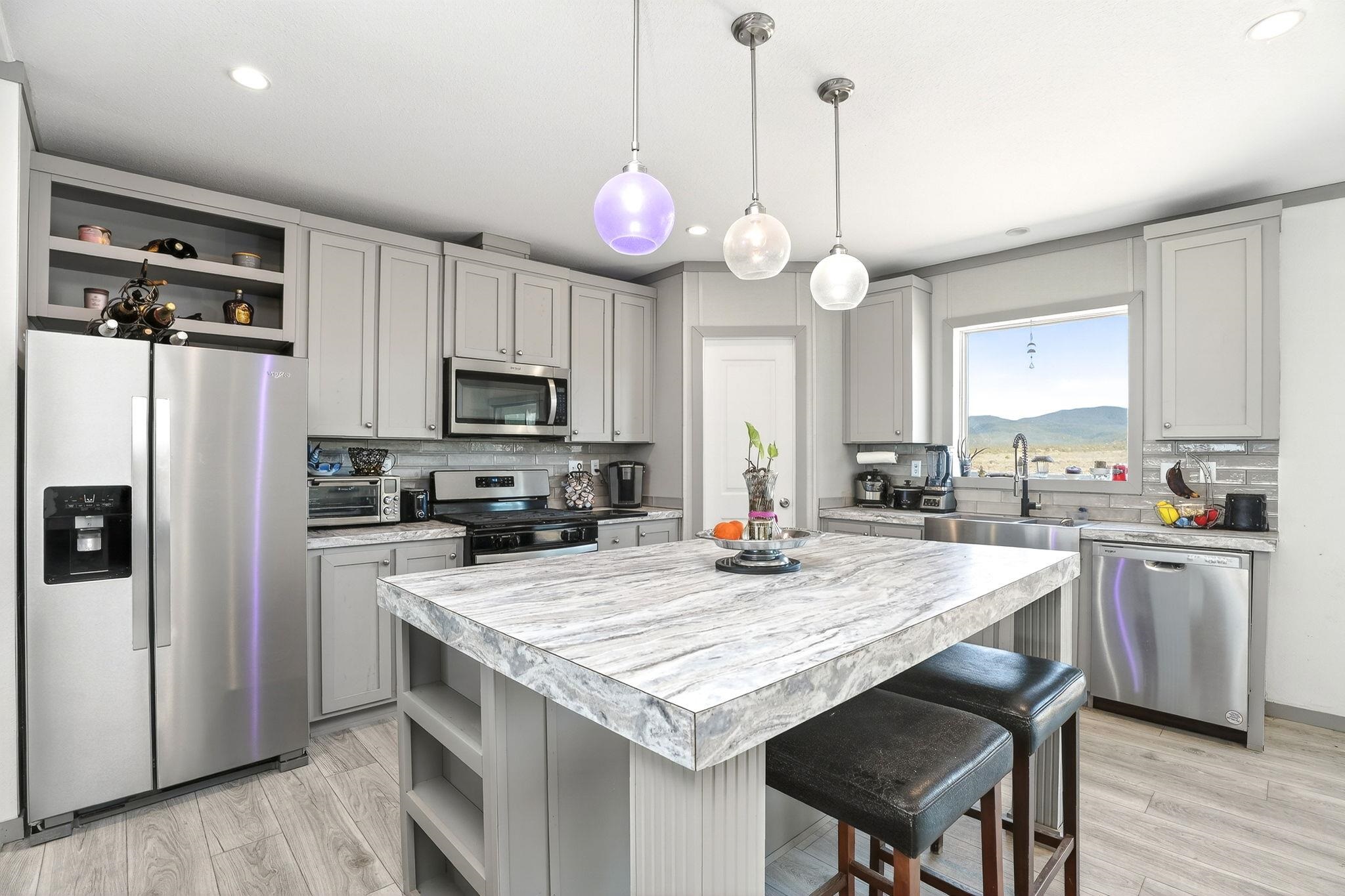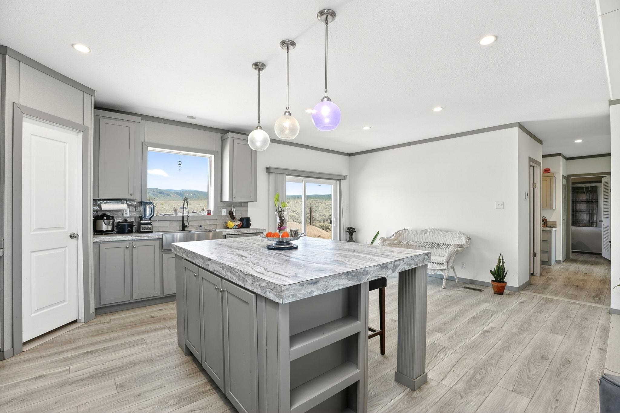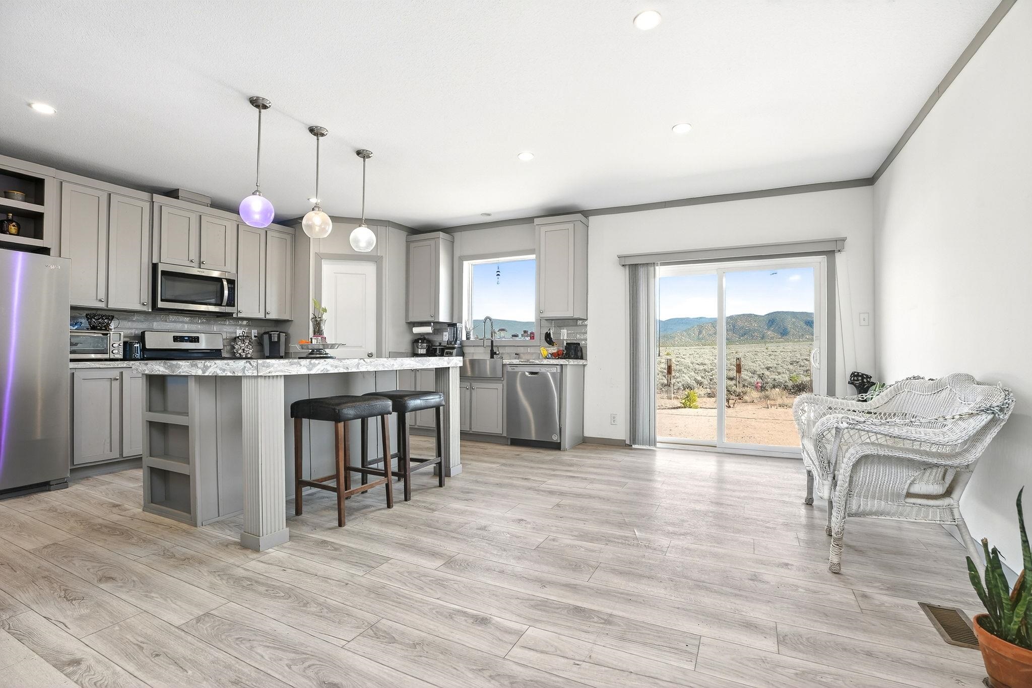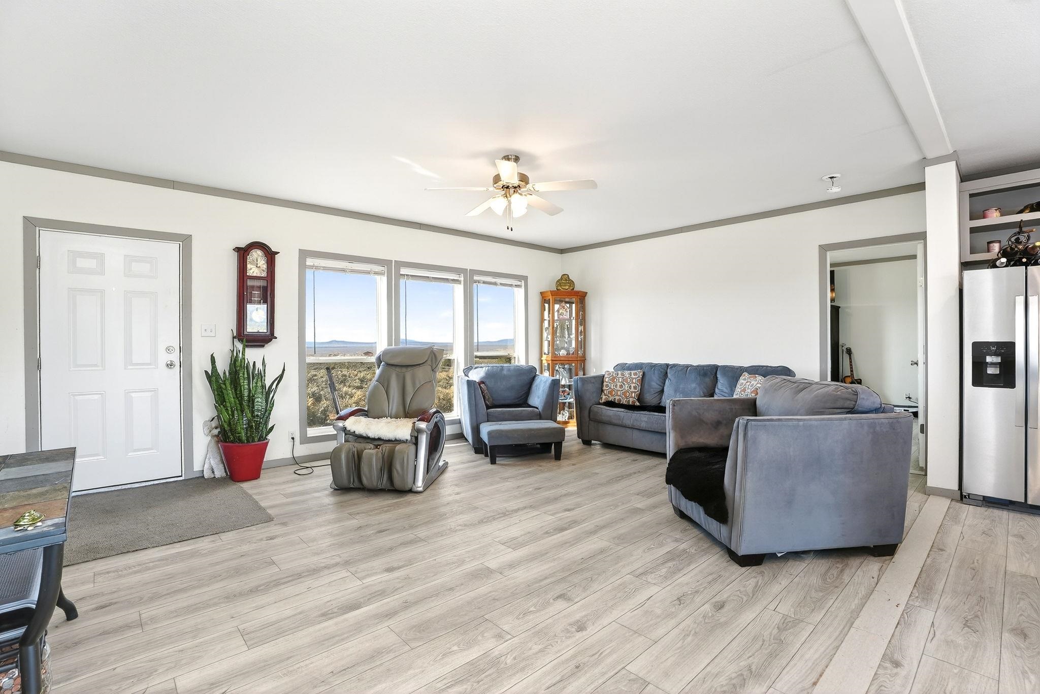 Experience wide-open skies and breathtaking 360 views from this beautifully situated 2025 Champion manufactured home on a permanent foundation. With 3 bedrooms, 2 bathrooms, and approximately 1,680 square feet, this lightly lived-in home offers modern comfort in a serene, expansive setting. Set on a full acre of flat, buildable land, the property captures sweeping views across the valley to Taos Mountain, the Gorge Rim, and beyond. Located at the end of a quiet road, you'll enjoy privacy and peace while remaining just 8 minutes to Taos Country Club and 13 minutes to the Taos Plaza, close to everything, yet comfortably removed from the hustle and bustle. The home features newly installed septic, water line, propane, and electric service, providing confidence and convenience for its next owner. With minimal restrictions and ample space for expansion, gardens, or additional structures, this property offers both flexibility and opportunity. Priced to sell, this is your chance to own an affordable and beautiful slice of Taos with unmatched views and room to breathe.