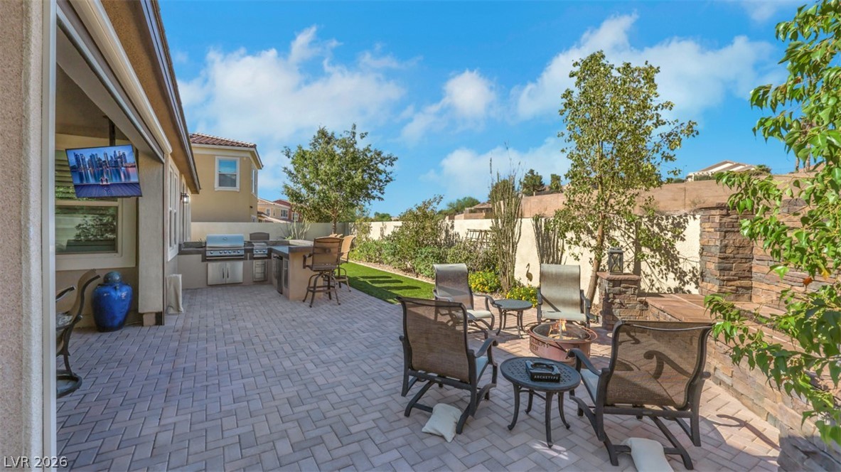 Beautifully appointed 4-bedroom, 4-bathroom, 4 car tandem garage home in sought after Gated Alterra in the vibrant Inspirada community. Spacious open concept layout, chef's kitchen, quartz countertops, GE Monogram stainless steel appliances, large island for entertaining, walk-in Pantry, Butler's Pantry & Built-in Bar. Luxurious Den with Built-Ins & Hardwood Floors. Bedroom/Bathroom Down. Enjoy indoor-outdoor living with a private backyard retreat with Custom Outdoor Kitchen, Stone Gas Fireplace & Covered Patio, No Homes Behind. Backs to walking trail. Large Laundry room with door to Backyard. Upstairs, luxurious Primary Suite. Loft plus 2 Bedrooms. Crown Molding & Plantation Shutters. New A/C units. Access to all of Inspirada's amenities-parks, trails, tennis, pools & social calendar. Nearby Shopping & Restaurants. Making it a true gem in one of Henderson's most vibrant neighborhoods. Henderson offers some of the best public schools in the state, choose from charter & private schools.