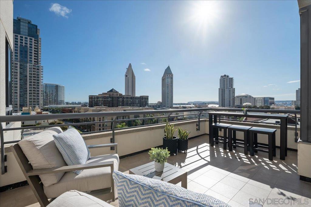 Experience true full-service luxury living at the iconic Meridian in San Diego's Marina District. This beautifully positioned property offers one of the building's most desirable layouts with southwest exposure, filling the home with natural light while capturing city and bay views. Expansive windows wrap the main living areas, creating a bright and open atmosphere that seamlessly connects indoor living with the spacious private terrace - perfect for enjoying San Diego sunsets and coastal breezes. Life at The Meridian offers a truly elevated full-service lifestyle with 24-hour concierge, doorman, valet parking, porter service, on-site management, and security. Residents enjoy resort-style amenities including a heated pool, spa, fire-pit lounge areas, cabanas, BBQ areas, and a beautifully landscaped outdoor plaza spanning over half an acre. The building also features two fully equipped 24-hour fitness centers with saunas and steam rooms, Peloton bikes, guest suites, conference and entertainment rooms, and a wide range of resident services and social events. Perfectly located, you are just moments from the waterfront, Seaport Village, Little Italy, world-class dining, shopping, and San Diego's vibrant cultural and entertainment scene. Meridian is known for its exceptional construction, including approximately 32 inches between floors - a rare feature providing superior sound insulation and privacy. This is more than a residence - it's a lifestyle of service, luxury, and effortless downtown living in one of San Diego's most distinguished high-rise communities. More than a residence - it's a lifestyle. PLEASE REFER TO THE ATTACHED DOCUMENTS FOR IMPORTANT INFORMATION REGARDING UNIT #605 AND THE MERIDIAN COMMUNITY. The lobby is currently undergoing a full renovation and is expected to be completed by the end of March or early April.