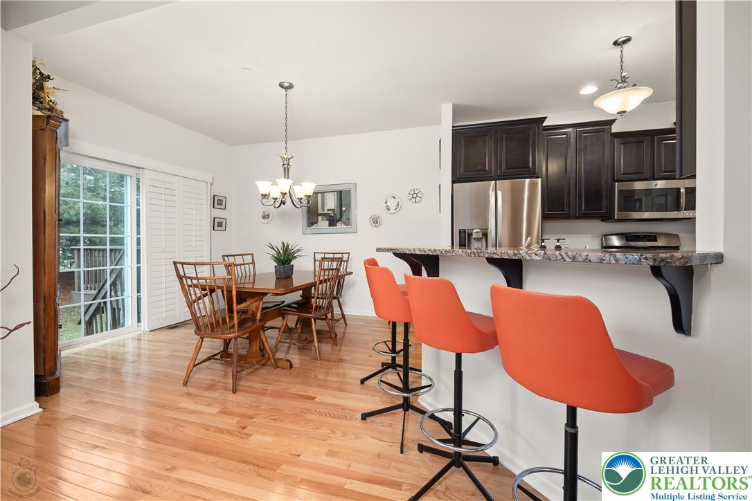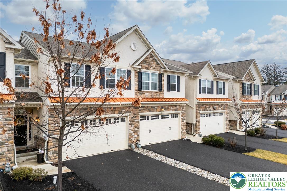 Beautifully maintained and thoughtfully designed, this exceptional 3-bedroom, 2 -bath home is nestled in the carefree community of Indian Mill Creek, where comfort and convenience blend seamlessly. Step through the welcoming foyer and into the home with gleaming hardwood floors, soaring 9-foot ceilings, freshly painted walls, and an inviting and open-concept layout. Anchoring the home's center is the kitchen- a true showpiece - featuring granite countertops (with a bar w/seating for four), dark-stained cabinetry, stainless steel appliances, and a gas cooktop. Plantation shutters, and sleek shutter sliding doors, grace the rear wall of the spacious living and dining room, adding a touch of sophistication- and opening the living space outdoors to the tree-lined backyard. A conveniently placed powder room and direct garage access complete the main level. Upstairs, a versatile loft offers the ideal space for a reading nook or work area. Double doors lead to a spacious primary suite w/a generous walk-in closet and a well-appointed ensuite bath! Two additional bedrooms (each w/large walk-in closets), a full bath and a dedicated laundry room complete the 2nd floor. The finished lower level provides additional room to relax or entertain, along w/three generously sized storage areas. Home is minutes to parks, dining, shopping & commuter routes. East Penn Schools and LOW HOA fees!!