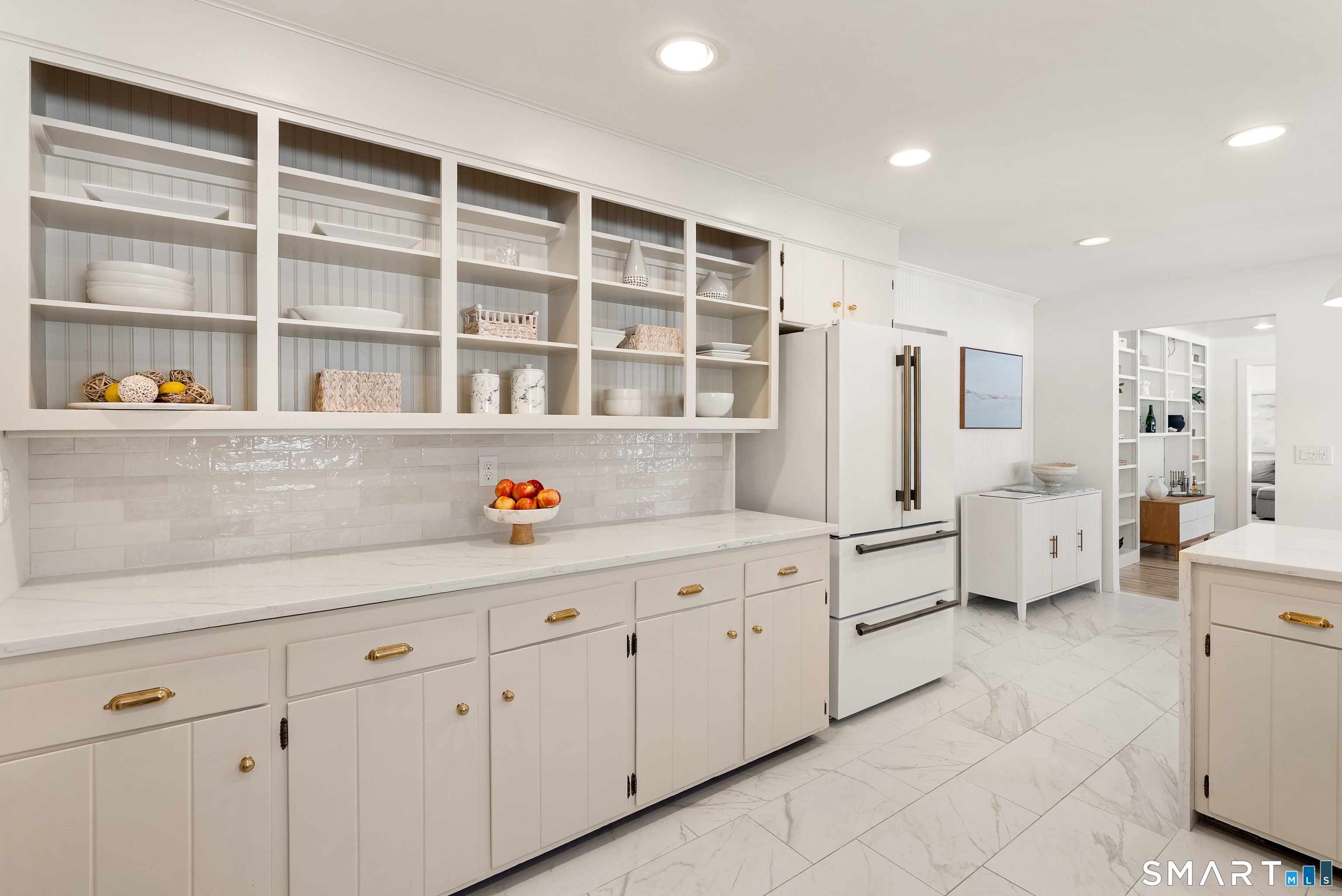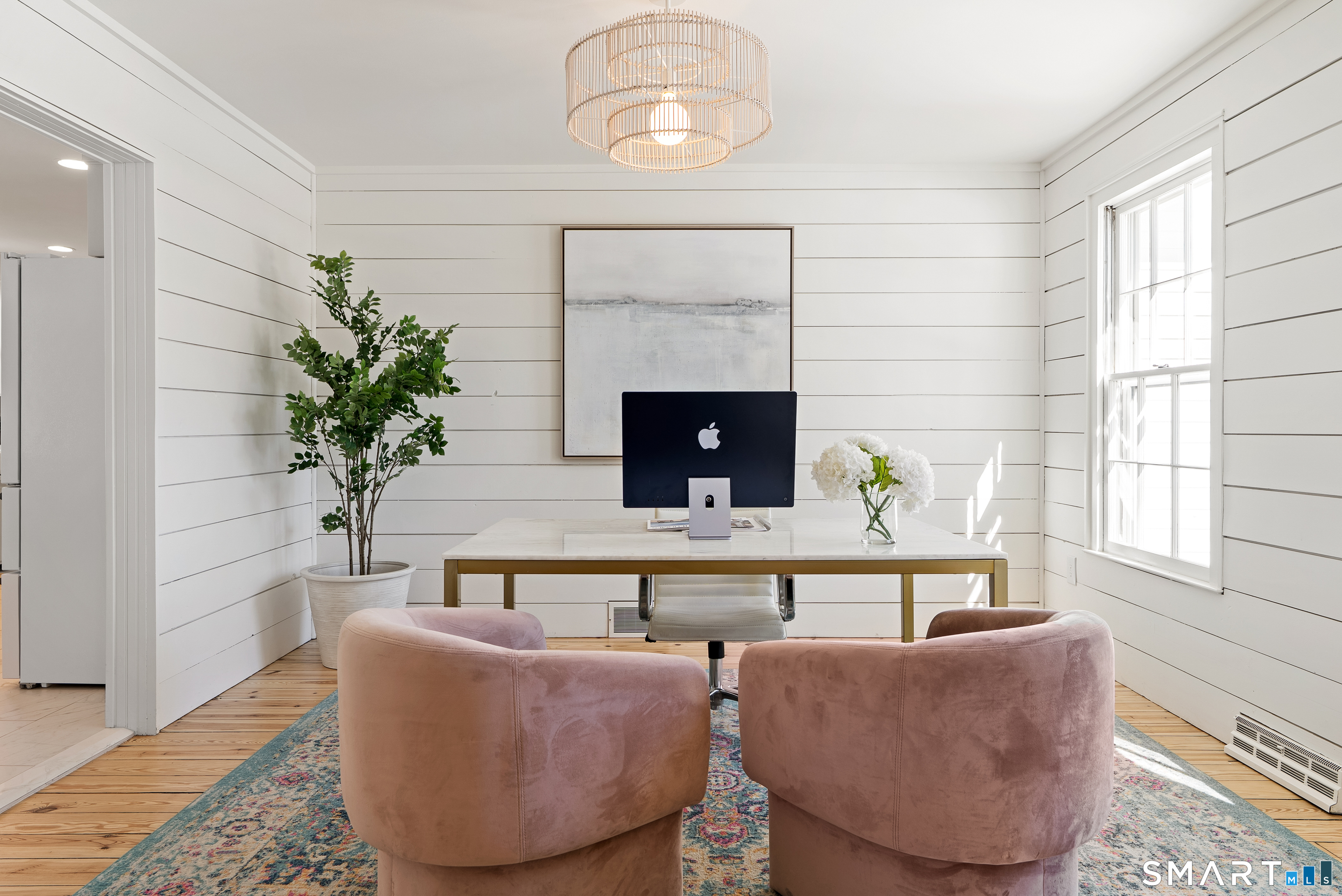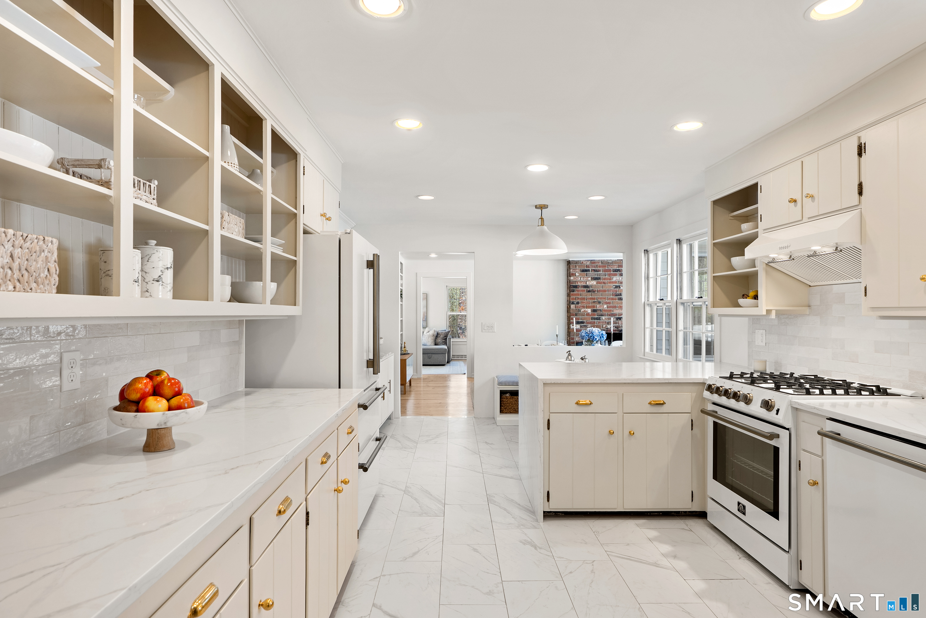 Perched above the surrounding homes, 7 Shaw Drive offers exceptional natural light, added privacy, and a warm, move-in-ready living experience in the heart of Simsbury. Thoughtfully renovated by owners who originally planned to stay long term, the home blends classic New England charm with refined modern design. Inside, you'll find custom-refinished hardwood floors, freshly painted interiors, custom shiplap wall paneling in several rooms, and designer light fixtures installed throughout much of the home, creating a cohesive and elevated feel. The updated bathrooms feature quartz countertops and designer fixtures, while the fully renovated kitchen showcases quartz countertops, a farmhouse sink, custom tile backsplash, high-end appliances, and premium unlacquered brass fixtures and hardware. Major improvements have already been completed, including a brand-new roof, full exterior repainting, and a newly constructed driveway with expanded parking at the top of the property, offering convenient space for multiple vehicles and guests. The home also includes a professional-grade whole-house water softener and filtration system, improving water quality while protecting plumbing fixtures and appliances. A fireplace-anchored dining space and welcoming layout make the home ideal for both everyday living and entertaining. Outside, the elevated setting creates a peaceful backdrop for relaxing or gathering with friends.