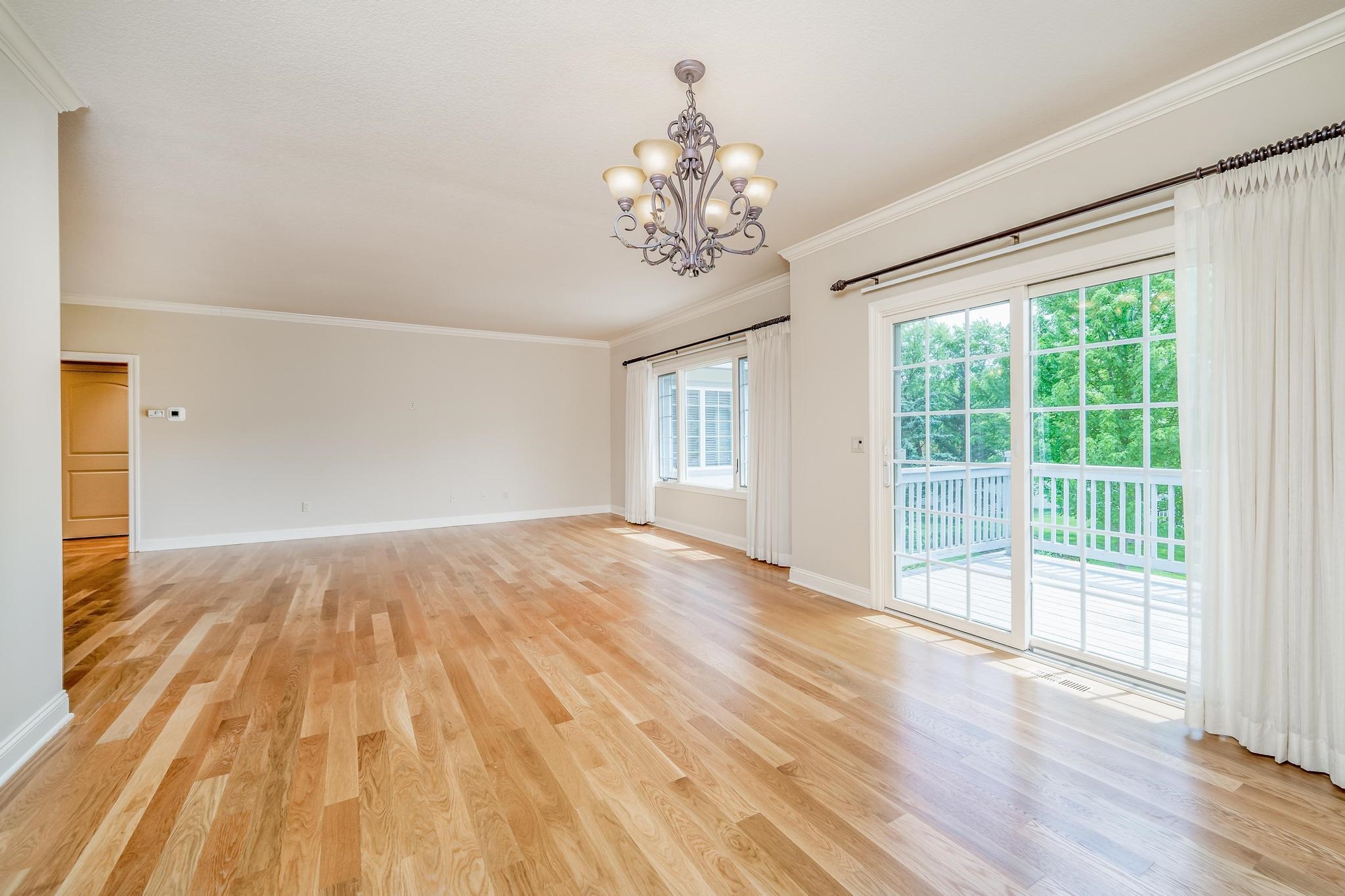 Welcome to a home where exceptional craftsmanship and timeless elegance define every space. Ideally located in the coveted Crest Ridge neighborhood, this is one of the newer and larger residences in the community, offering a rare combination of scale, sophistication, and thoughtful design. Upon entering, you are greeted by handsome hardwood floors that flow seamlessly throughout most of the home, creating warmth and continuity. The spacious living room is filled with beautiful natural light and opens gracefully to the formal dining area, creating an inviting setting for both everyday living and elegant entertaining. The kitchen is designed for both function and style, featuring a stunning quartz island, an abundance of warm-toned custom cabinetry, and high-end appliances including a double oven and premium refrigerator. A charming breakfast nook provides the perfect place to enjoy morning coffee while overlooking the serene surroundings. The extra-large primary suite is a peaceful retreat with tranquil views of nature and a well-appointed ensuite bath complete with double vanities and a generous walk-in closet. A richly appointed library or office showcases a beautiful fireplace and custom built-ins, creating a refined space for work, reading, or relaxation. The home's elegant staircase, wrapped in warm wood moldings, leads to the impressive lower level - or you may choose the convenience of a private elevator! The grand basement offers a spacious family room, game room, two large guest bedrooms, and two full bathrooms, providing exceptional space for entertaining or hosting overnight guests. Storage is abundant with an impressive 15 closets and two large dedicated storage rooms. The oversized garage extends an impressive 36 feet in length, offering ample room for vehicles, hobbies, or additional storage. Outdoor living is just as inviting, with two private balconies and a ground-level patio that provide wonderful spaces for relaxing or entertaining while enjoying the peaceful setting with lush landscaping. With wide hallways, an elevator, and very few steps, this home is easily adaptable to someone needing ADA accommodations. This remarkable Crest Ridge home combines thoughtful design, luxurious finishes, and generous living spaces - creating a residence that is both impressive and welcoming.