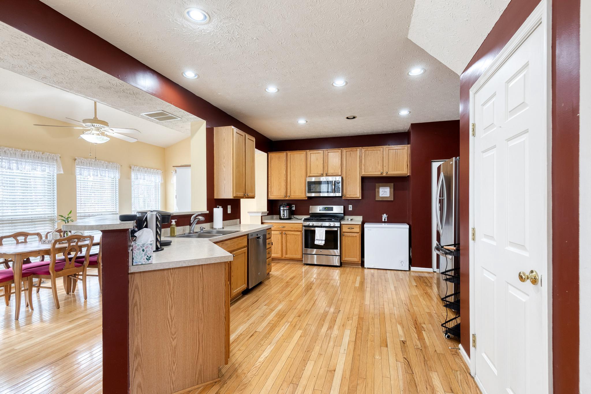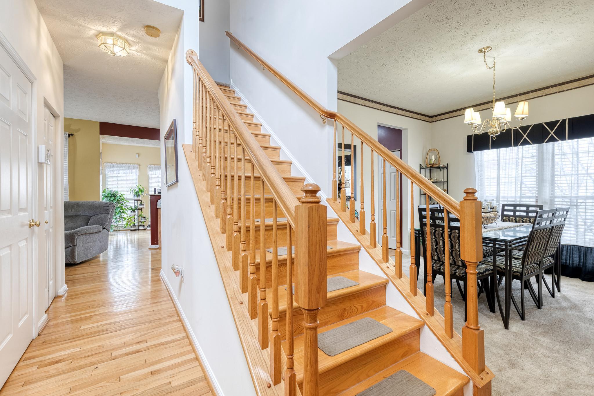 Welcome home to the hidden gem of Forest Oaks Point! Perfectly sized at just under 3,000 finished square feet, 2970 Siwanoy Drive is situated on one of the better tree-backing lots in the neighborhood. Enter into the traditional floorplan with a hardwood laden two-story foyer. A home office sits across from the formal dining room with plush carpeting freshly cleaned in both. Past a large living room find a spacious kitchen with stainless steel appliances, ample storage, and a bump-out for eat-in dining room or additional flex space. Upstairs three large bedrooms are paired with two bathrooms, one in the hallway and one en-suite for the primary bedroom. A true walk-in closet pairs well with the large bathroom providing tons of storage and hanging space. The second and third bedrooms are nicely sized each with large windows and cozy carpeting. The fully finished basement is an entire additional living space, with plenty of flex space for additional family room, entertaining area, and additional flex room for another home office or bedroom in a pinch. The outdoor space is ready for spring nights. Featuring both a deck off of the kitchen bump-out perfect for grilling, and a patio with firepit ready for campfires bring your moving boxes to 2970 Siwanoy Drive in time for spring!
