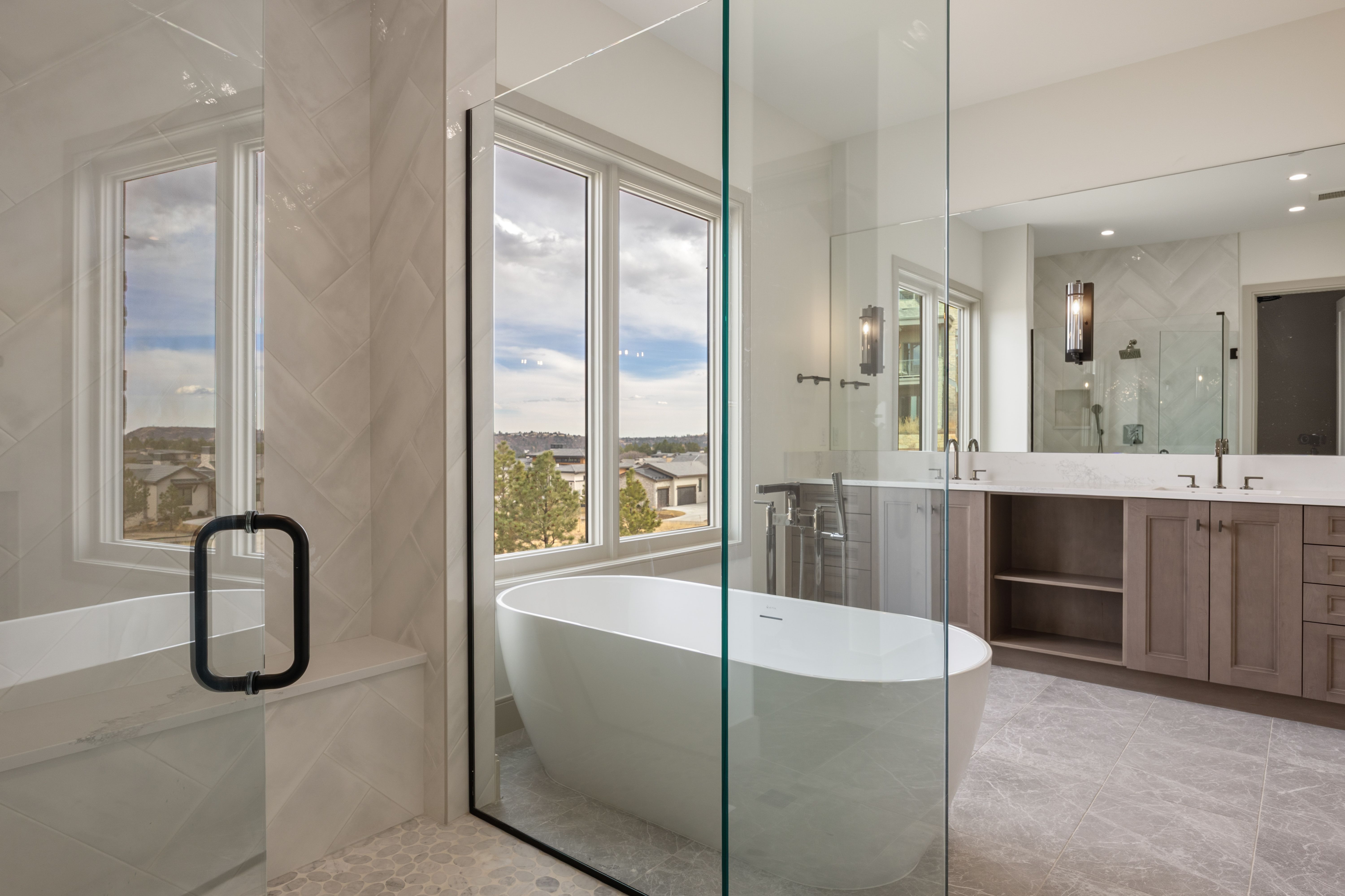 Welcome to the only MOVE-IN READY CUSTOM new construction home in the Village at Castle Pines! This exceptional mountain-view 4 bed | 6 bath residence is ready for its first owner and offers elevated Colorado living just steps away from Castle Pines Country Club. Hardwood floors extend throughout the main level, study, and staircase, complemented by level 5 smooth drywall, 8-foot solid-core doors, and custom lighting that creates a warm, gallery-like ambiance throughout the entire home. A focal point, the linear gas fireplace anchors the great room which opens through expansive sliding doors to a covered deck with tongue-and-groove ceiling and dry-below system, providing seamless indoor-outdoor gatherings to enjoy year-round Colorado living. The kitchen features quartz counters, a designer tile backsplash, Kitchen Showcase cabinets, and a premium Thermador appliance suite with double ovens, gas cooktop, dual dishwashers, microwave, and Zephyr beverage cooler. A generous island, sunny dining area, walk-in pantry, and versatile flex space support effortless living. A convenient main level primary suite offers a modern bathroom with a freestanding tub and oversized shower. Laundry access from both the foyer and primary suite enhances daily convenience. A useful secondary bedroom with en suite bathroom, office, chic powder room, and 3-car garage + golf cart bay with 220 outlet complete the main level. The walkout lower level offers a spacious family room, wet bar, workout room, two en-suite bedrooms, and a stylish powder room, all opening to a covered patio and landscaped grounds. Additional highlights include designer finishes and a professionally landscaped front and back yard with trees, grasses, sod, and in-ground sprinkler system - rarely found with new construction. Set within a premier gated community offering championship golf, scenic trails, and unmatched privacy, don't miss this opportunity to own 1 of the LAST 2 new construction homes left in the Back Tees!
