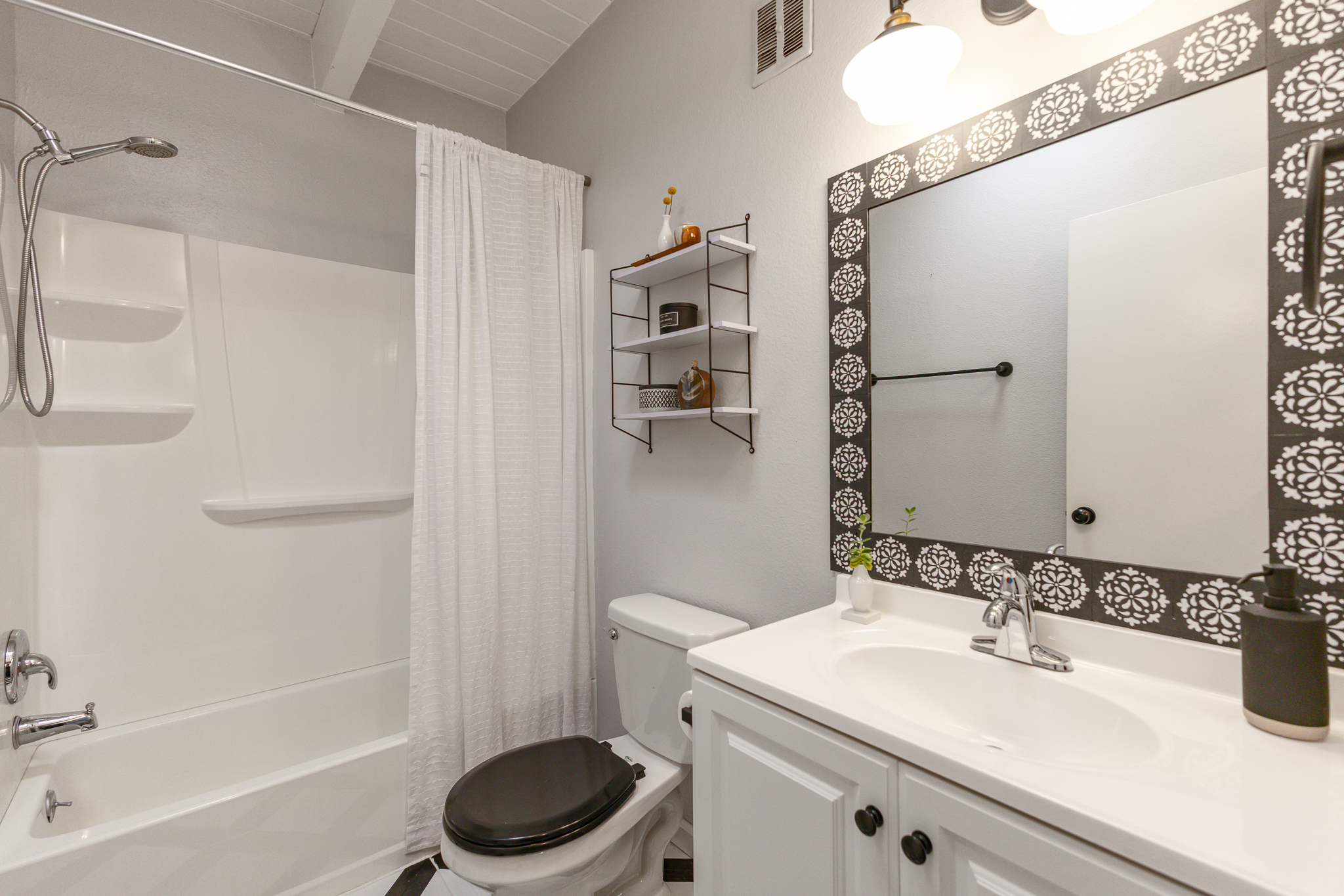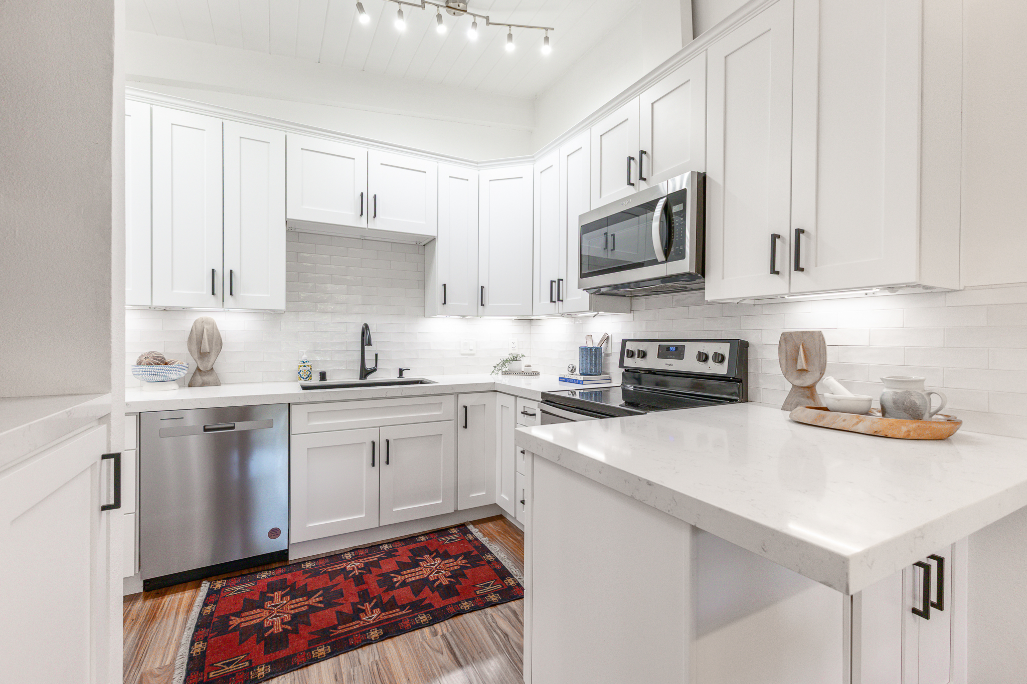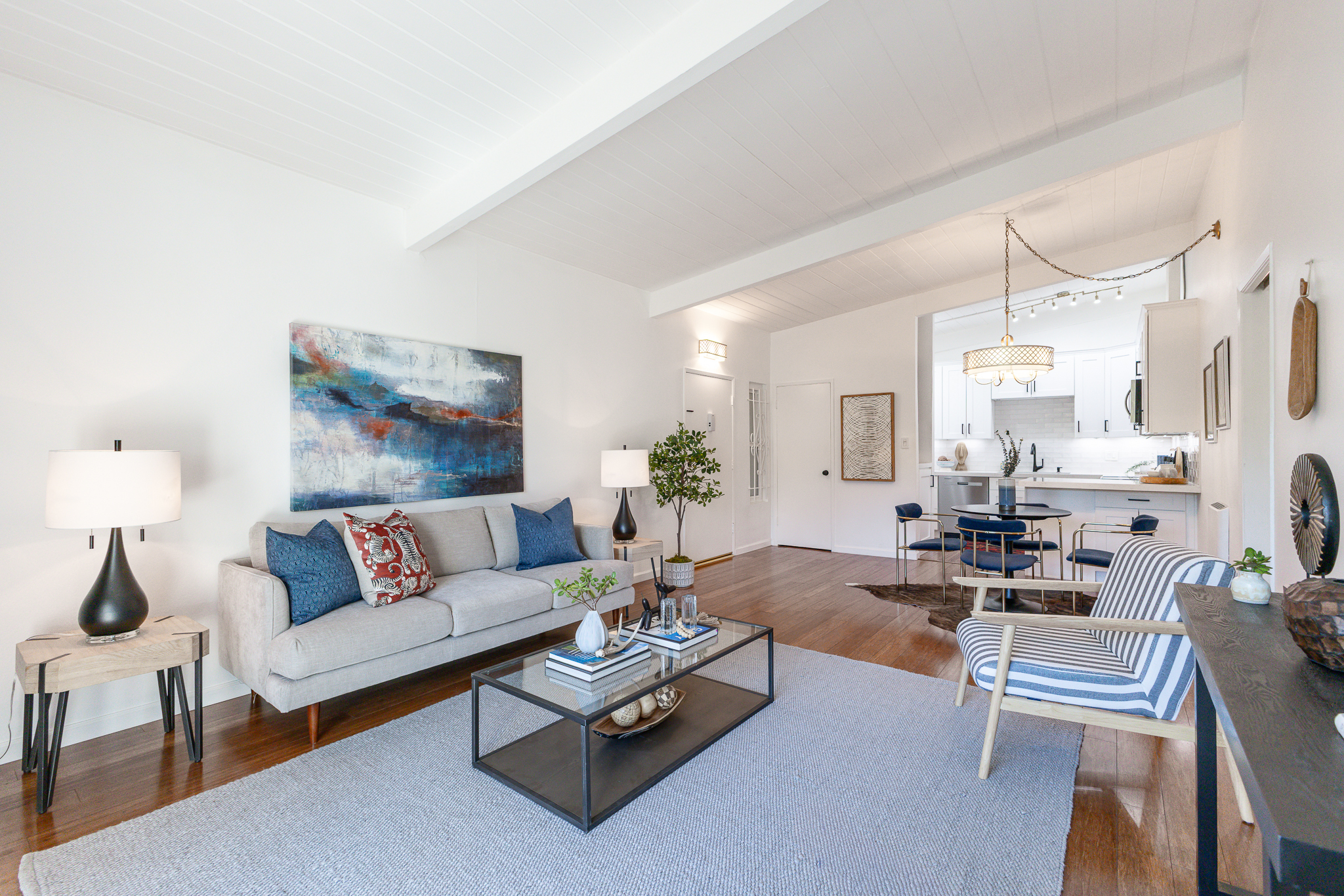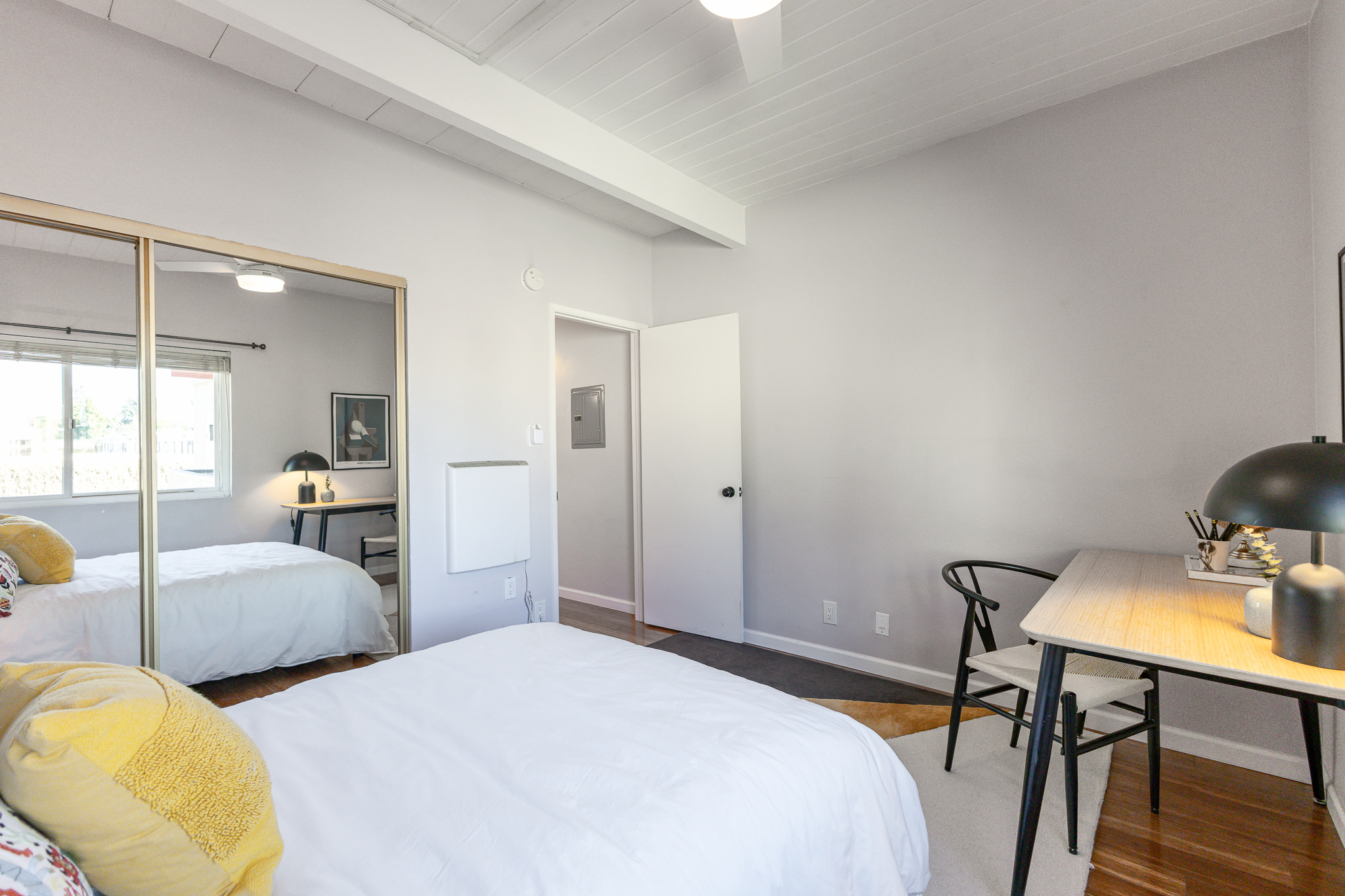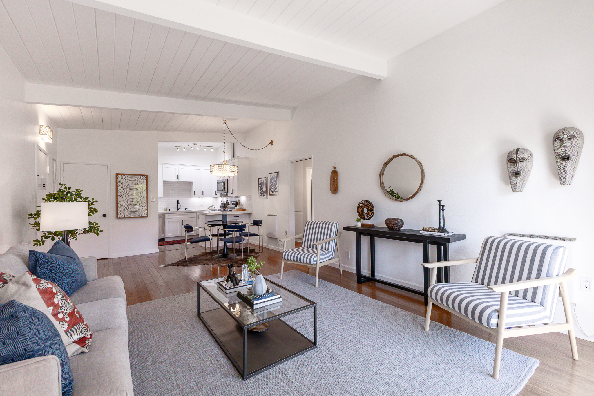 This light-filled 2-bedroom, 2-bathroom condo is ideally located in the prime Valley Village area of Studio City. Charming top-floor unit features soaring beamed wood ceilings and beautiful engineered hardwood floors throughout. The bright and open living room is perfect for relaxing or entertaining and opens to a private balcony overlooking the pool, an ideal spot for enjoying morning coffee or evening sunsets. The kitchen has been tastefully remodeled with upgraded appliances and convenient under-cabinet lighting, creating both style and functionality. The primary bedroom offers a spacious retreat with an en-suite bathroom featuring newly remodeled tile and updated fixtures. Both bathrooms include skylights, bringing in abundant natural light. Additional upgrades include energy-efficient windows/sliding door, an upgraded electrical panel, and sleek ENVI wall heaters that are both energy-efficient and streamlined in design. The well-maintained gated complex features attractive front landscaping, a pool and deck for lounging, resurfaced common areas, copper plumbing throughout, and a newer roof. The unit includes one covered, secure parking space conveniently located near the unit along with storage above. Enjoy a fantastic location close to everyday conveniences such as Starbucks and Gelson's Markets, along with nearby shops, restaurants, and markets. You'll also appreciate the easy access to the upscale dining and boutique shopping along Ventura Boulevard.