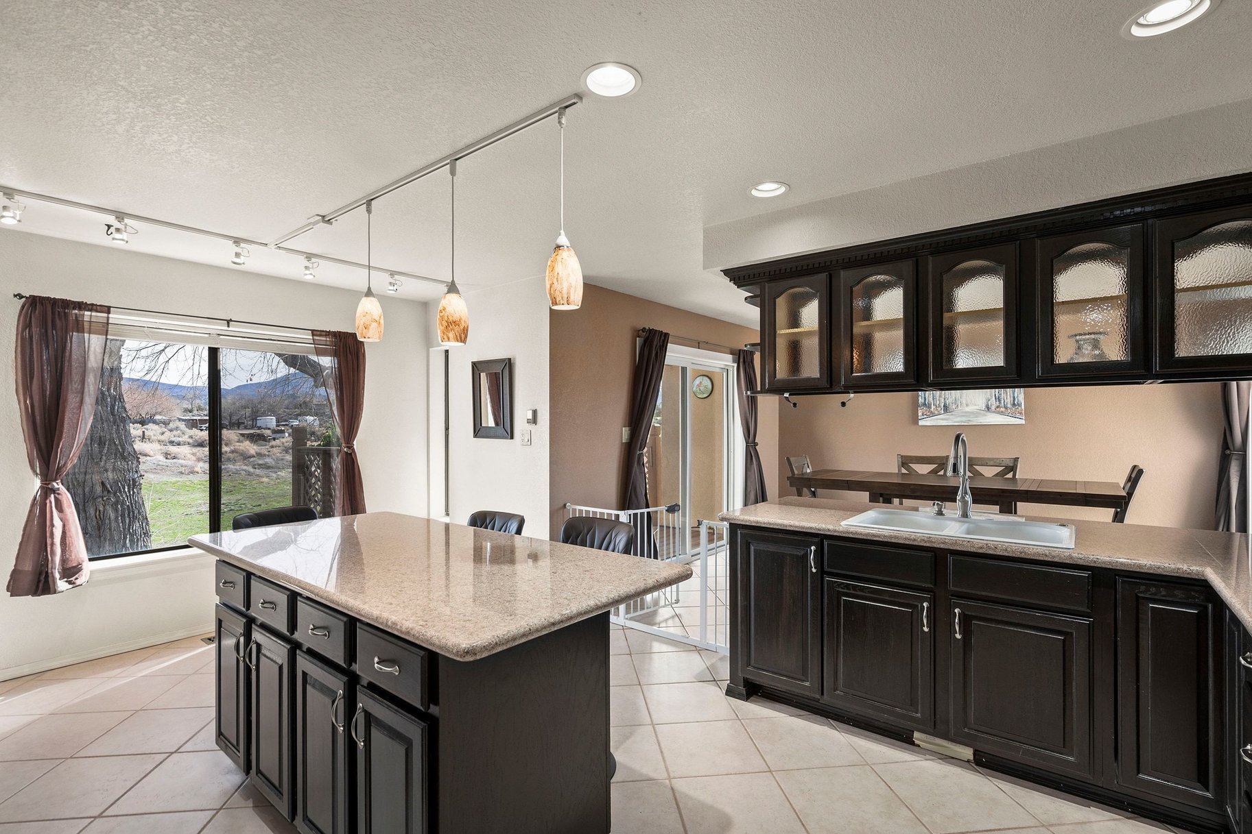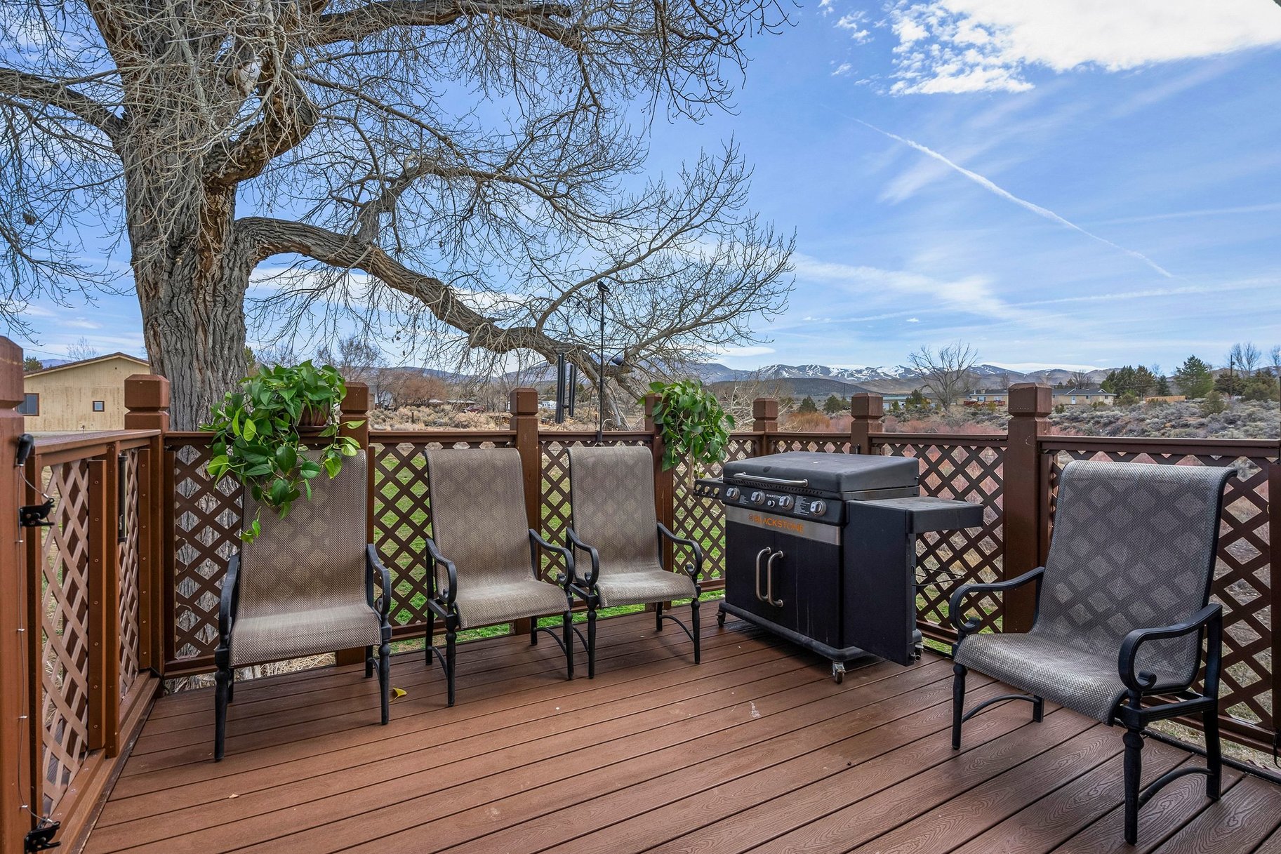 Discover your private rural retreat on 3.2 acres of serene, usable land, perfectly positioned to capture stunning mountain views from nearly every angle. This spacious home offers 5 bedrooms and 3.5 baths, including a fully finished basement with its own separate entrance—ideal for guests, multigenerational living, or a rental opportunity. The basement features 2 bedrooms, a full bath, and a comfortable living area. Step inside to the main level's inviting living room, boasting wood-look tile floors, a soaring vaulted ceiling, a cozy pellet stove, and direct access to one of the home's five decks, where breathtaking mountain vistas await. The heart of the home is the updated kitchen, equipped with stainless steel appliances, a gas range with built-in air fryer, a built-in oven, built-in microwave, a large central island perfect for gathering, abundant storage, and easy-care tile floors. This open-concept space flows seamlessly into the dining area and out to a rear deck, framing those incredible mountain views for everyday enjoyment and entertaining. Upstairs, the primary suite is a true sanctuary with its own private balcony overlooking the mountains, tile floors, a luxurious soaking tub, a separate stall shower, double sinks, and generous storage including three closets (one a spacious walk-in). The additional two bedrooms upstairs provide plenty of room for family or visitors. Outdoor living shines here with five decks—some featuring fresh Trex decking and newly installed handrails—offering ample sunshine, relaxation spots, and panoramic mountain scenery. Parking and hobbies are covered with an attached 2-car garage plus a impressive detached 6-car garage, providing exceptional space for vehicles, toys, workshops, or storage. Updates like newer carpeting, a new bathroom and paint located in the finished basement adds modern comfort to this rare combination of rural privacy, generous acreage, and thoughtful features. Whether you're seeking a peaceful escape or a versatile family compound, this property delivers country living at its finest. This home has been lovingly cared for, perfect for artists wanting to capture the rural mountain views, people wanting space to roam and plenty of quiet.
