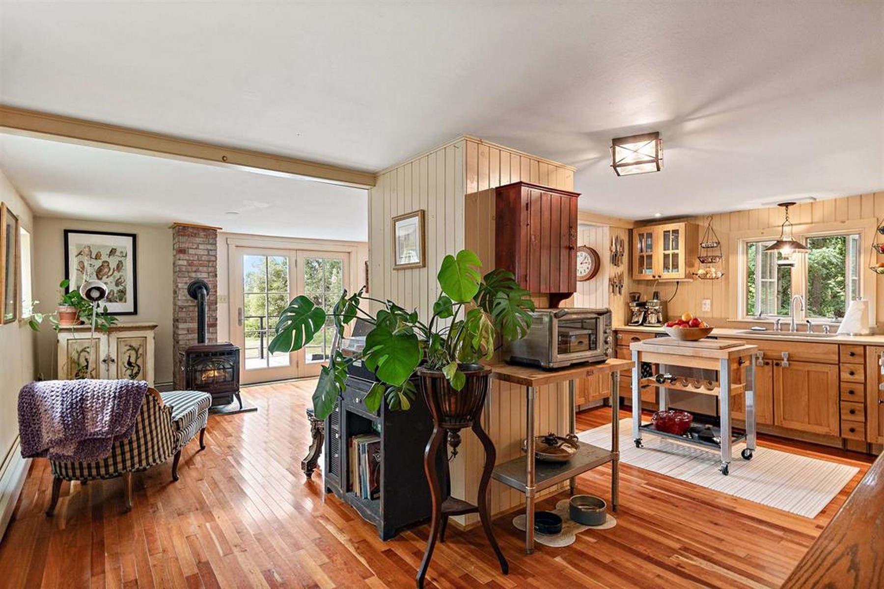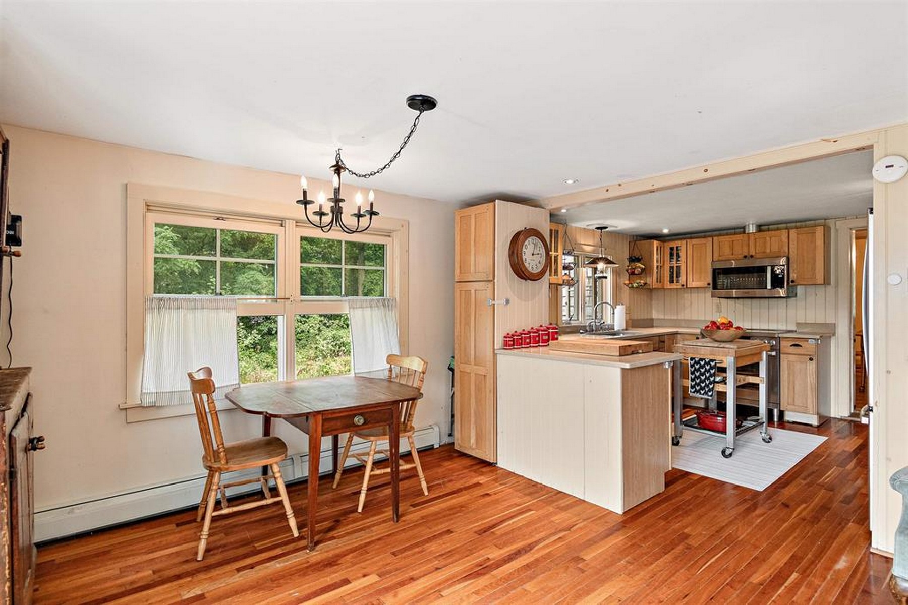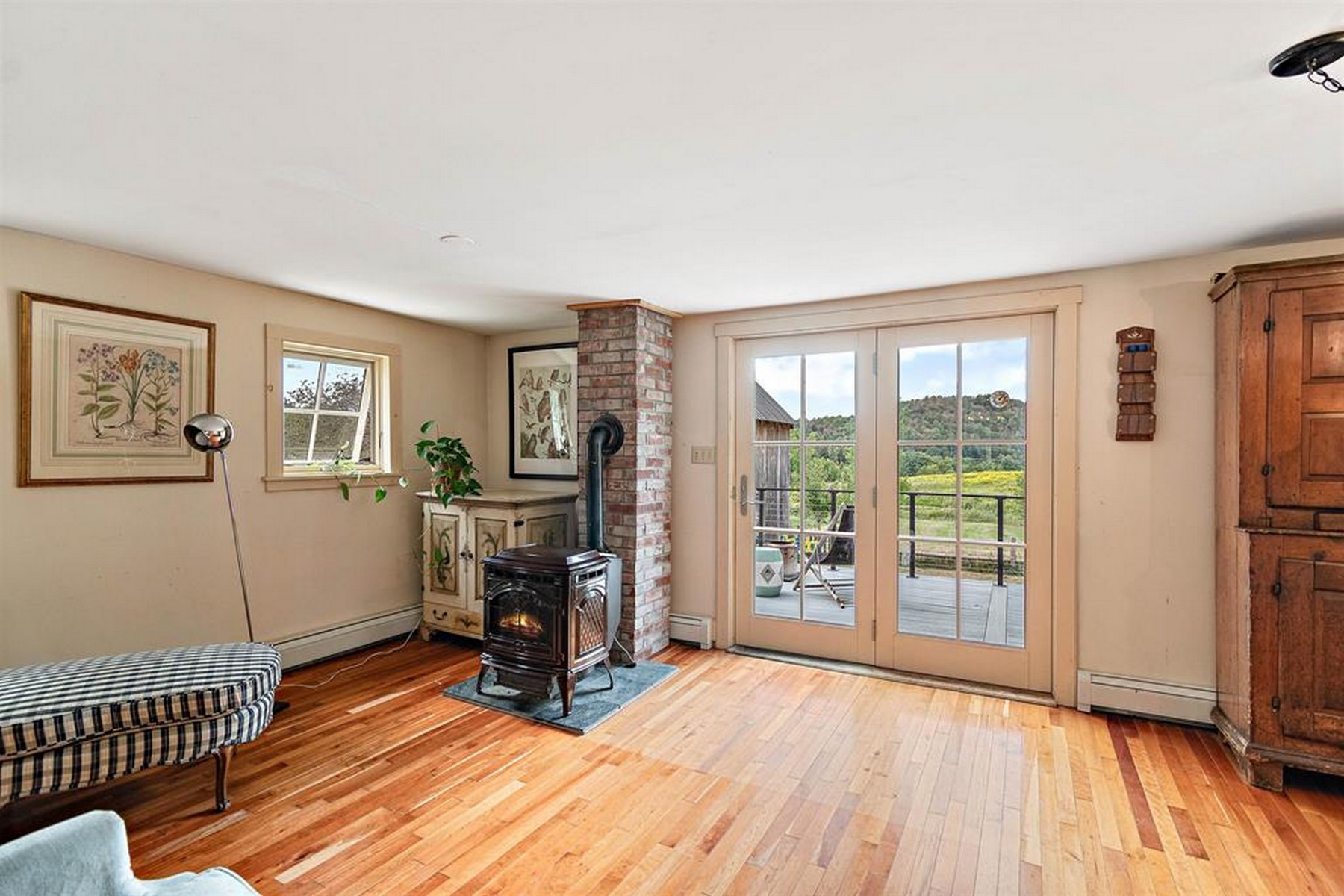 Set on more than 12 acres in Monkton, this classic Vermont farmhouse captures the kind of peaceful country living people dream about. With 3 bedrooms, 2 bathrooms, and nearly 1,900 square feet, the property offers space, privacy, and the beauty of nature just 25 minutes to Burlington or Middlebury.An essential mudroom welcomes you inside, opening to a warm eat-in kitchen with Schuler hickory cabinetry, Silestone countertops, and updated appliances. From there, the home flows easily into the living area overlooking the composite deck and your own private pond a special setting for morning coffee, evening sunsets, and quiet reflection. A small fenced area off the deck adds comfort and flexibility for outdoor living.Hardwood floors carry throughout the main level, which includes a dining room and a cozy den anchored by a wood stove perfect for snowy Vermont evenings. The first-floor primary bedroom, renovated full bath, and laundry create the rare opportunity for one-level living within a classic farmhouse design.Upstairs, two additional bedrooms and a ? bath provide comfortable space for family or guests, with mini-split systems in each bedroom for efficient cooling.Outside, a productive kitchen garden with raised beds and established perennial fruits, blueberries, raspberries, grapes, hardy kiwi, cherry, apple, and peach makes this a true homesteader's haven. The detached workshop barn (built in 2010) offers outstanding versatility with loft storage and covered parking. Open acreage stretches behind the home with mountain views and glowing sunsets.Extensive improvements, including updated windows, siding, kitchen, baths, solar panels, pellet stove, mini-splits, and a 200-amp electrical upgrade, ensure modern comfort while preserving timeless Vermont character. Closing cannot occur prior to 6/29/26