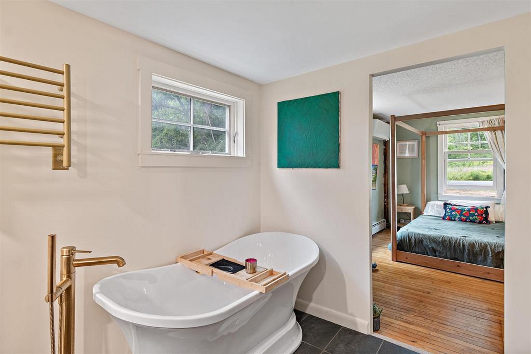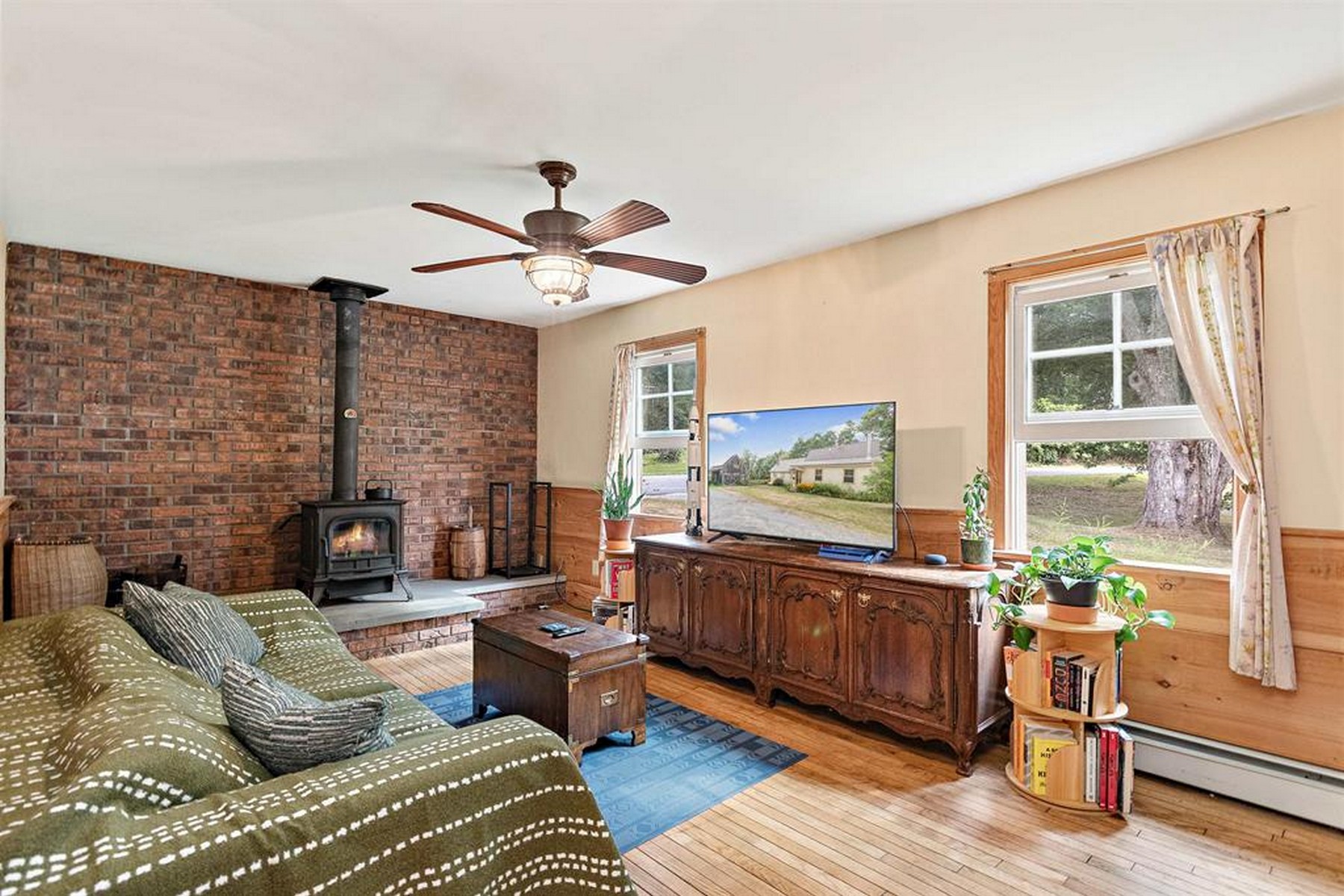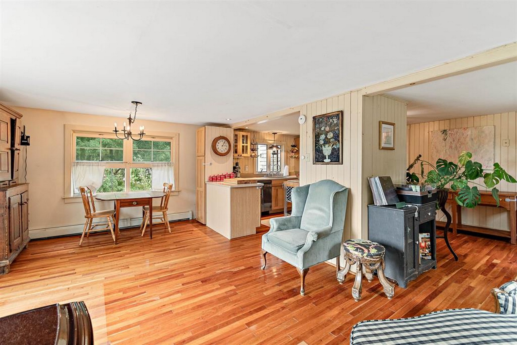 Set on more than 12 acres in Monkton, this classic Vermont farmhouse captures the kind of peaceful country living people dream about. With 3 bedrooms, 2 bathrooms, and nearly 1,900 square feet, the property offers space, privacy, and the beauty of nature just 25 minutes to Burlington or Middlebury.An essential mudroom welcomes you inside, opening to a warm eat-in kitchen with Schuler hickory cabinetry, Silestone countertops, and updated appliances. From there, the home flows easily into the living area overlooking the composite deck and your own private pond a special setting for morning coffee, evening sunsets, and quiet reflection. A small fenced area off the deck adds comfort and flexibility for outdoor living.Hardwood floors carry throughout the main level, which includes a dining room and a cozy den anchored by a wood stove perfect for snowy Vermont evenings. The first-floor primary bedroom, renovated full bath, and laundry create the rare opportunity for one-level living within a classic farmhouse design.Upstairs, two additional bedrooms and a ? bath provide comfortable space for family or guests, with mini-split systems in each bedroom for efficient cooling.Outside, a productive kitchen garden with raised beds and established perennial fruits, blueberries, raspberries, grapes, hardy kiwi, cherry, apple, and peach makes this a true homesteader's haven. The detached workshop barn (built in 2010) offers outstanding versatility with loft storage and covered parking. Open acreage stretches behind the home with mountain views and glowing sunsets.Extensive improvements, including updated windows, siding, kitchen, baths, solar panels, pellet stove, mini-splits, and a 200-amp electrical upgrade, ensure modern comfort while preserving timeless Vermont character. Closing cannot occur prior to 6/29/26