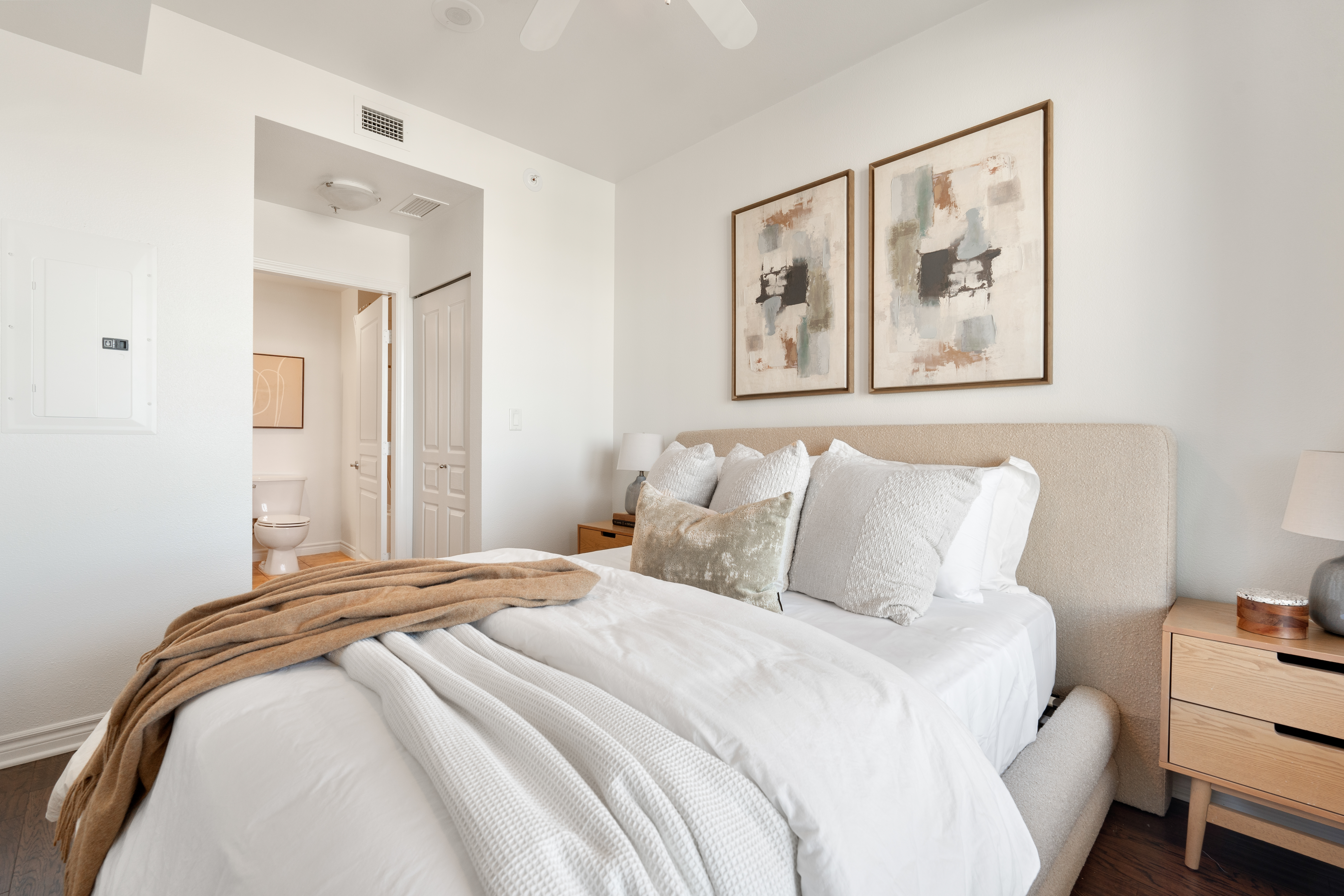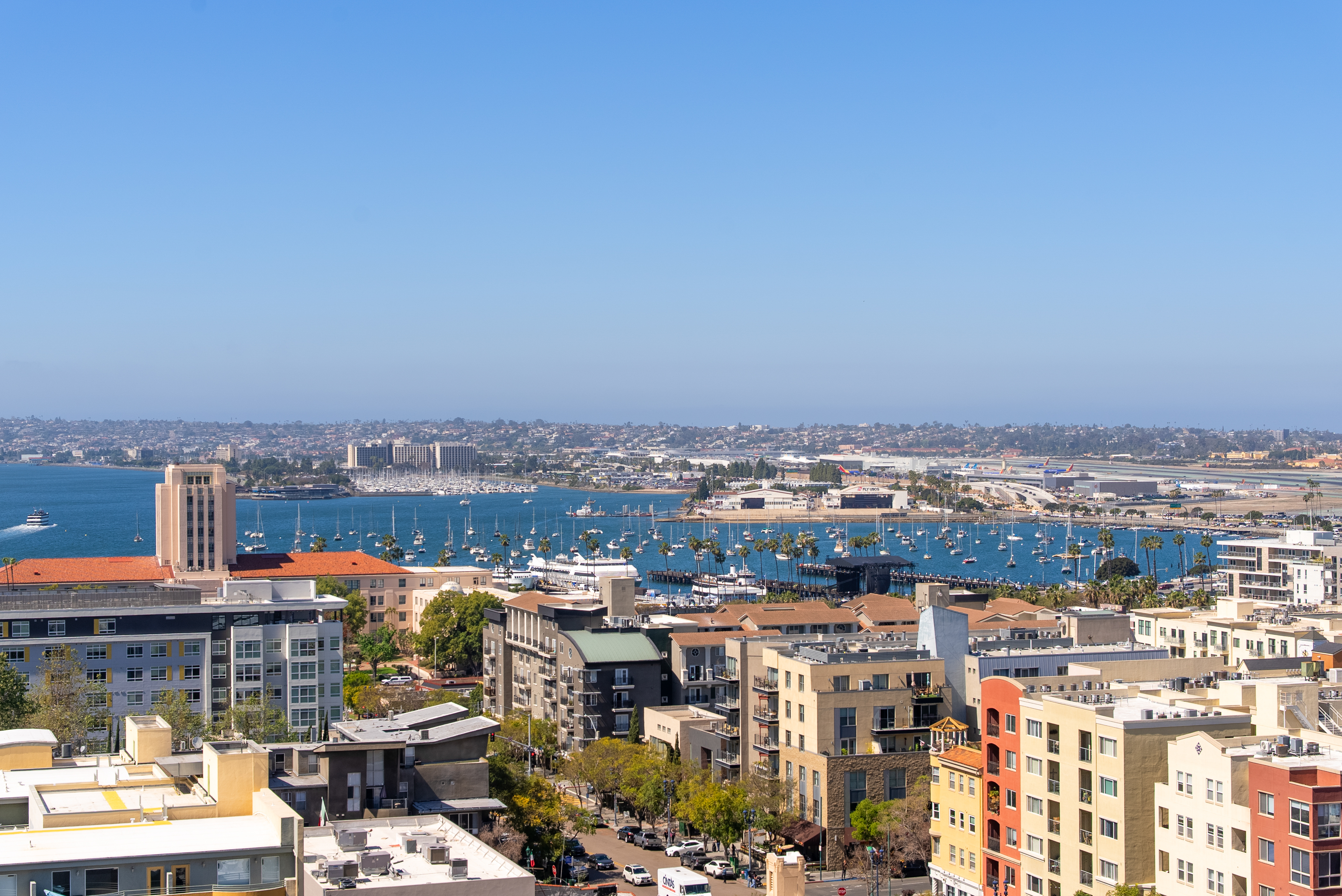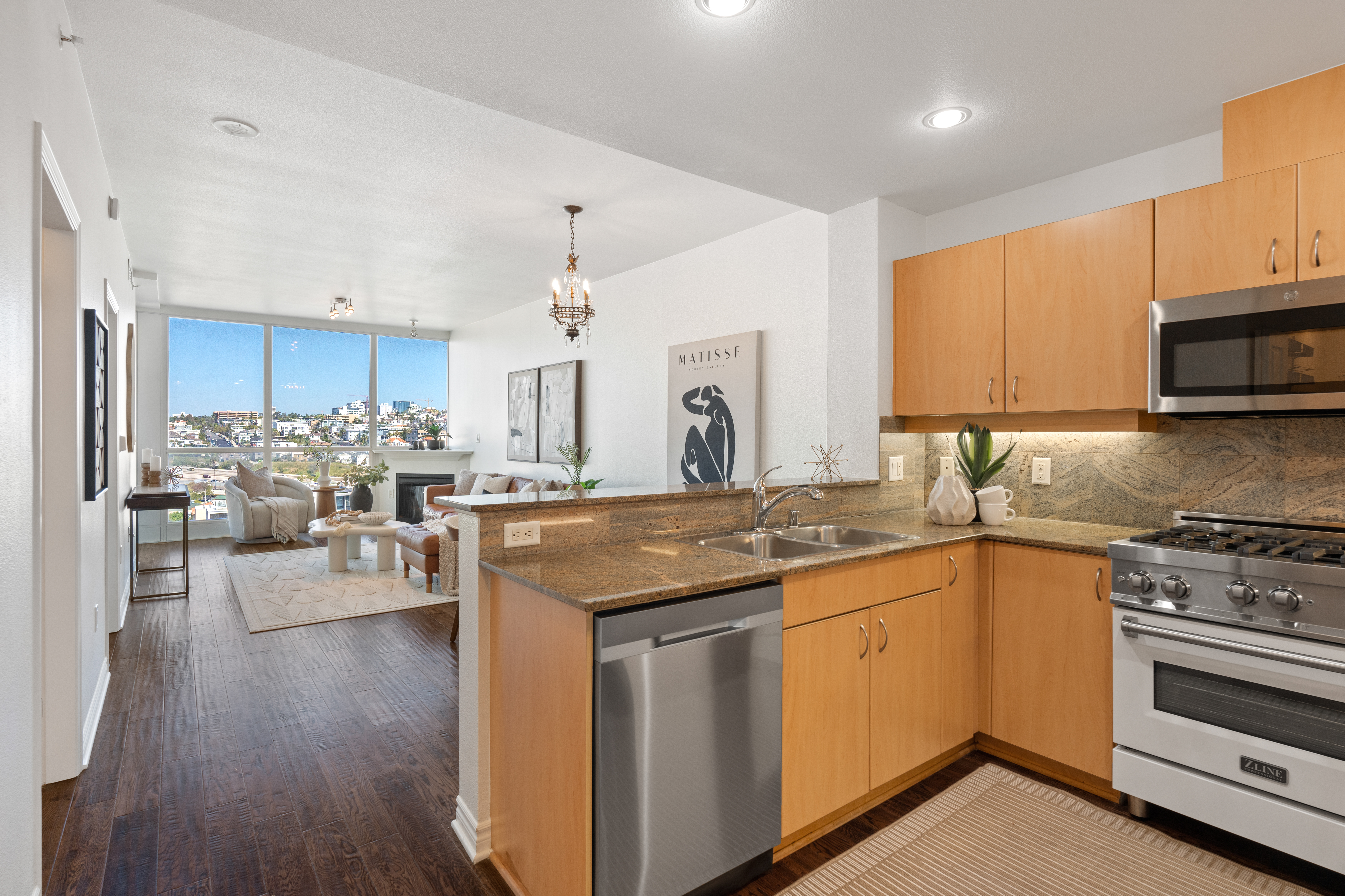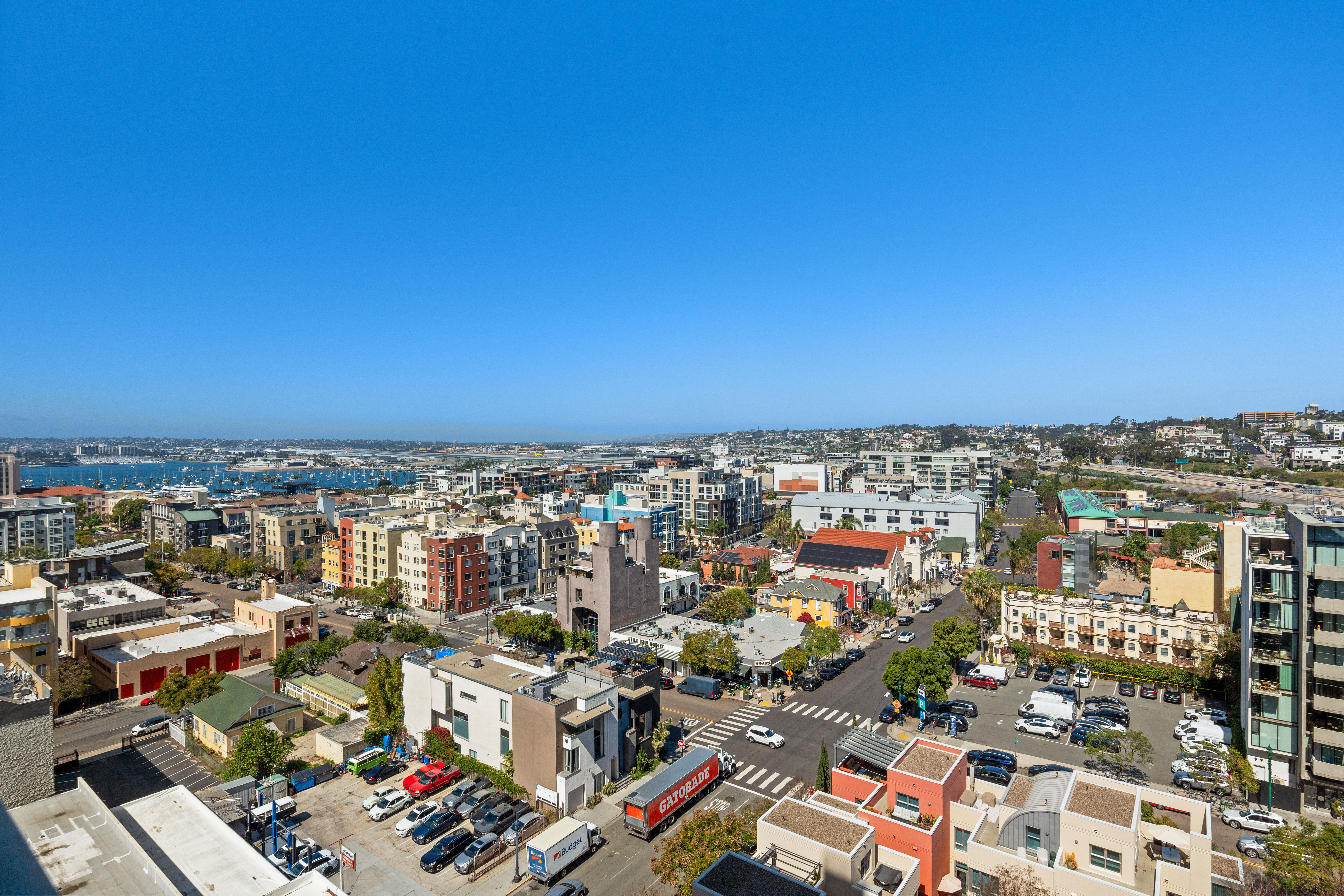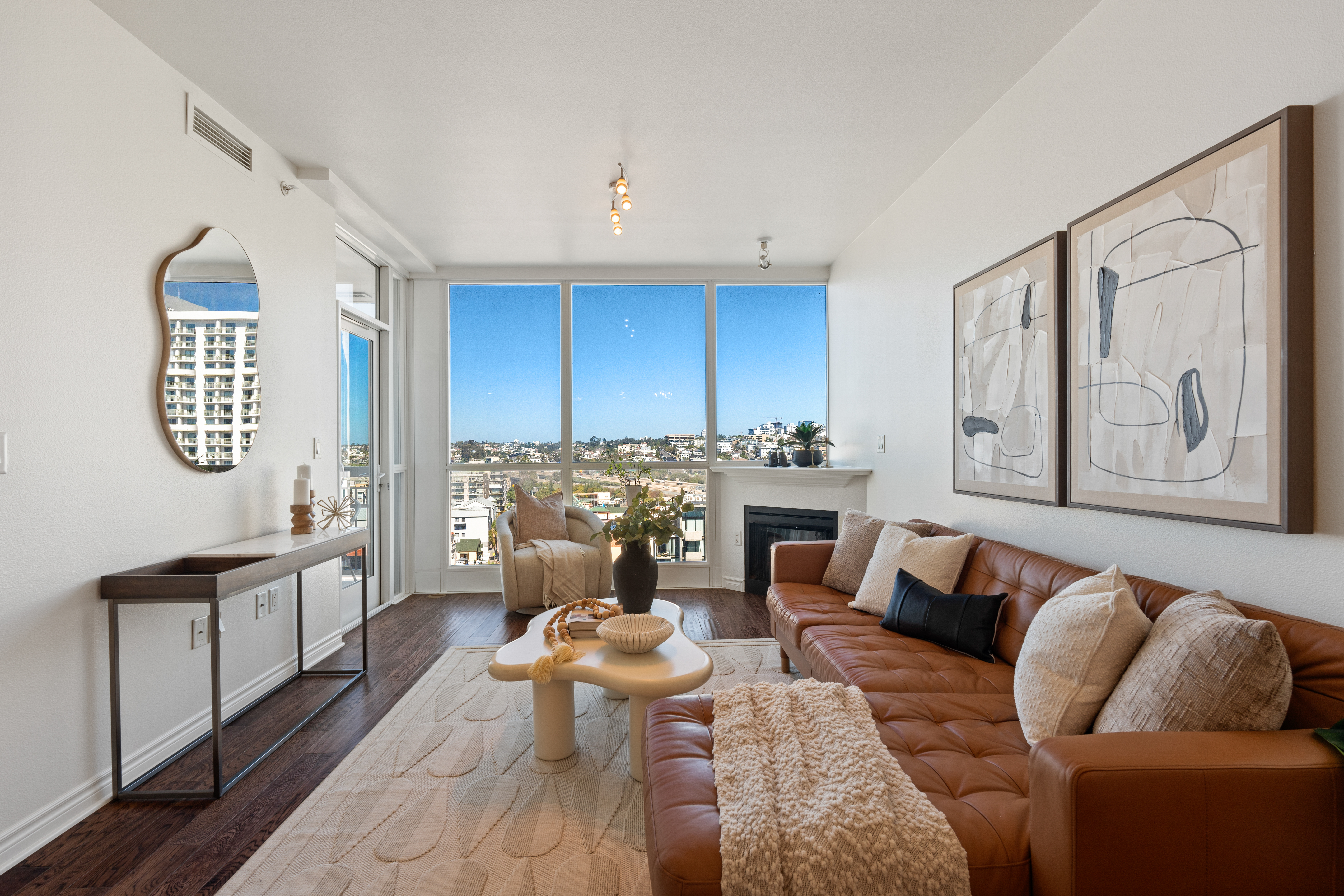 Enjoy the charm of Little Italy living in one of San Diego’s most desirable neighborhoods. La Vita Unit 1305 offers a rare balance of beautiful bay and neighborhood views while still feeling connected to the vibrant Little Italy community below. This north facing, light filled residence features floor to ceiling windows and an open floor plan. The immaculate one bedroom includes hardwood flooring throughout, updated light fixtures, in-unit washer/dryer, and a spacious walk-in pantry that also works beautifully for extra storage. The kitchen has been updated with countertops, backsplash, and stainless steel appliances. The living room features a cozy fireplace and opens to a spacious private covered balcony, perfect for sunset relaxation with captivating views of planes and boats in the bay.The bedroom suite offers two generous closets, ceiling fan, custom shades, and a dual access bathroom from both the bedroom and living area. La Vita amenities include a gym, heated pool and spa, billiards room, bicycle storage and courtyard w/BBQ areas. Located in the heart of Little Italy, this home places you just moments from some of San Diego’s best restaurants, cafes, boutiques, gelato shops, ArtWalk Festivals, Waterfront Park, and the beloved weekly Farmers Market. Embrace the Little Italy lifestyle with a touch of European charm!