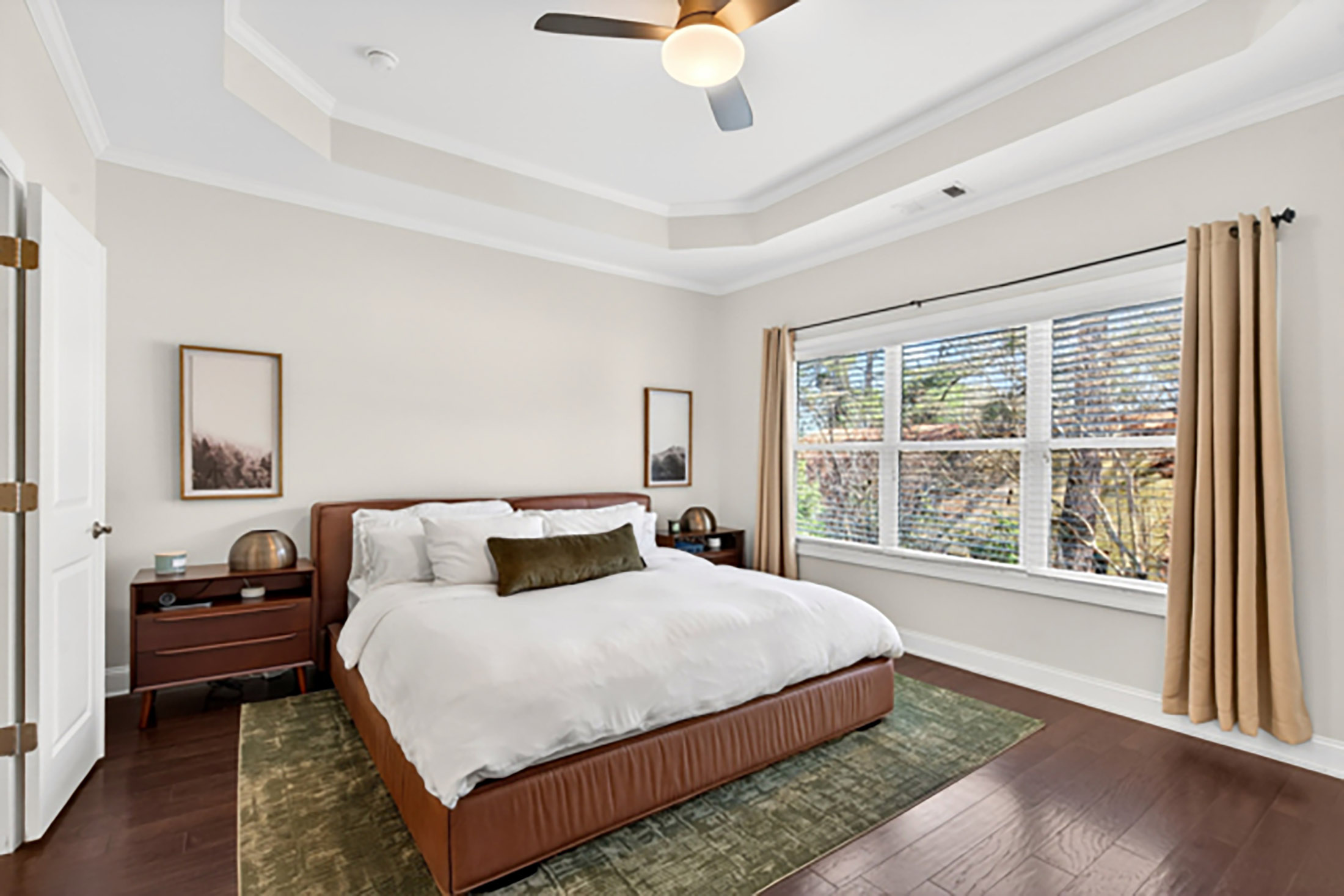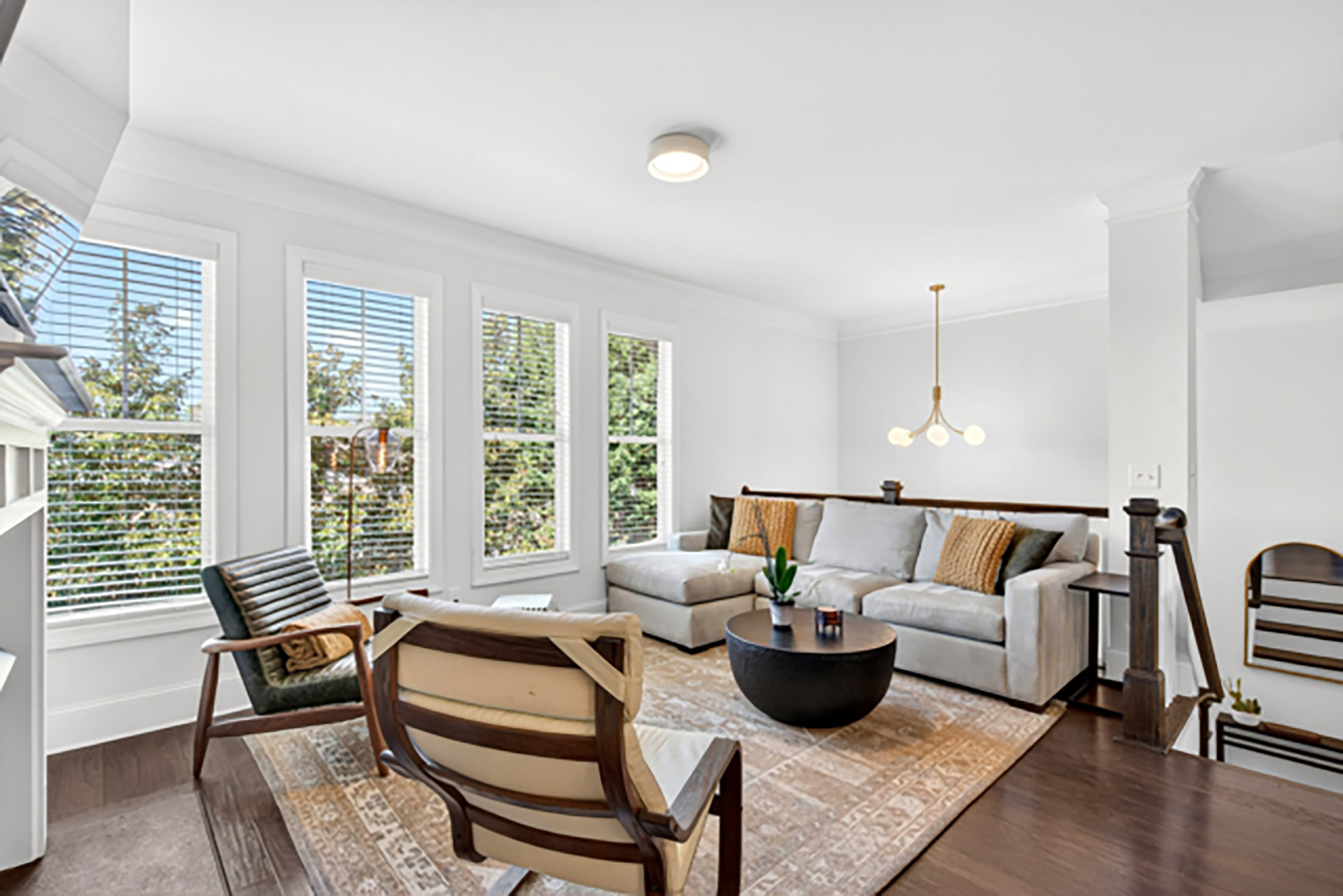 Welcome to 1261 Linden Court, where convenience, comfort, and style come together in the heart of the Toco Hills area—an ideal home base to enjoy the best of Atlanta living. Tucked within the intimate Linden Place community, this beautifully maintained three-level fee simple townhome is one of just 26 residences, offering a quiet retreat while keeping you close to everything the city has to offer. Step inside through the welcoming entry foyer and head upstairs to an open-concept main level designed for modern living and entertaining. Wide-plank hardwood floors, upgraded designer light fixtures throughout, a cozy gas fireplace with custom built-ins, and large front and rear windows create a bright, comfortable space perfect for relaxing after work or hosting friends. The kitchen is built for both everyday living and weekend gatherings, featuring 42-inch shaker cabinetry, stainless steel appliances, granite countertops, a designer backsplash, generous prep space, and an oversized island with seating for four—perfect for morning coffee, casual dinners, or a glass of wine while cooking. Just off the kitchen, step onto your private rear deck, complete with built-in bench seating and low-maintenance Trex decking—an ideal spot for grilling, evening cocktails, or enjoying Atlanta’s mild evenings. Upstairs, you’ll find two spacious primary suites, making the layout perfect for a couple, roommates, or hosting overnight guests. Each suite features double vanities and stylish finishes, while the larger suite includes a soaking tub, separate shower, and a customized walk-in closet, upgraded with a custom built-in organization system, offering exceptional storage and functionality. The second suite even provides distant views of the Midtown skyline. A conveniently located laundry room sits between both bedrooms for easy everyday living. On the ground level, a daylight bedroom with a full bath offers flexible space that works perfectly as a guest room, home office, gym, or creative studio—ideal for today’s work-from-home lifestyle. Additional highlights include a spacious two-car garage and a built-in storage bench and coat rack just inside the entry—perfect for keeping things organized on busy mornings. Located steps from Toco Hills shopping and dining and just minutes from Buckhead, Midtown, and Emory University, this home offers the perfect mix of neighborhood charm and city convenience. Stylish, low-maintenance living in one of Atlanta’s most convenient locations—1261 Linden Court is ready to welcome you home.