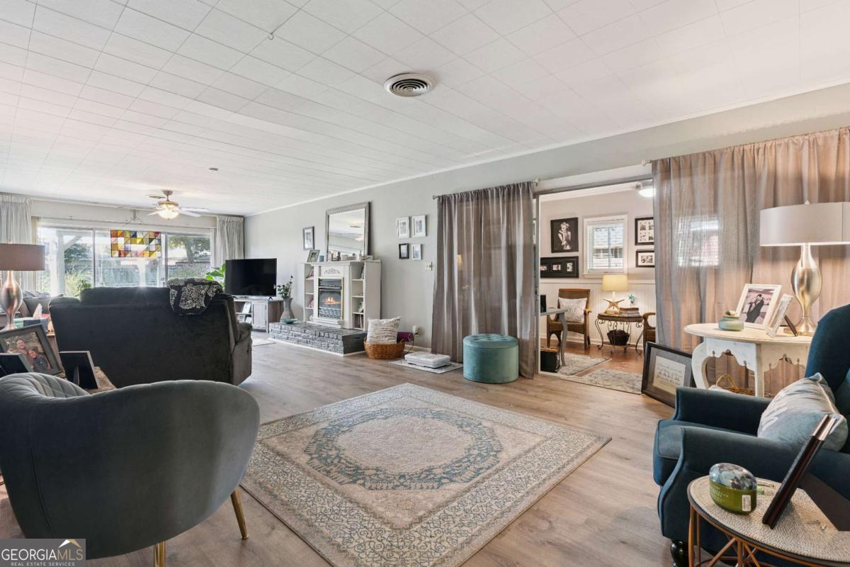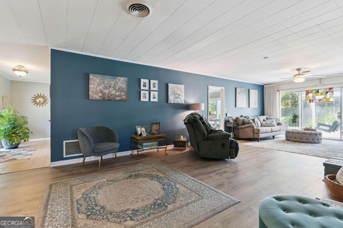Single-level all-brick home on a large lot just blocks from Brunswick Hospital and Goodyear Elementary School. Built in 1960, this home offers generous living space, multiple outdoor areas, and several major system updates completed in 2024 including new HVAC, full house replumb, and new water heater. The spacious floor plan includes an extra-large family room/den and a large kitchen with breakfast bar, oversized pantry, and eat-in area reminiscent of a classic country kitchen. New LVP flooring was installed in the kitchen, dining area, and family room in 2024. Full wall sliding glass doors in both the dining area and family room provide abundant natural light and open to the fully fenced backyard. The primary suite features three closets, a vintage ensuite bath, and a private patio retreat. A covered patio between the home and carport creates a shaded outdoor gathering space and includes an attached workroom ideal for hobbies, storage, or projects. Additional features include two storage sheds, a pergola with porch swing, large garden areas, and a flexible enclosed carport currently used as a cozy office space. One covered carport remains for parking. Located in AE9 flood zone. Seller's flood insurance is $847 per year.