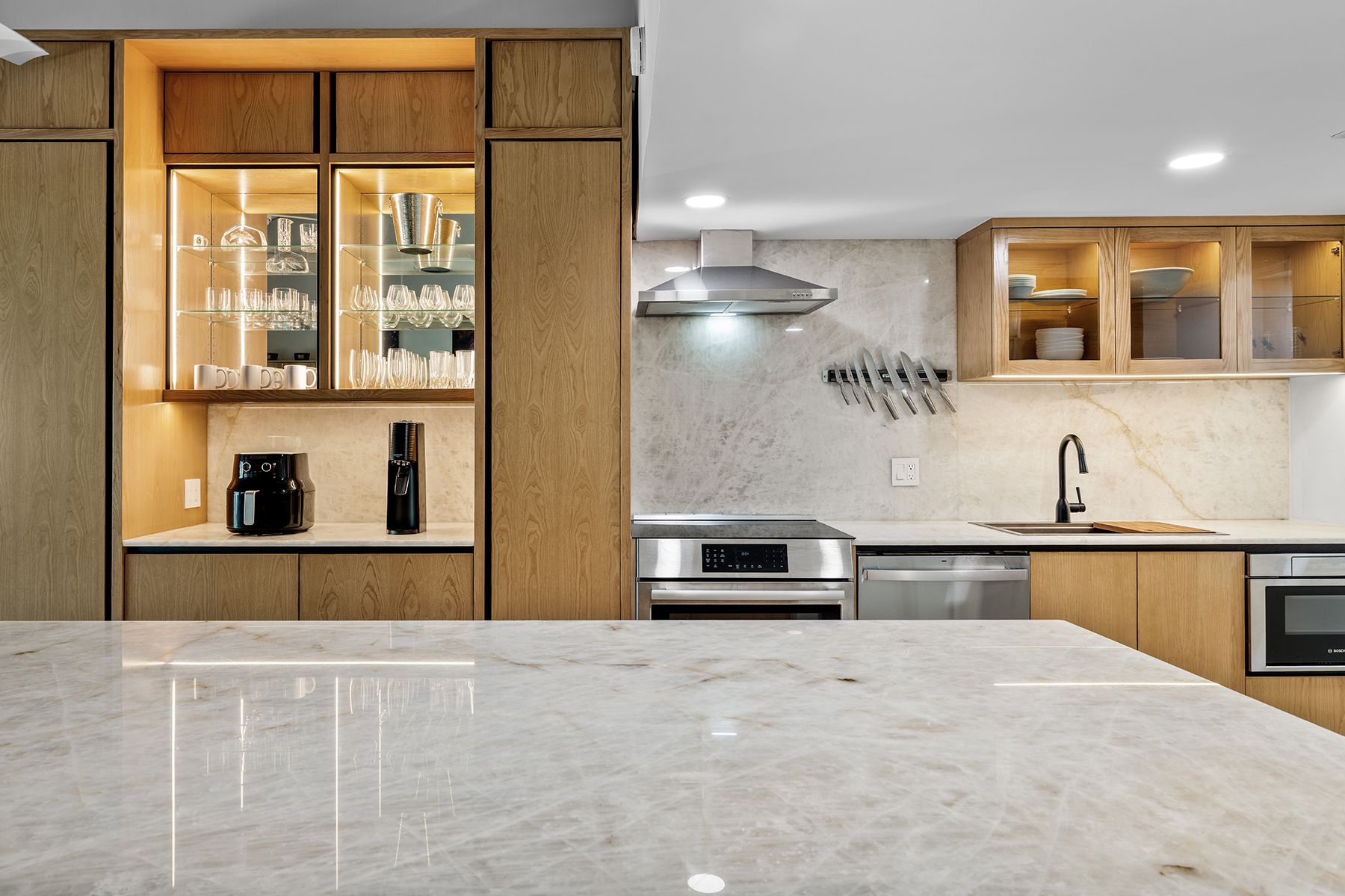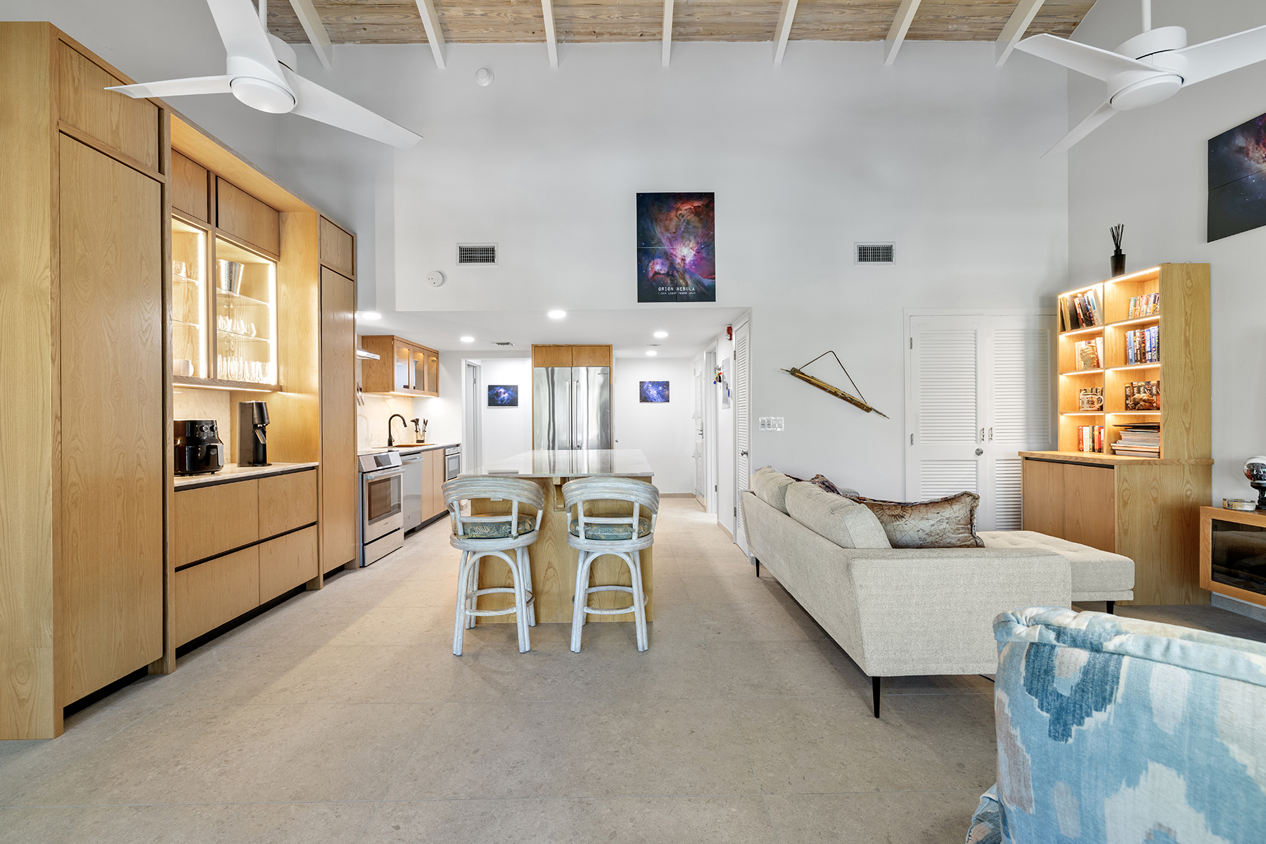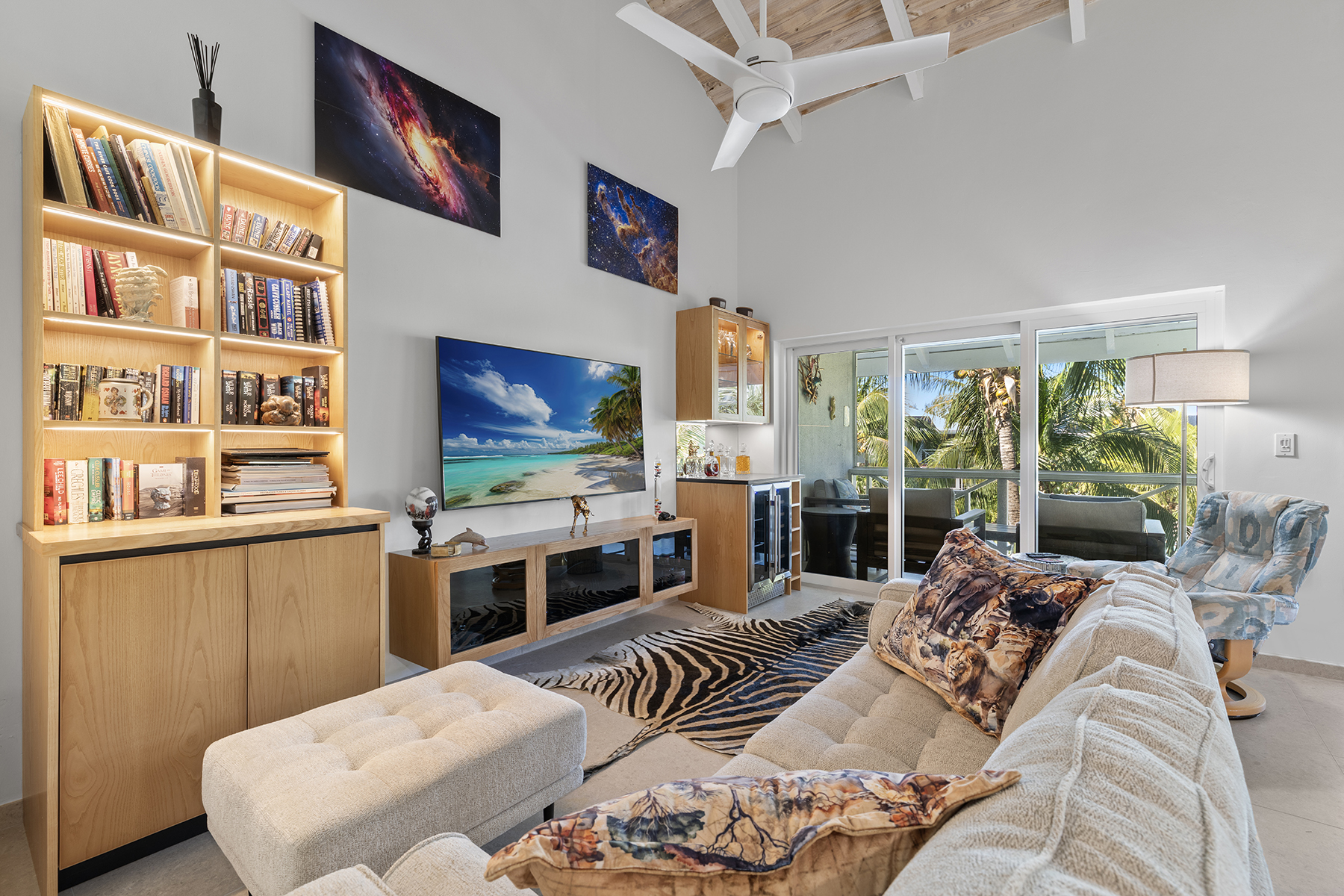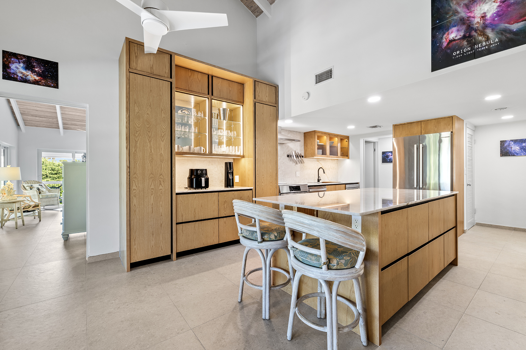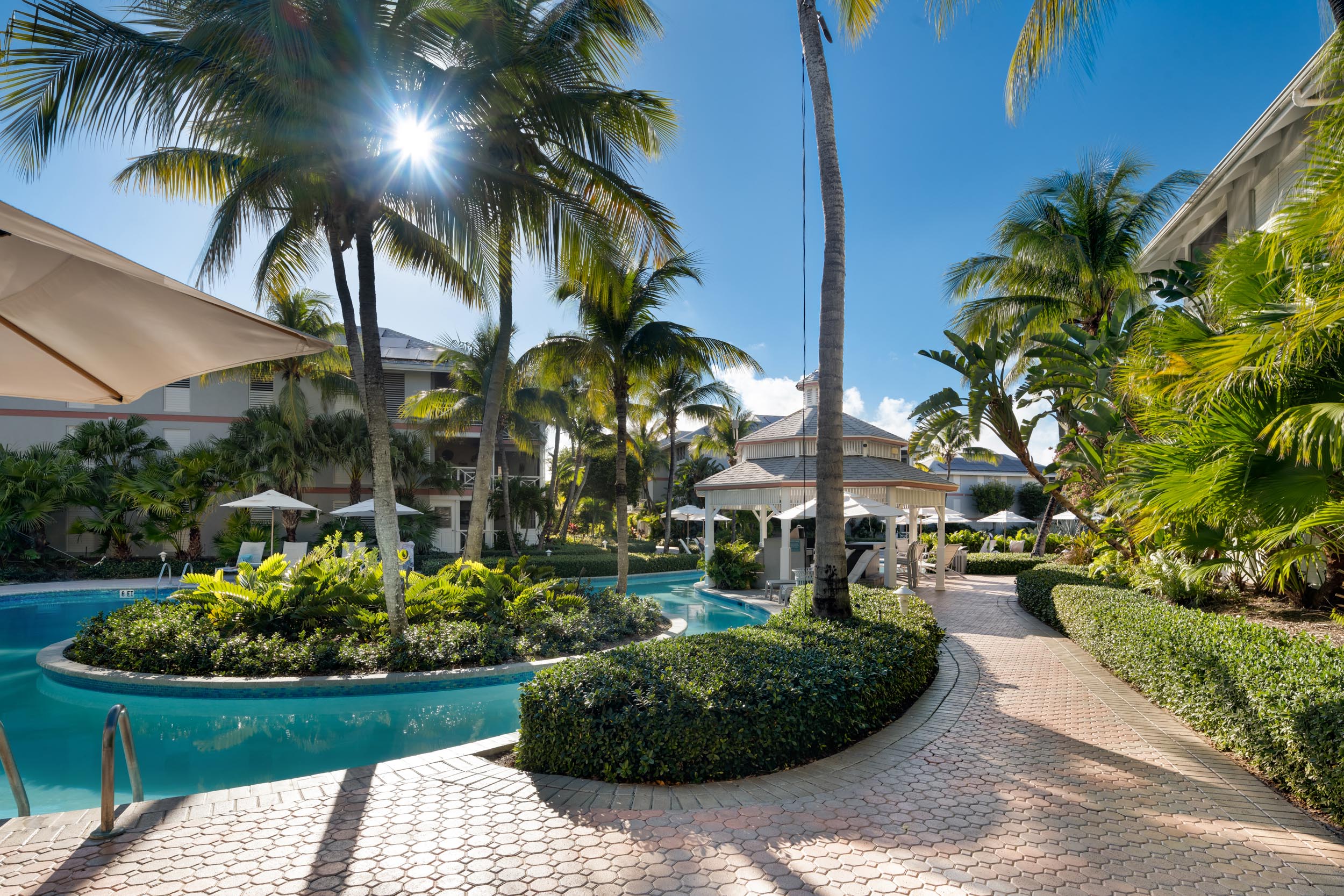 This beautifully renovated 2-bedroom, 3-bathroom pool view condo located on the top floor at Ocean Club East, offers spacious living in one of the most desirable locations on Grace Bay Beach. Overlooking the resort’s lush tropical landscaping and pool area, this 1,646 s.f. condo is just steps from the sun and sand of Grace Bay Beach and The Royal Turks and Caicos Golf Club a mere 5 minute walk with your clubs. The interior has been recently upgraded throughout the main living area, kitchen and bathrooms, creating a fresh and modern interior. The updated kitchen features beautiful quartz countertops and backsplash, stylish wood cabinetry and brand new Bosch appliances. The central island provides work space functionality, extra storage and a stylish focal point for entertaining or casual dining. The main living area is enhanced by 15’ open rafter vaulted ceilings, creating an open, airy atmosphere filled with natural light. A large wrap-around screened balcony extends the living space outdoors providing a relaxed setting with garden and pool views, outdoor dining and gentle island breezes. The resort enjoys its own on-site restaurant The Cabana Bar and Grill and is a quick walk to other popular dining destinations such as Opus Wine Bar & Grill, Ricky’s Flamingo Cafe and #19 Bar and Restaurant at the RTCGC. The Grace Bay tourist zone and amenities are only a 3 minute drive along Grace Bay Road which contributes to Ocean Club’s loyal guests returning year after year. This turnkey condo is currently a dedicated residence and presents an immediate opportunity for those seeking a vacation home and vacation rental investment offering modern upgrades, generous indoor-outdoor living, and direct access to the vibrant Grace Bay lifestyle.