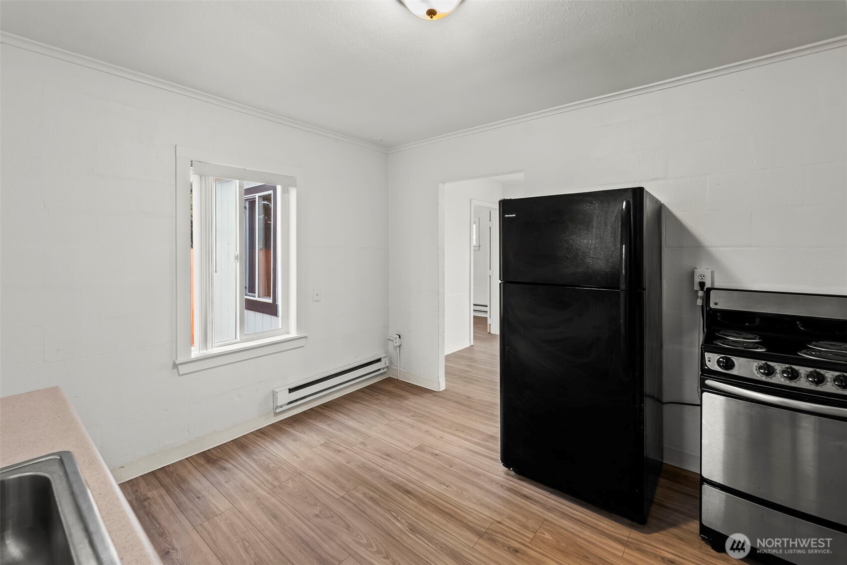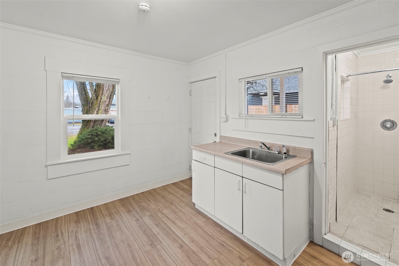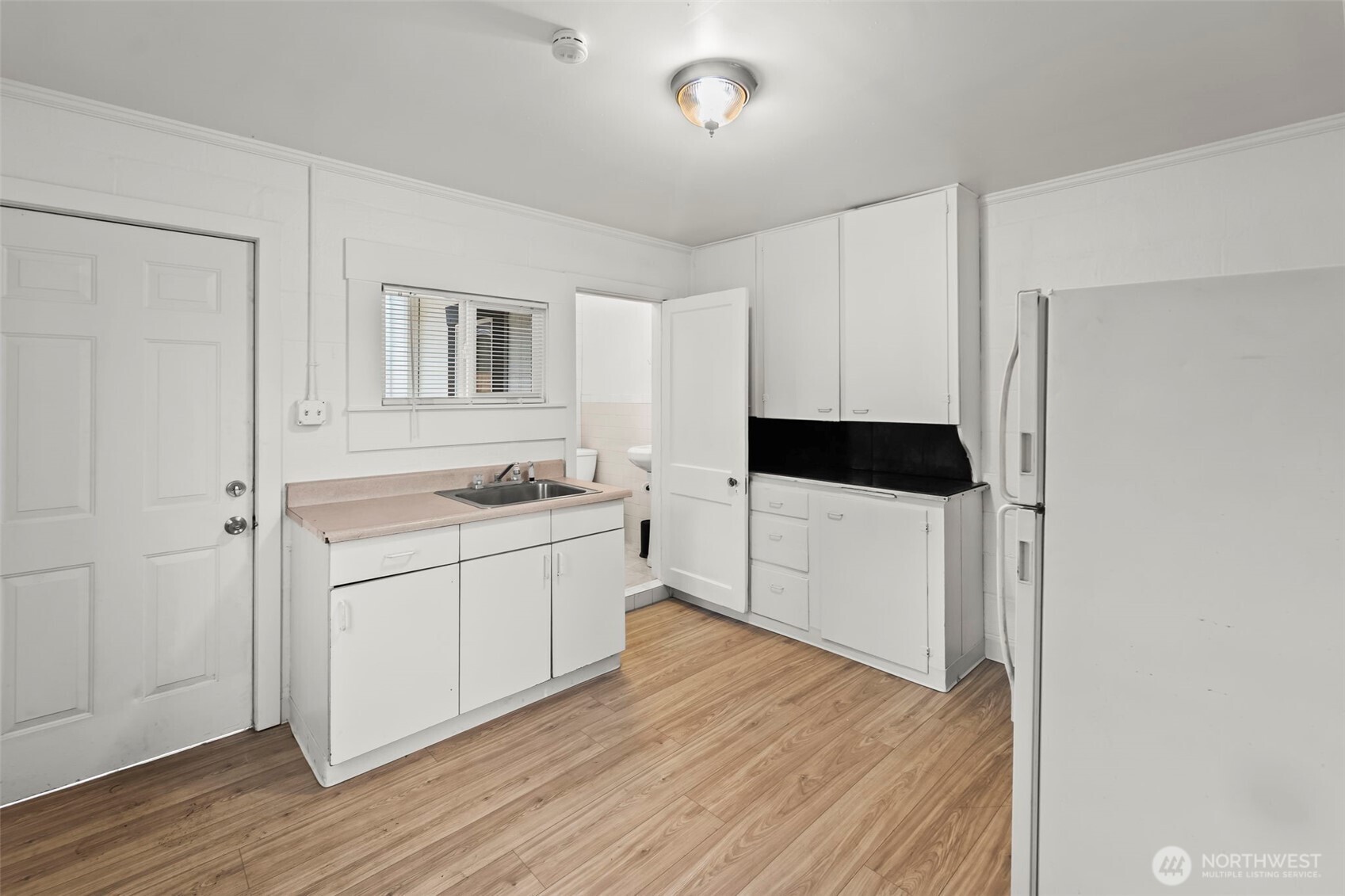 Great investment opportunity in a convenient Tacoma location! This property lives as a single-story duplex, offering two separate units with functional layouts and strong rental potential. Unit 1 features a spacious bedroom, separate kitchen area, and a bath within 398 sq ft. Unit 2 lives as a comfortable one-bedroom offering 519 sq ft, complete with its own kitchen and bath. Both units share access to a private laundry room, adding everyday convenience for tenants or owner-occupants. The property also includes two designated parking spaces and a partially fenced yard area. Recently refreshed with updated paint and flooring throughout, making it a turn-key opportunity for investors or buyers looking to offset their mortgage with rental income. Ideally located just minutes from Hwy 512, Pacific Lutheran University (PLU), and JBLM, providing easy access to commuting, shopping, and local amenities.