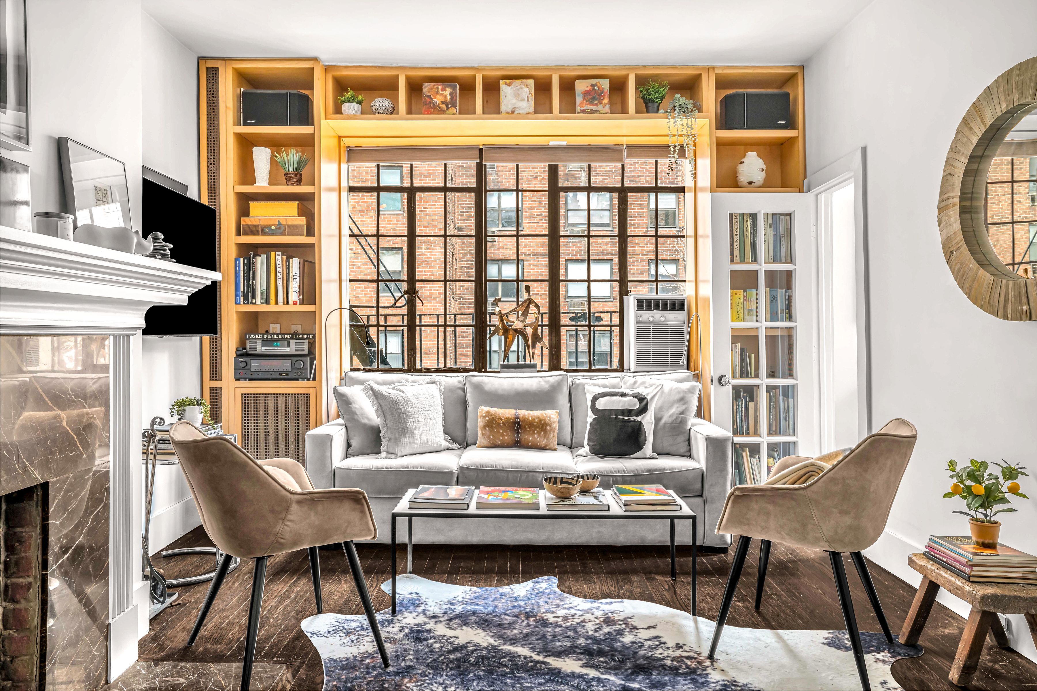 This two-bedroom duplex offers a rare opportunity to own a piece of pre-war New York history in the iconic Tudor City enclave of Midtown Manhattan. The residence exudes timeless architectural character, including gracious proportions, soaring 9-foot ceilings, and south-facing casement portrait windows. At the heart of this exceptional home are two wood-burning fireplaces, one on each level, that lend a warmth and romance rarely found in Manhattan living. The charming living space with custom-built bookshelves neighbors an alcove office with privacy and a western view. Evenings spent by the fire feel worlds away from the city’s bustle, yet close to Midtown’s best dining, culture, and transit systems. The chef’s kitchen has been thoughtfully designed to marry contemporary functionality with classic style, outfitted with professional appliances, fine finishes, and generous counter space that will delight the most discerning home cook, all without sacrificing the pre-war soul of the home. Storage is never a concern with an abundance of closets throughout both floors. The duplex layout provides a natural separation between living and sleeping spaces, making it ideal for both entertaining and everyday comfort. Two floors, two bedrooms, two bathrooms, two fireplaces. The coop’s courtyard overlooks Tudor City Park with its old growth trees and flower beds currently awaiting the return of spring. The Park is a focal point for the community and is actively enjoyed by local residents daily 7AM – 10PM. In 1988 the Landmarks Preservation Commission designated the park in the National Register of Historic Places. Whether you are drawn to Tudor City for its storybook architecture, tree-lined private parks, or unbeatable location, this home delivers an unparalleled blend of historic charm and modern refinement that is simply not to be missed. - Private storage included - Bike room - 70% financing allowed - No flip tax - Pieds-a-terre allowed with Board Approval - Sublets allowed with Board Approval - Pet friendly