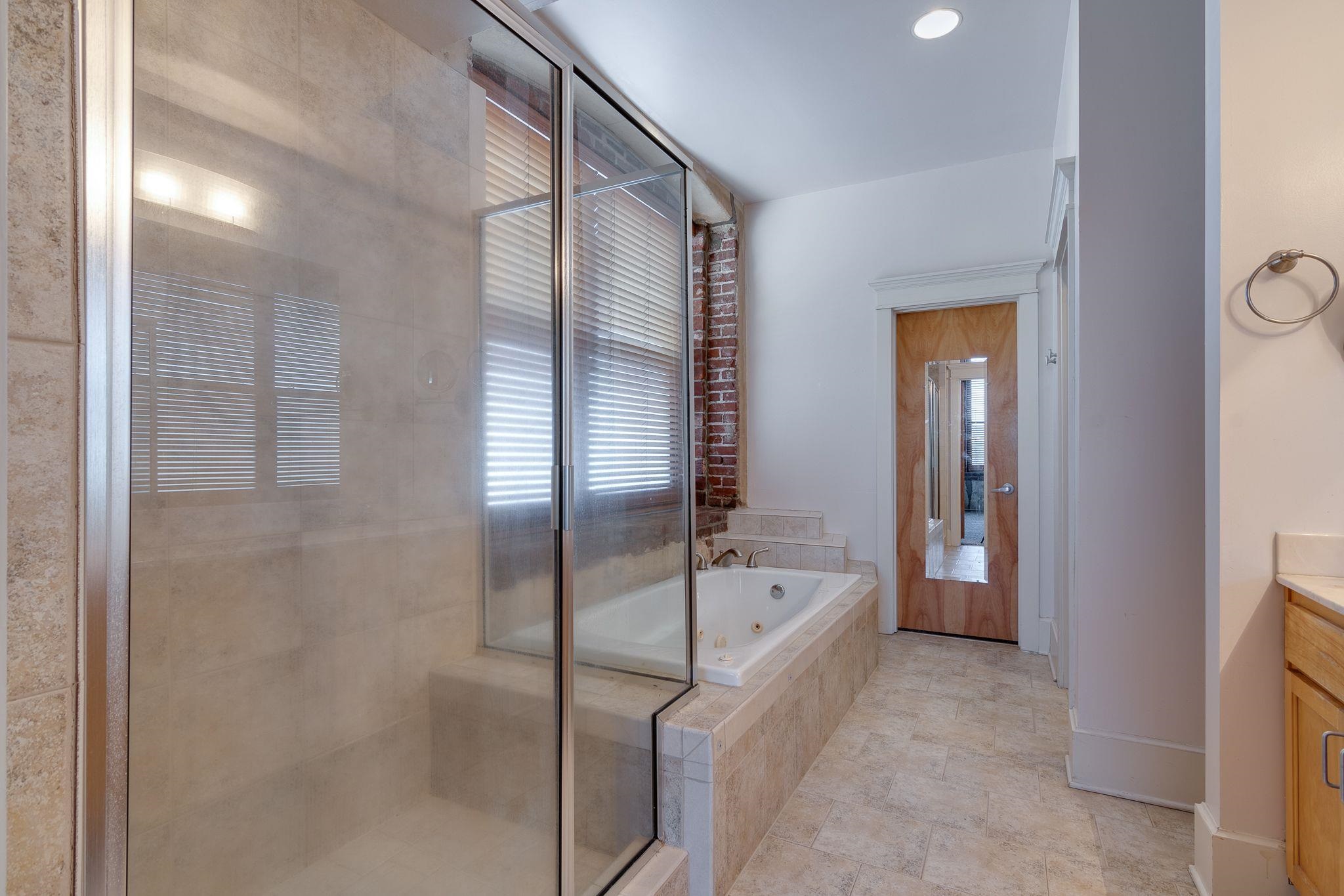 Fantastic skyline views from the den and primary bedroom in this urban-style condo located in a boutique building in South Main Arts District. This light-filled unit features exposed brick and beams and soaring ceilings. Stainless kitchen with gas cooking, full pantry, and ample storage. Spacious primary suite offers a luxury bath with 6' whirlpool tub, separate shower, dual sinks, and walk-in closet. Linen closets and side-by-side washer and dryer included. Two gated parking spaces and on-site storage included. Enjoy a walkable location near dining, nightlife, the farmers market, riverfront, and outdoor activities including biking and running along the river. Perfect blend of historic character and modern comfort in a vibrant urban setting with easy access to entertainment, shopping, and downtown amenities. Minimum 1-year lease required. Security deposit equal to one month's rent. Rental application fee applies. Required credit and background approval required.