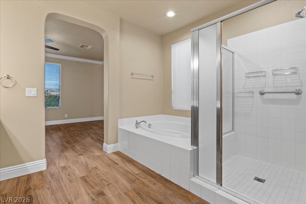 Excellent opportunity for buyers seeking quality and location . Beautiful Single-Story Home in a Gated Community This 3-bedroom, 2.5-bathroom home with a den (easily to convert into a 4th bedroom) offers a comfortable, functional layout with new tile flooring throughout, 6" baseboards, and updated lighting. The primary suite is spacious and includes a walk-in closet, dual sinks, and a separate tub and shower. The main living area features a fireplace and opens to an enclosed courtyard, creating a private outdoor space for relaxing or entertaining. The kitchen includes granite countertops and plenty of cabinet space. A 3-car tandem garage offers extra storage and includes an EV-compatible charging outlet. Located in a gated community next to Nature Park, with shopping, dining, and parks nearby, this home offers an easy, convenient lifestyle in a great location.