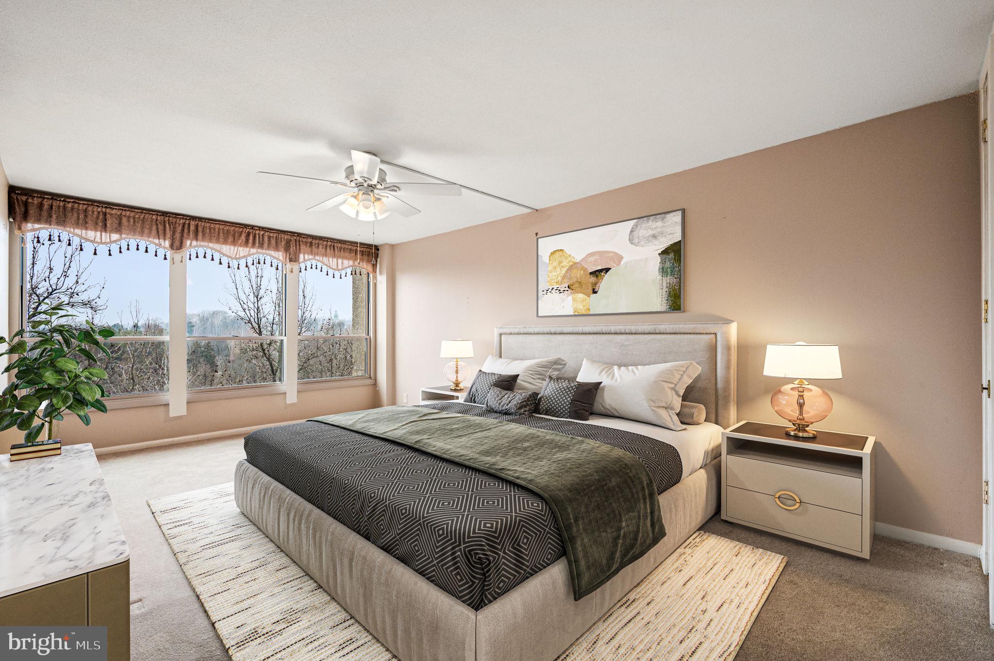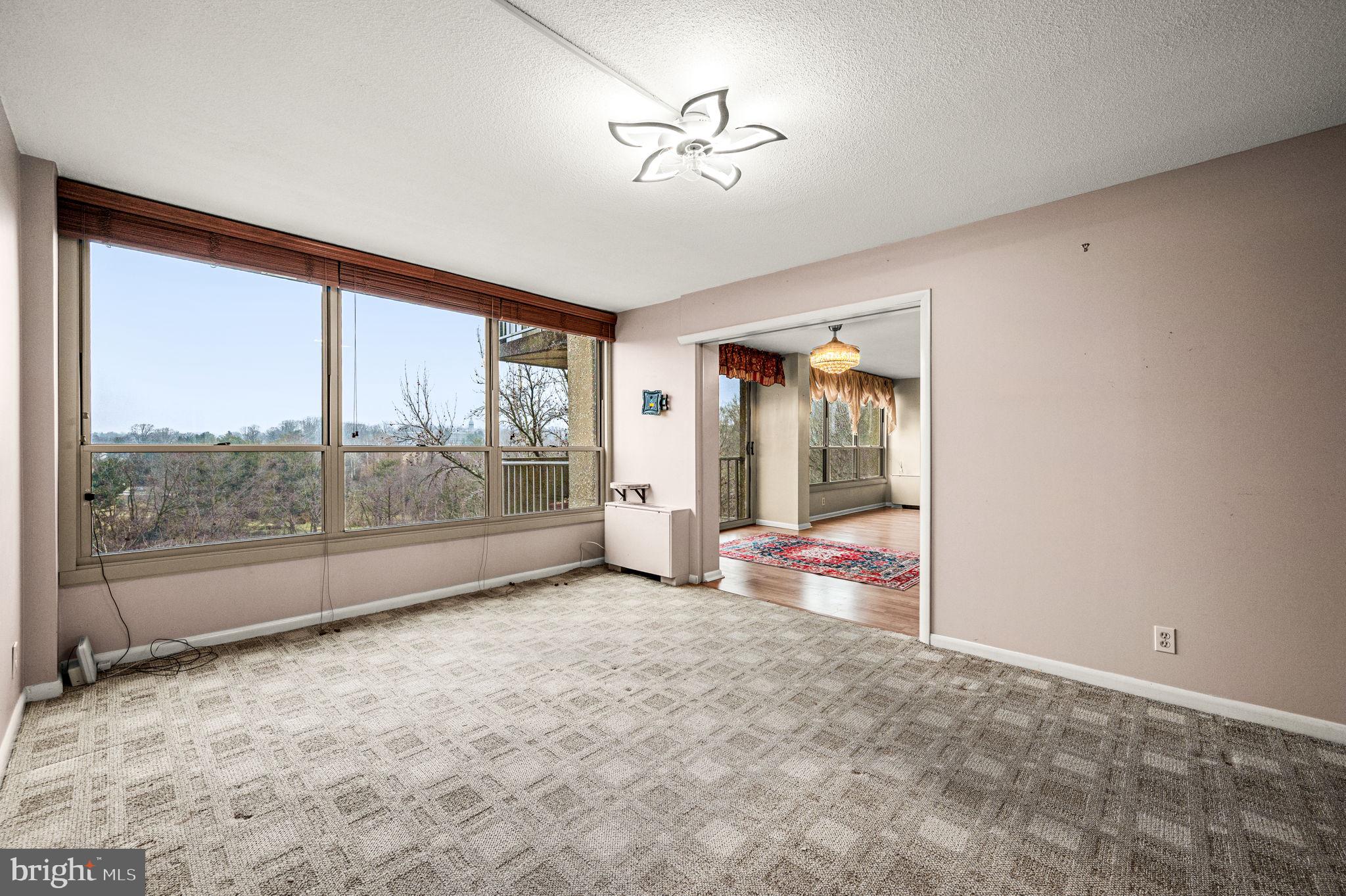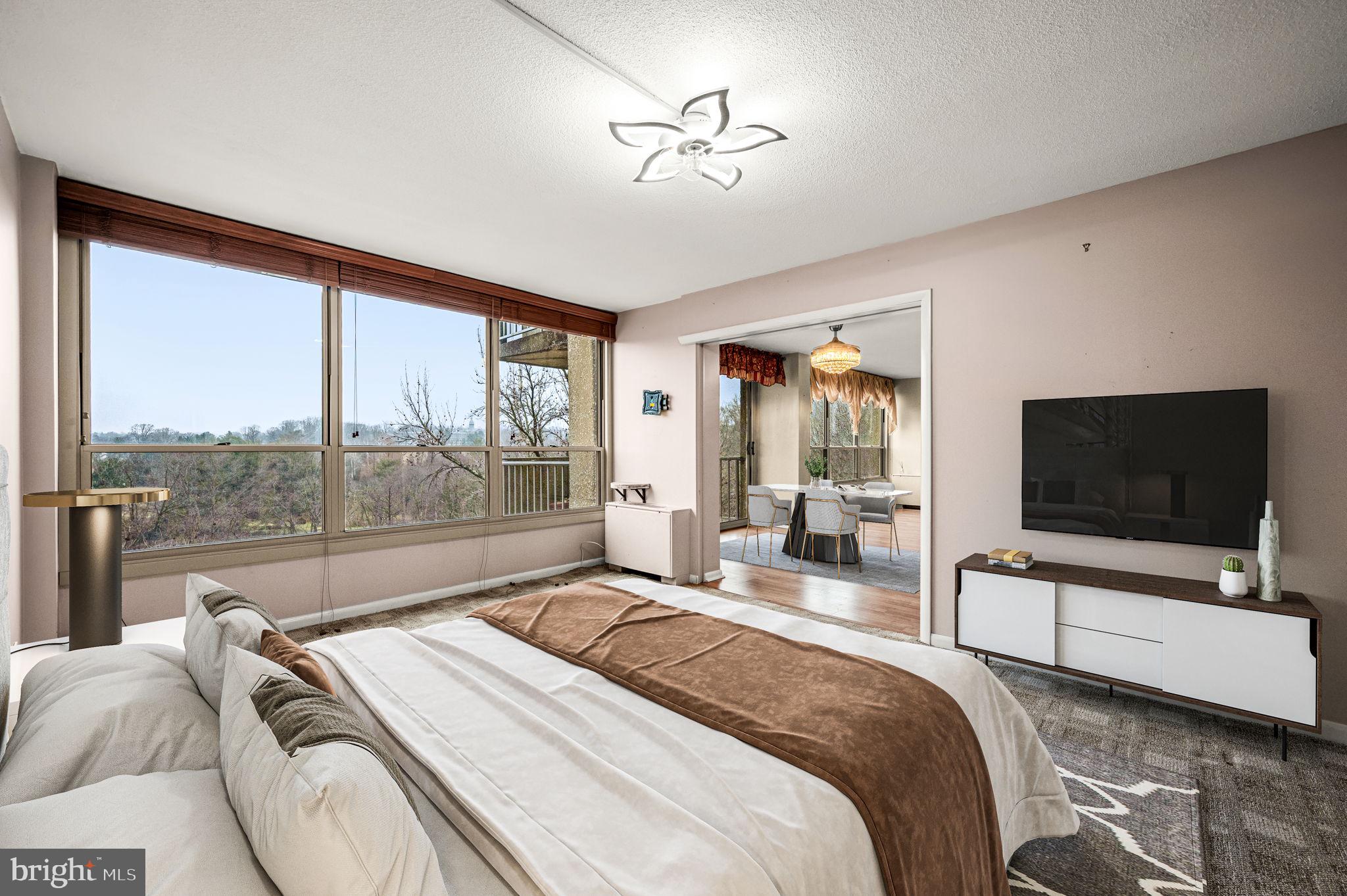 Experience the ease and convenience of condominium living in this beautifully maintained two-bedroom, two-bath residence at Green Hill. Located on the 9th floor and offering approximately 1,222 square feet, this light-filled home welcomes you through a gracious foyer into a spacious living room where a wall of windows invites abundant natural light and showcases expansive views. The open layout flows seamlessly into the dining area, where recently installed ceiling fan/light fixtures enhance both spaces and create an inviting setting for everyday living or entertaining. Sliding glass doors lead to a tiled private balcony, an ideal spot to relax and enjoy the surrounding scenery. Just beyond, the well-appointed kitchen features a stone backsplash, generous counter space, and a practical pantry for everyday storage. The thoughtfully designed floor plan continues with an updated hall bathroom featuring a tiled tub and shower with glass doors. The second bedroom offers flexibility for a variety of uses, including a guest room, home office, or creative space, and is connected to the dining area by a large pocket door for added versatility. This portion of the home also includes a sizable walk-in storage room, coat closet, and a dedicated laundry area with a stacked washer and dryer, along with recently replaced real wood closet doors that add warmth and character. On the opposite side of the residence, the expansive primary suite provides a comfortable retreat, complete with large windows dressed in custom blackout curtains, a spacious customizable closet with adjustable shelving and hanging systems, and an additional linen closet. The renovated en suite bathroom features a tiled walk-in shower with glass doors for a clean, modern finish. Residents of Green Hill Condominium enjoy a wide range of amenities, including a doorman, fitness center, outdoor & indoor pools, tennis courts, community shuttle service, and a reservable conference and event space known as the Indian Creek Room, ideal for meetings or private gatherings. The monthly condominium fee includes all utilities except cable and internet/phone, adding to the ease of ownership. Ideally situated along the Main Line, the community offers convenient access to shopping, dining, parks, and major roadways, making travel to nearby areas such as Philadelphia simple and efficient. This welcoming residence combines comfortable interior space, practical features, and a location that offers both convenience and connection.