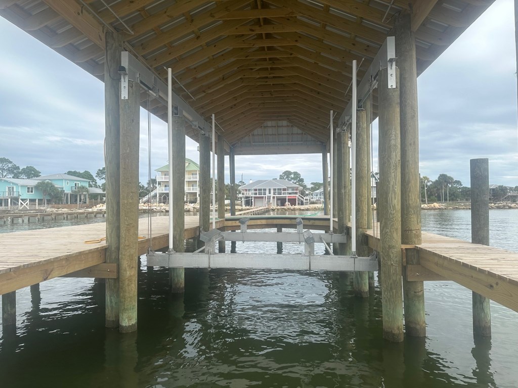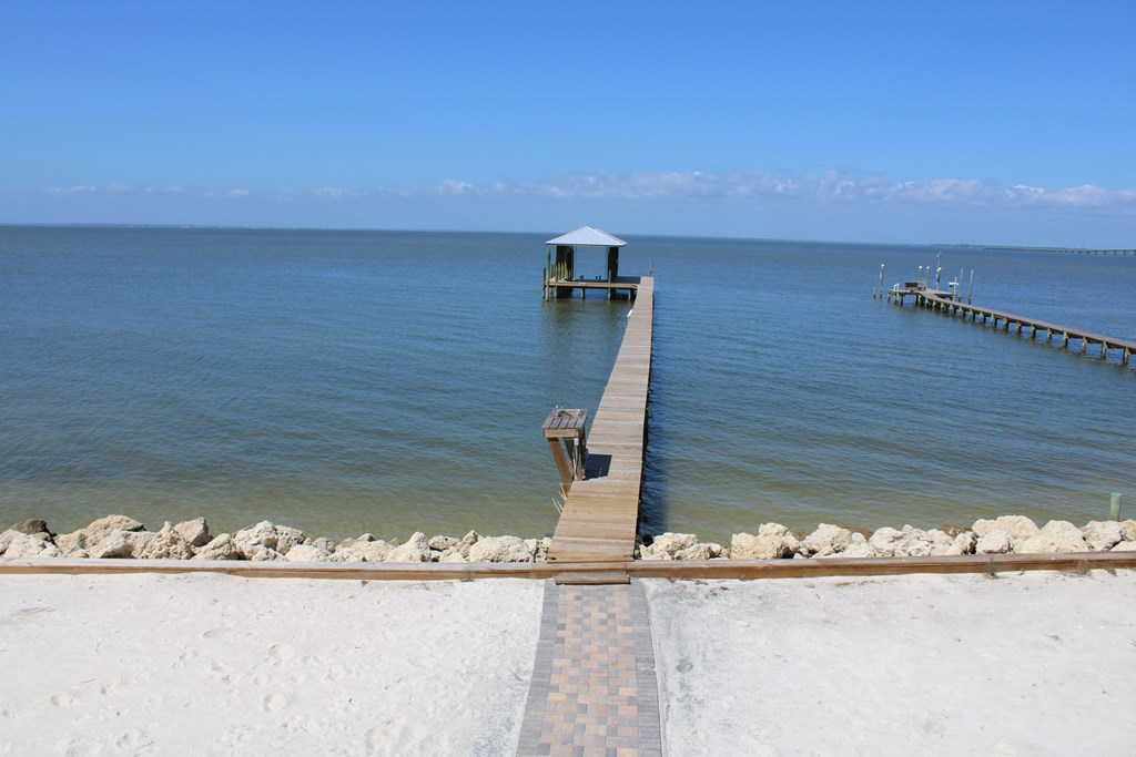 Enjoy breathtaking sunsets over the Bay from this well- maintained waterfront home located in a quiet, golf-cart-friendly neighborhood on St. George Island. Perfect for a family fishing retreat, full-time residence, or investment property, this home features a private dock with covered 15,000lb boat lift and and a fish cleaning station, making it ideal for anglers and boaters alike. A durable vinyl seawall with rip rap protects the shoreline, while your own sandy beach area offers the perfect place to relax and enjoy the water. Multiple outdoor living spaces - including two sun decks, and a large enclosed porch with window AC overlooking the bay. Inside, the home offers comfortable single-level living with granite countertops, tile flooring in the main living areas, and beautifully refinished pine floors in the bedrooms. The split-bedroom floor plan provides privacy, and the spacious primary suite features an en-suite bath and cedar-lined walk-in closet. The master and one guest bedroom open to sun porches with water views. Additional features include cedar-lined closets, a handy cargo lift, and two large storage areas underneath the home as parking space for a golf cart or small boat. Located just a short walk to beach access at 7th Street, this well-cared-for property has never been a rental but offers excellent potential as a vacation rental investment.
