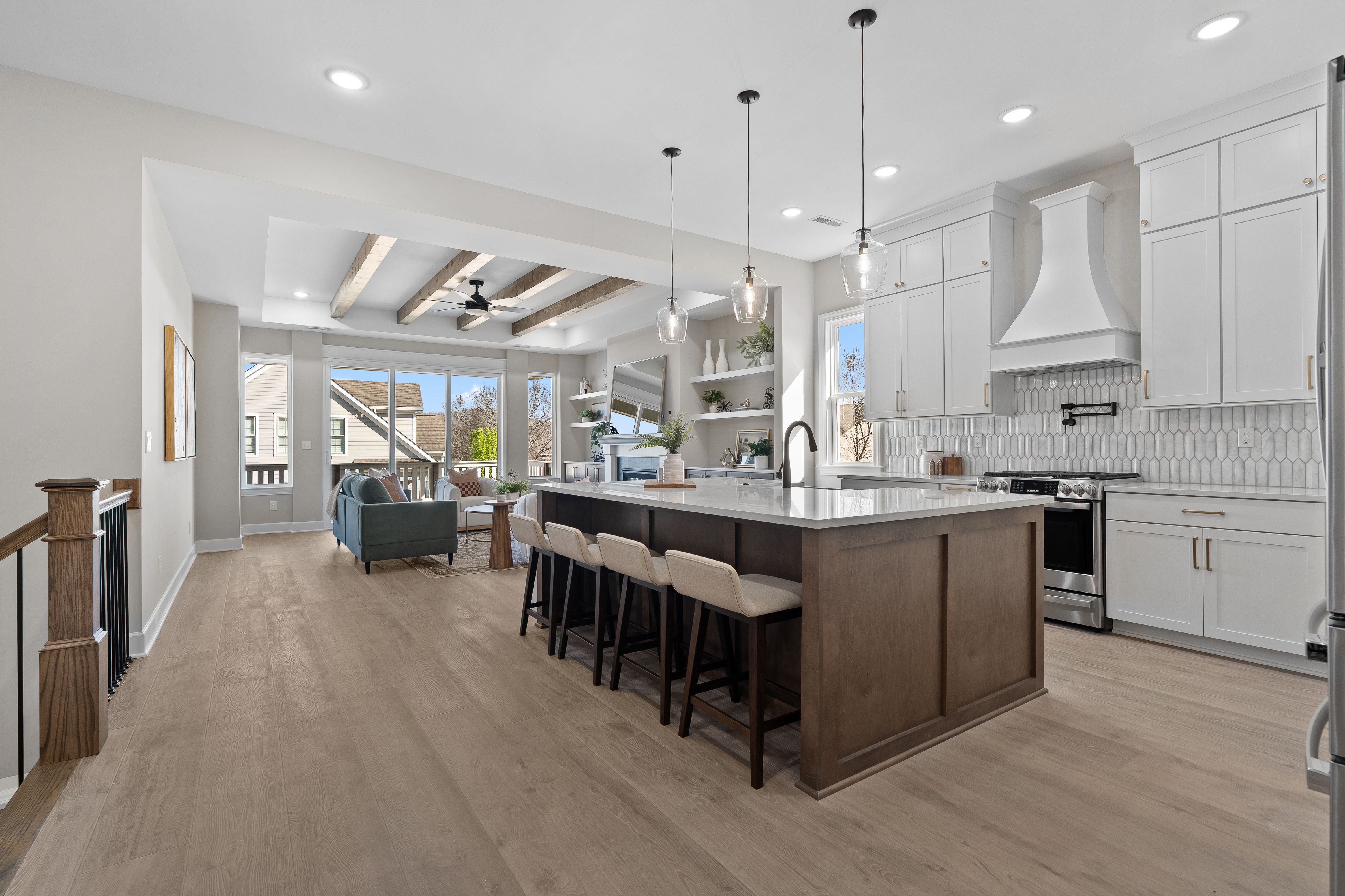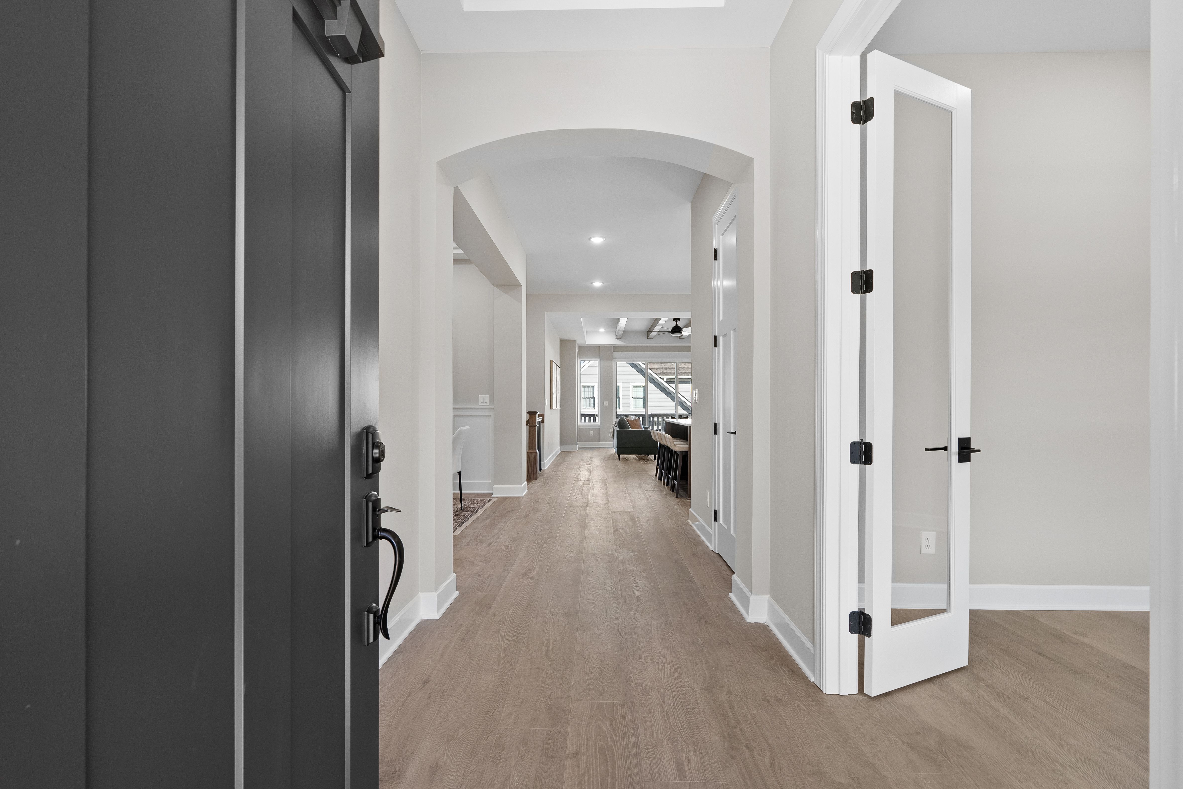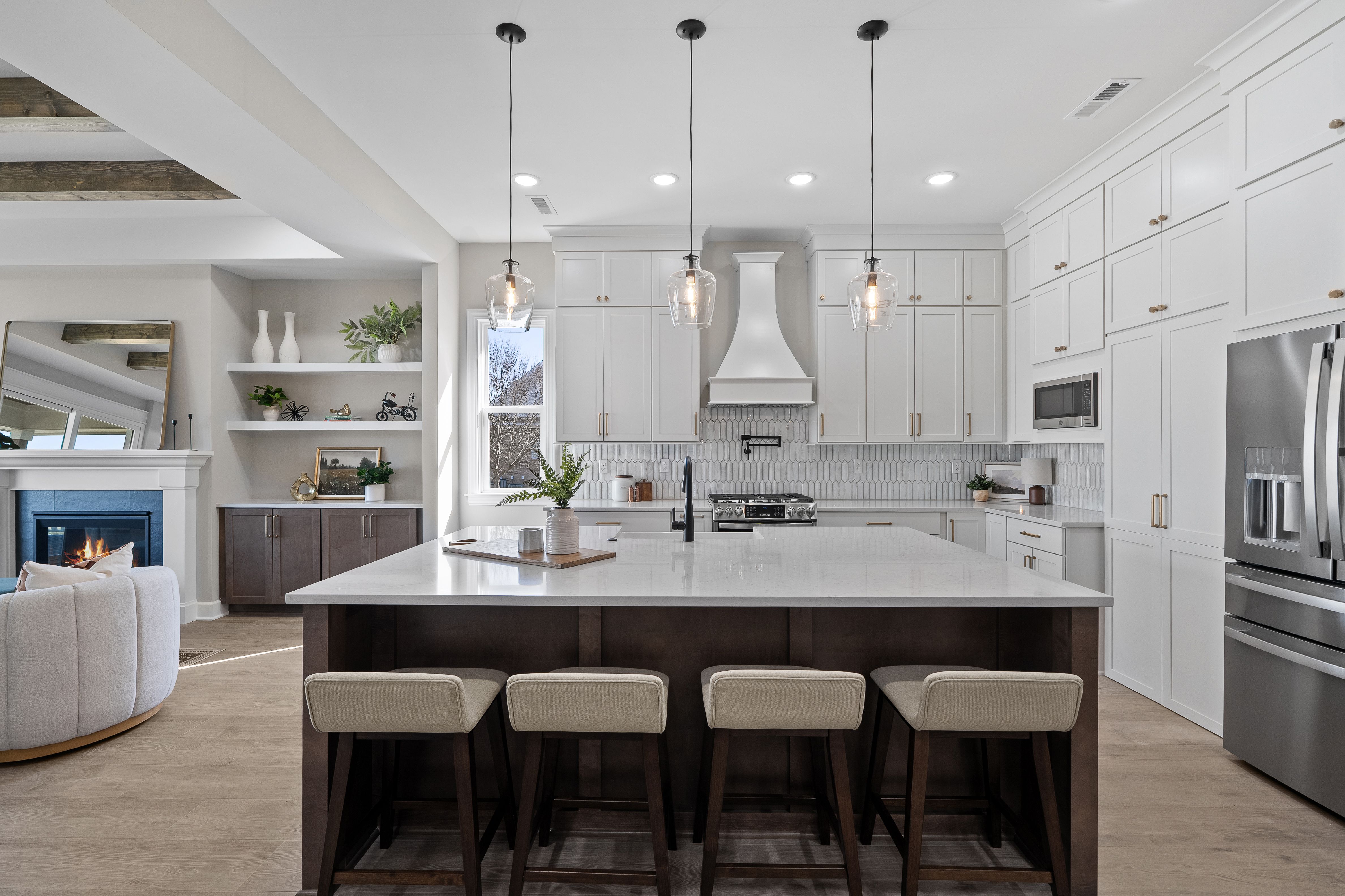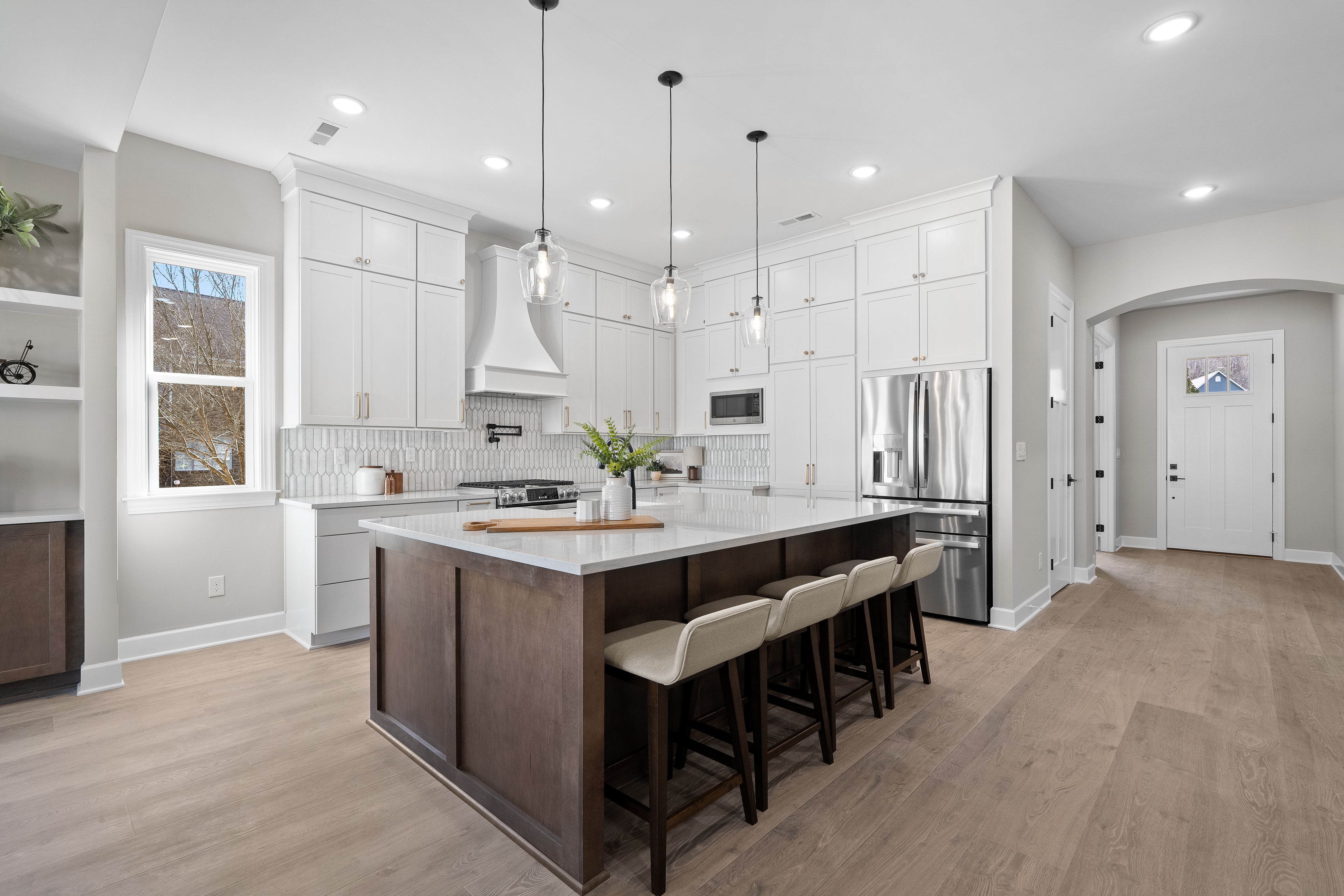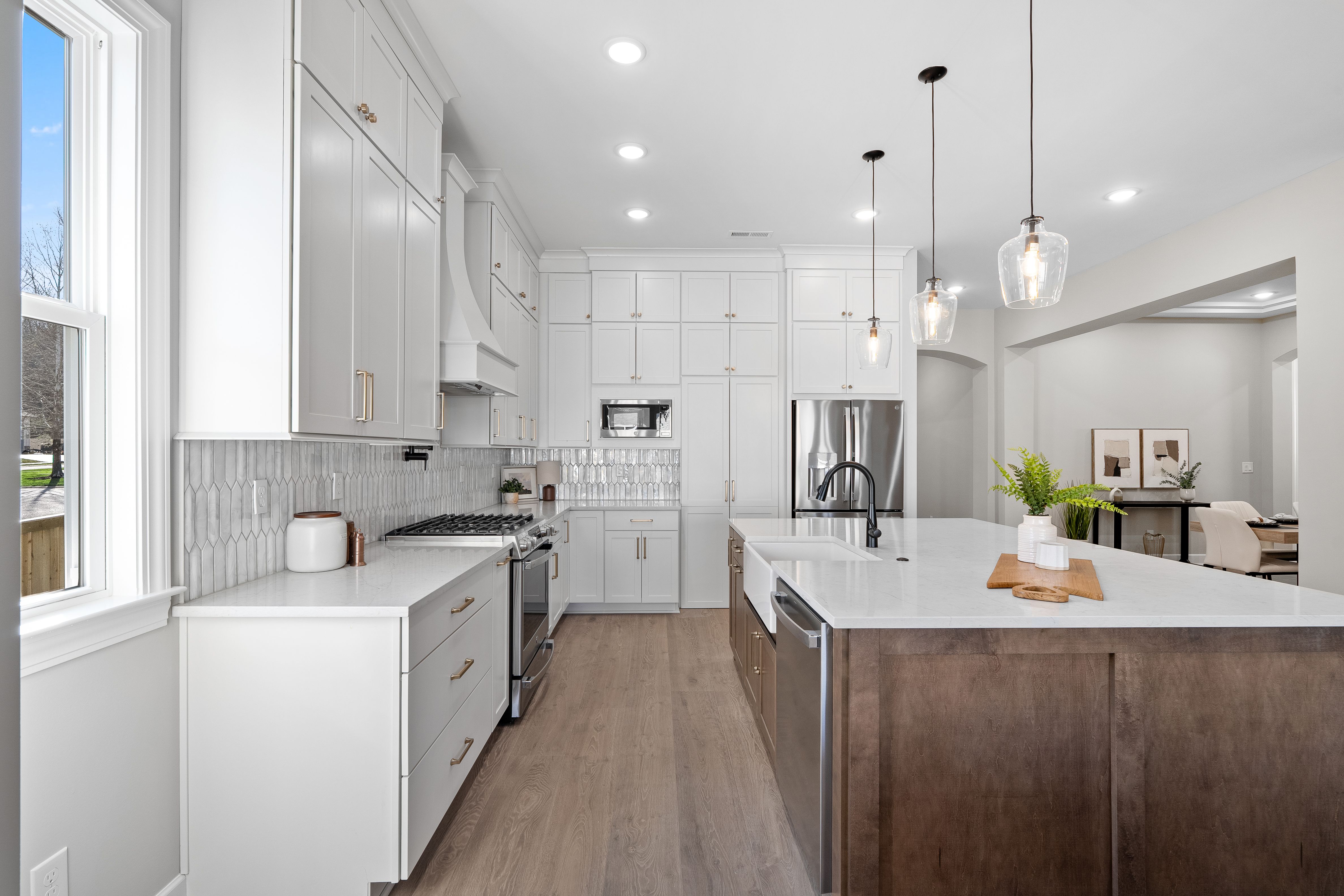 The Willow floor plan is a stunning two-story walkout home offering a perfect blend of modern elegance and functional living. This home features a main floor master suite and designer touches throughout. As you step into the grand foyer, you'll be immediately captivated by the abundance of natural light pouring in from the expansive windows and high ceilings. With 10-foot ceilings and 8-foot doors on the main level, the home feels open and airy throughout. The gourmet kitchen is a chef's dream, offering a large island with soft-close wood cabinets, hidden pantry, pot filler, spice rack, built-in artisan range hood, GE Profile appliances (including gas stove) as well as many other features that make cooking both stylish and functional. Designer touches are found throughout the home including floor to ceiling fireplace, 5 1/4 inch baseboards, 4-way wrap designer window trim with stool and apron, and multiple custom ceiling treatments. The main level laundry features a wall of customer cabinets, quartz countertops and a sink. The premium bathrooms provide a true spa-like experience. The master suite features a customer tiled shower with linear drain and frameless glass doors, dual vanities with designer-framed mirrors and freestanding soaking tub. This floor plan features two porches and a generously sized balcony off of the great room; perfect for taking in the views. With a wood ceiling, Timbertech decking and ceiling fan, it's ideal for relaxing after a long day. The large, flat, fenced in rear yard provides an amazing setting for creating memories with family and friends. This home is equipped with smart technology for added convenience and comfort. The tankless gas water heater ensures the luxury of unlimited hot water.