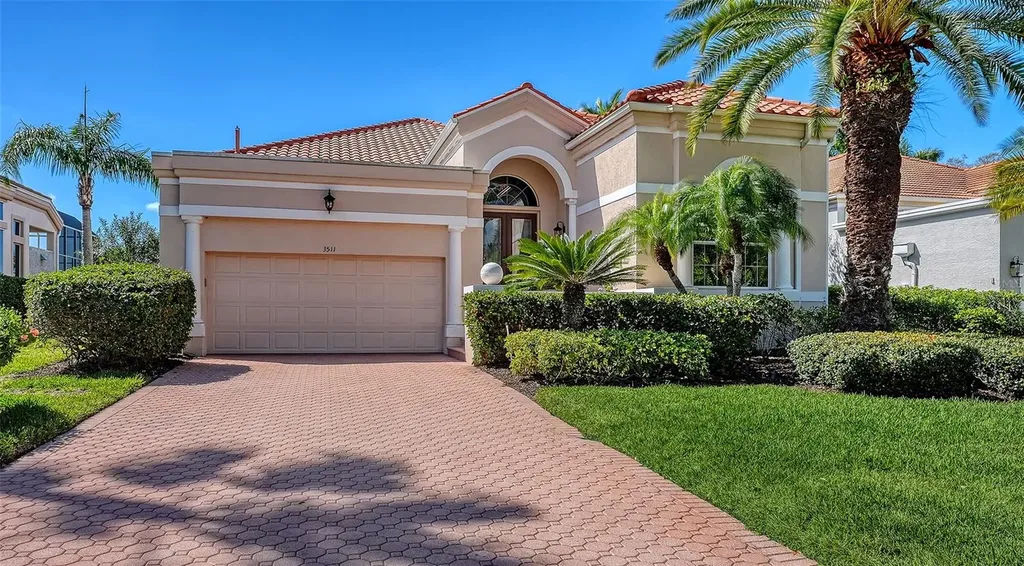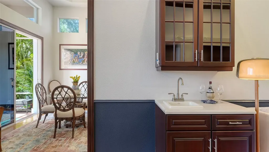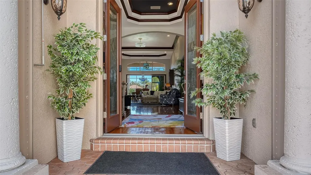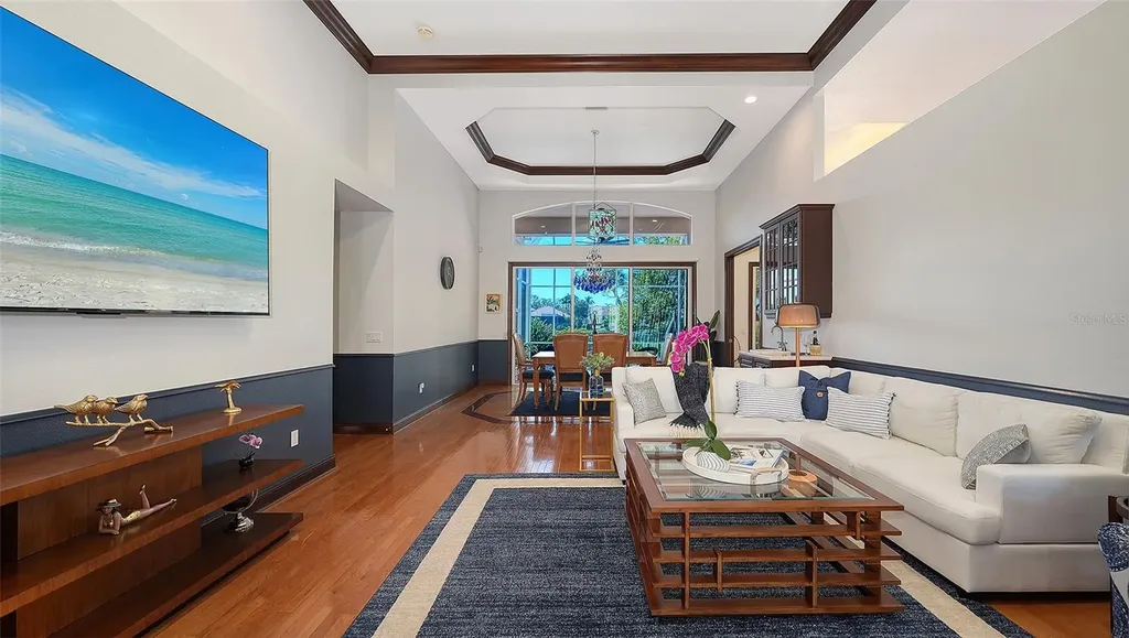 Nestled behind the gates of Queens Harbour in Bay Isles, this exceptional single-story home offers a rare blend of privacy, space, and effortless Longboat Key living-perfectly positioned on a quiet cul-de-sac with sweeping views along the 4th hole of the Longboat Key Club's Blue Heron golf course. Spanning approximately 2,579 sq. ft., the thoughtfully designed floor plan features three bedrooms, two full baths, and a half bath, with flexible spaces that adapt beautifully to your lifestyle. A large, dedicated office/den with beautiful glass French doors and custom cabinetry offers outstanding flexibility and can serve as an additional sleeping space if desired. Inside, soaring 14-foot ceilings, rich wood flooring, and an open living-and-dining layout create an airy, welcoming atmosphere. A generous great room is framed by walls of sliding glass doors, opening to the pool and patio for seamless indoor-outdoor living-ideal for entertaining or simply unwinding with tranquil golf course views. The kitchen is perfectly placed for everyday living and gathering, featuring solid wood cabinetry, stone countertops, a center island with a veggie sink, pantry storage, a gas cooktop, and stainless-steel appliances. Two generous guest suites are ideally situated in this split plan, sharing a full bath with the ability to be closed off from the main living area. The private primary suite is a true retreat with golf course views across your private pool and spa. The spa fountain's soft, flowing water creates a soothing backdrop that drifts into the bedroom through the sliding door access to the patio. The spacious bedroom features a walk-in closet, additional wall closet and a well-appointed en-suite bath with dual sinks, a soaking tub, separate shower, and private water closet. Outdoors, enjoy the screened private pool and spa with multiple seating areas and ample room to lounge and entertain in total comfort. The home has been immaculately maintained and includes new pool equipment and pool heater, a resurfaced pool, tile roof (2020), tankless gas water heater, as well as several additional upgrades - perfect move-in condition. Queens Harbour residents enjoy a maintenance-free lifestyle with 24-hour guard-gated security, with a community heated pool and spa just across the street. Ownership also includes deeded access to the private Bay Isles Beach Club, offering Gulf-front pavilions, grilling areas, multiple beach volleyball courts and a pristine beach only minutes away. Perfectly located within the gates of the Resort at Longboat Key Club's Harborside Golf course and 290 slip deep-water Moorings marina, and close to island dining-plus easy access to St. Armands Circle, Lido Beach, and downtown Sarasota-this golf course home delivers the space, privacy, and location that define Longboat Key at its best.