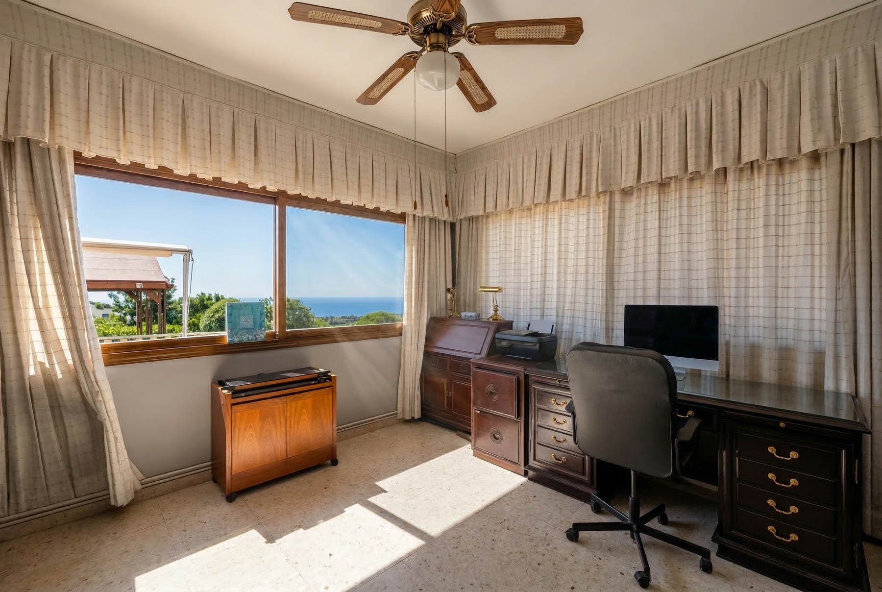 Nestled in the prestigious area of Melisovouno, in the charming hillside village of Tala, this exceptional detached villa offers a rare combination of privacy, space, and breathtaking panoramic sea views as well as mountain views. Including Coral bay peninsula. Set on an expansive plot, the property boasts an impressive internal covered areas, thoughtfully designed to provide comfort, functionality, and elegant living. The elevated position ensures uninterrupted views of the Mediterranean, creating a serene backdrop for everyday life. The villa features four spacious bedrooms plus a dedicated office, ideal for remote work or a quiet study area. Two well-appointed bathrooms and an additional guest WC provide convenience for both family living and entertaining. The layout offers generous living and dining areas filled with natural light, seamlessly blending indoor and outdoor living. A standout feature of this home is the abundance of storage space, ensuring practicality without compromising aesthetics. Multiple large verandas wrap around the property, offering the perfect setting for hosting gatherings, sunset dinners, or relaxed evenings with friends and family while enjoying the panoramic coastal views. The generous plot provides ample outdoor space with swimming pool. This villa in Melisovouno, Tala, presents a unique opportunity to own a spacious, view-oriented home in one of the most prestigious residential areas near Paphos — ideal as a permanent residence, holiday retreat, or investment property.