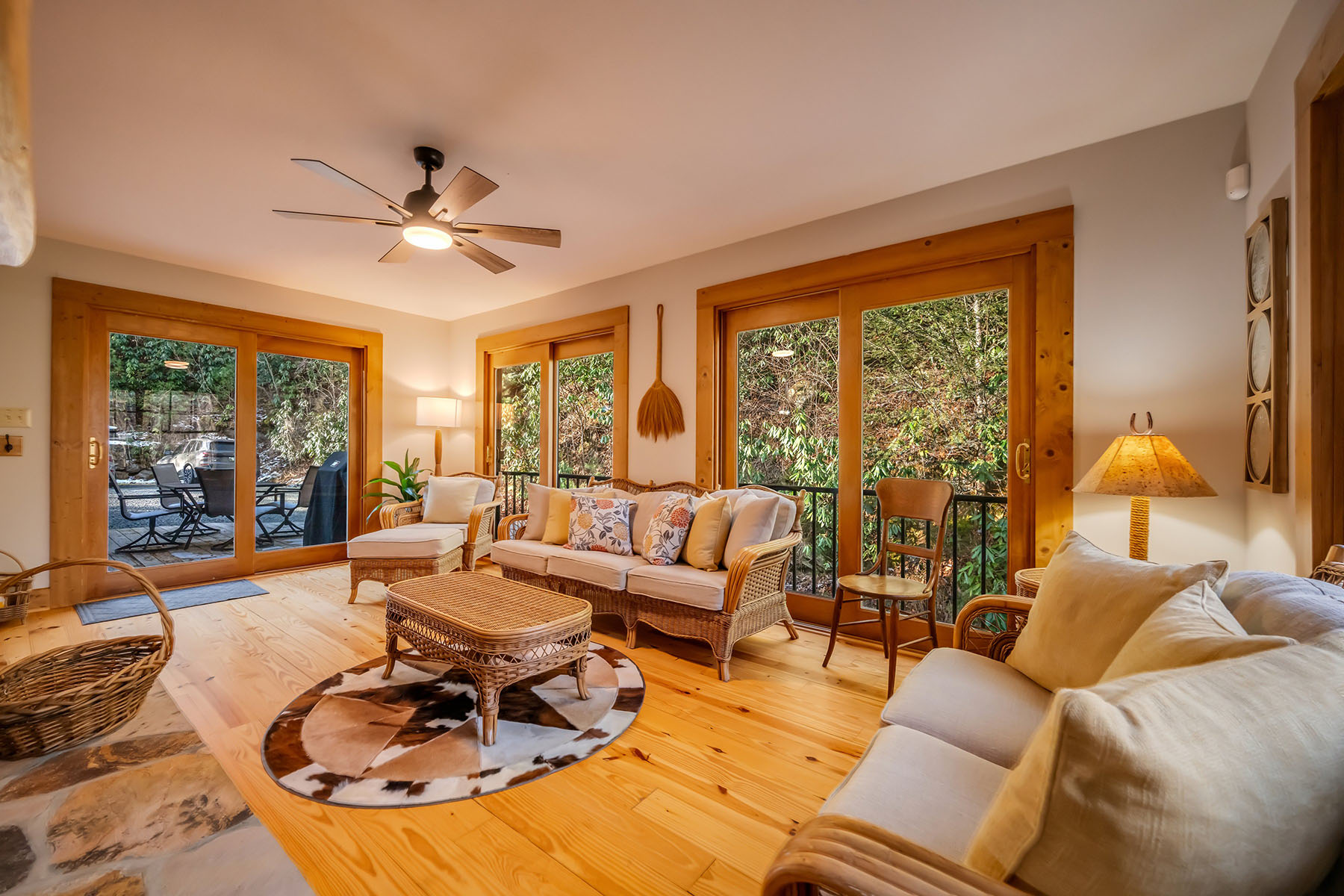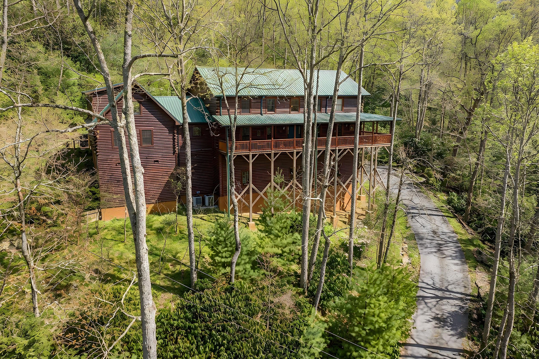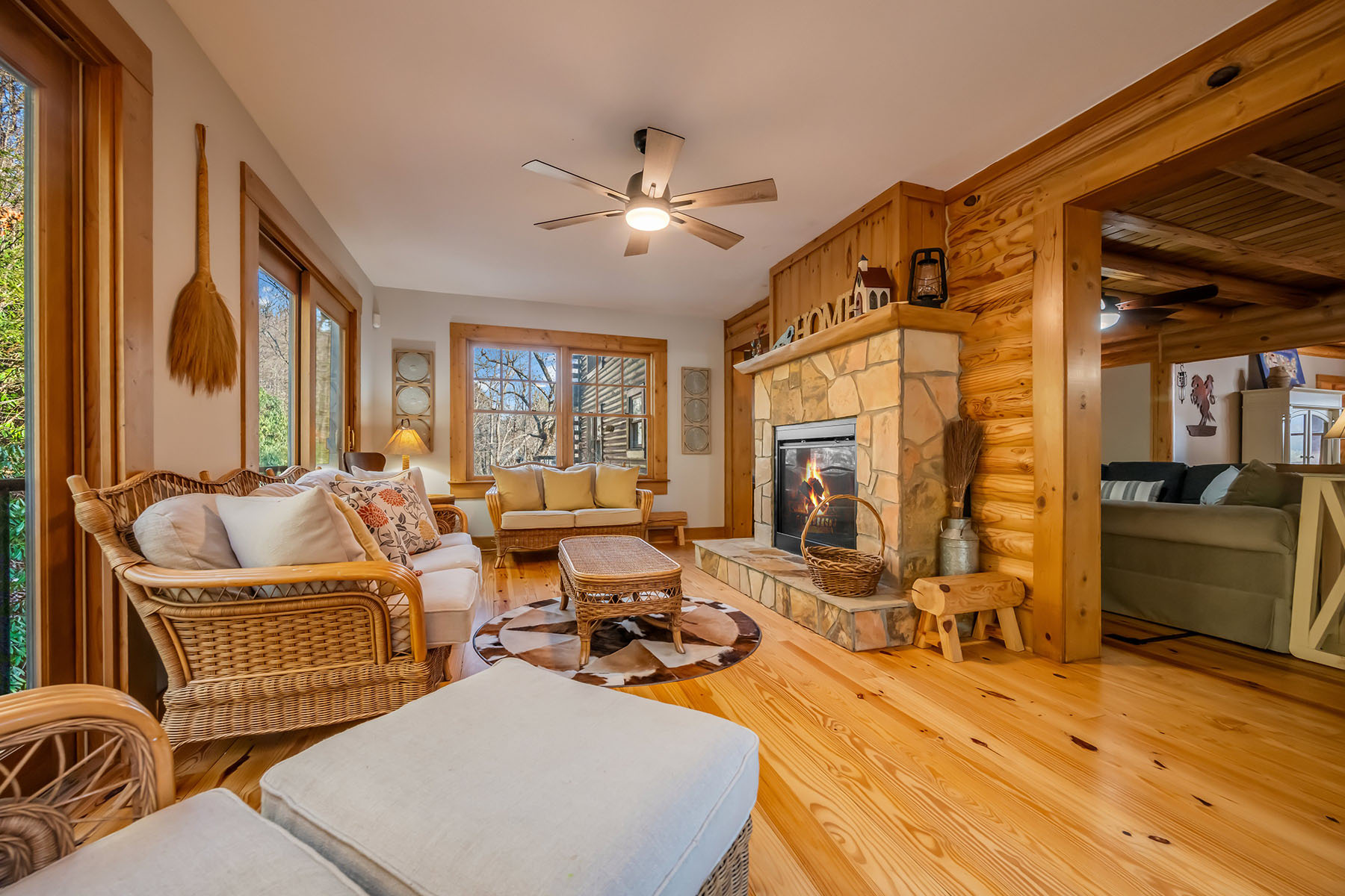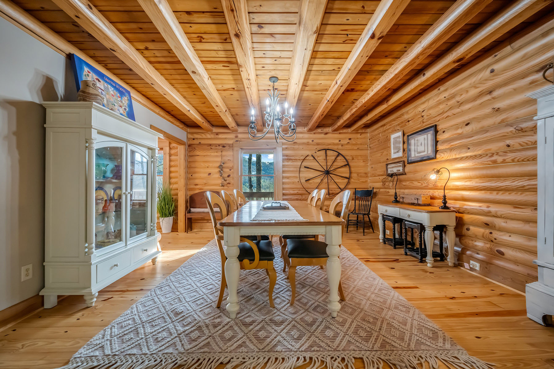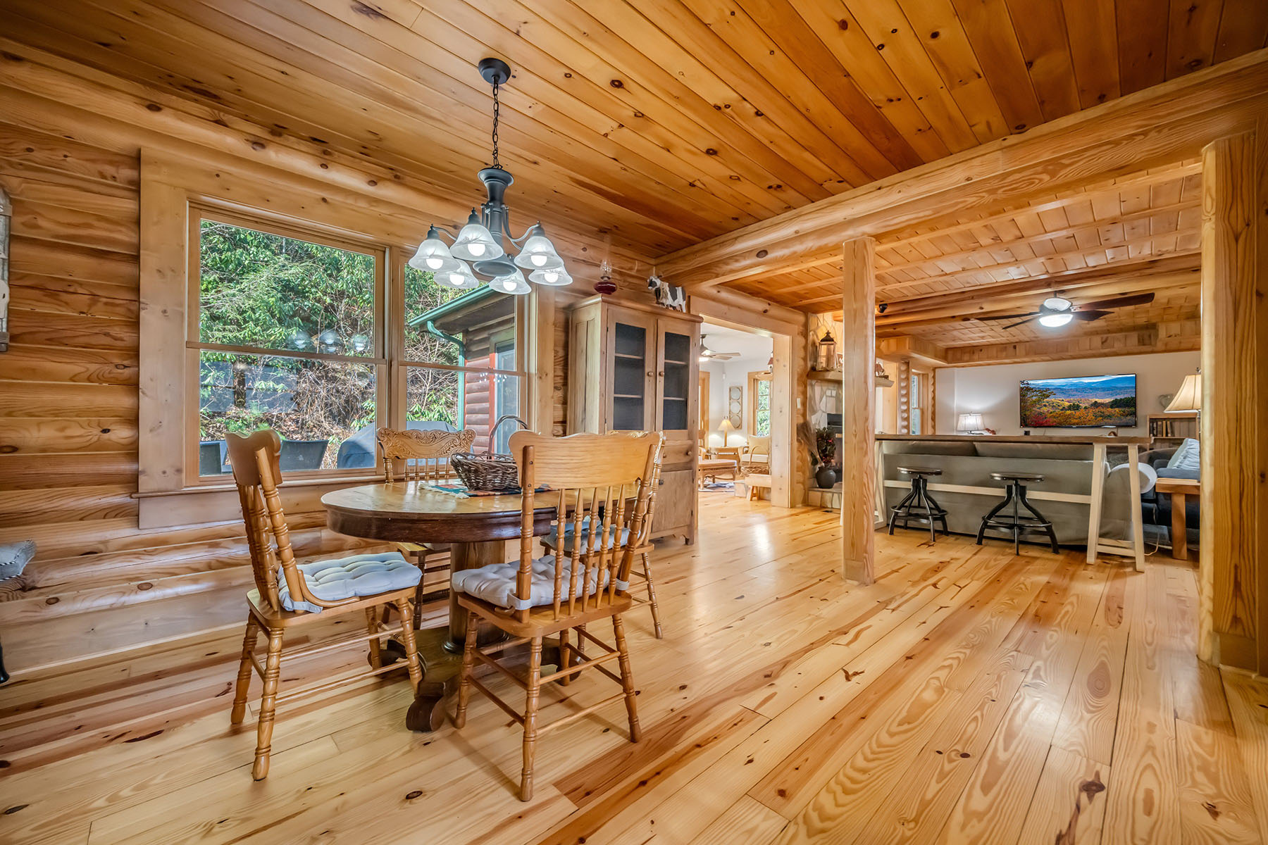 Welcome to Mountainside Lodge, a fully furnished custom log retreat set on 5.73 private acres in the heart of historic Valle Crucis. Offering nearly 4,000 square feet, five bedrooms and seven sleeping areas, this expansive property is designed to host, gather and generate potential income, delivering exceptional value at $1,150,000. An additional 544 square feet of heated finished living space above the garage, used as a game room, is not included in the total square footage. Originally operated as a bed and breakfast and now a successful vacation rental, the home is thoughtfully configured with five private bedroom suites, each with an en-suite bath, allowing guests to enjoy comfort and privacy. Multiple indoor and outdoor gathering spaces make it easy to accommodate large groups, creating an ideal setting for family retreats, group vacations or potential income-producing stays. The main living area is anchored by a double-sided stone gas fireplace, complemented by a warm log interior that reflects classic mountain design with updated finishes. The oversized kitchen is built for connection and entertaining, featuring three ovens, a large central island and multiple refrigeration options, allowing for seamless hosting of large gatherings. A separate heated game room above the garage provides an additional private retreat, complete with a pool table, air hockey, dart board and large television. This flexible space allows guests to gather and unwind without disrupting the main living areas. Outdoor living is a defining feature of the property. A wraparound covered porch offers multiple seating areas, outdoor dining space and a swing, while the hot tub and fire pit overlook wooded surroundings and mountain views. A fenced area for pets is conveniently accessed directly from the wraparound deck, adding functionality and ease for pet owners. Recent improvements include a metal roof installed in 2022, paved driveway and exterior enhancements, contributing to long-term durability and accessibility. The property also offers an oversized two-car garage and ample parking for guests. Just minutes from Valle Crucis Community Park, the Watauga River and a short drive to Banner Elk, Boone and Blowing Rock, the home provides convenient access to hiking, fishing, skiing and year-round High Country attractions. With its established rental history, ability to accommodate large groups and turnkey furnishings, this property presents a compelling opportunity for a private mountain estate, vacation home or potential income-producing investment property. Rental evaluation available upon request. A distinctive mountain retreat where space, setting and versatility come together to support memorable gatherings and long-term value.