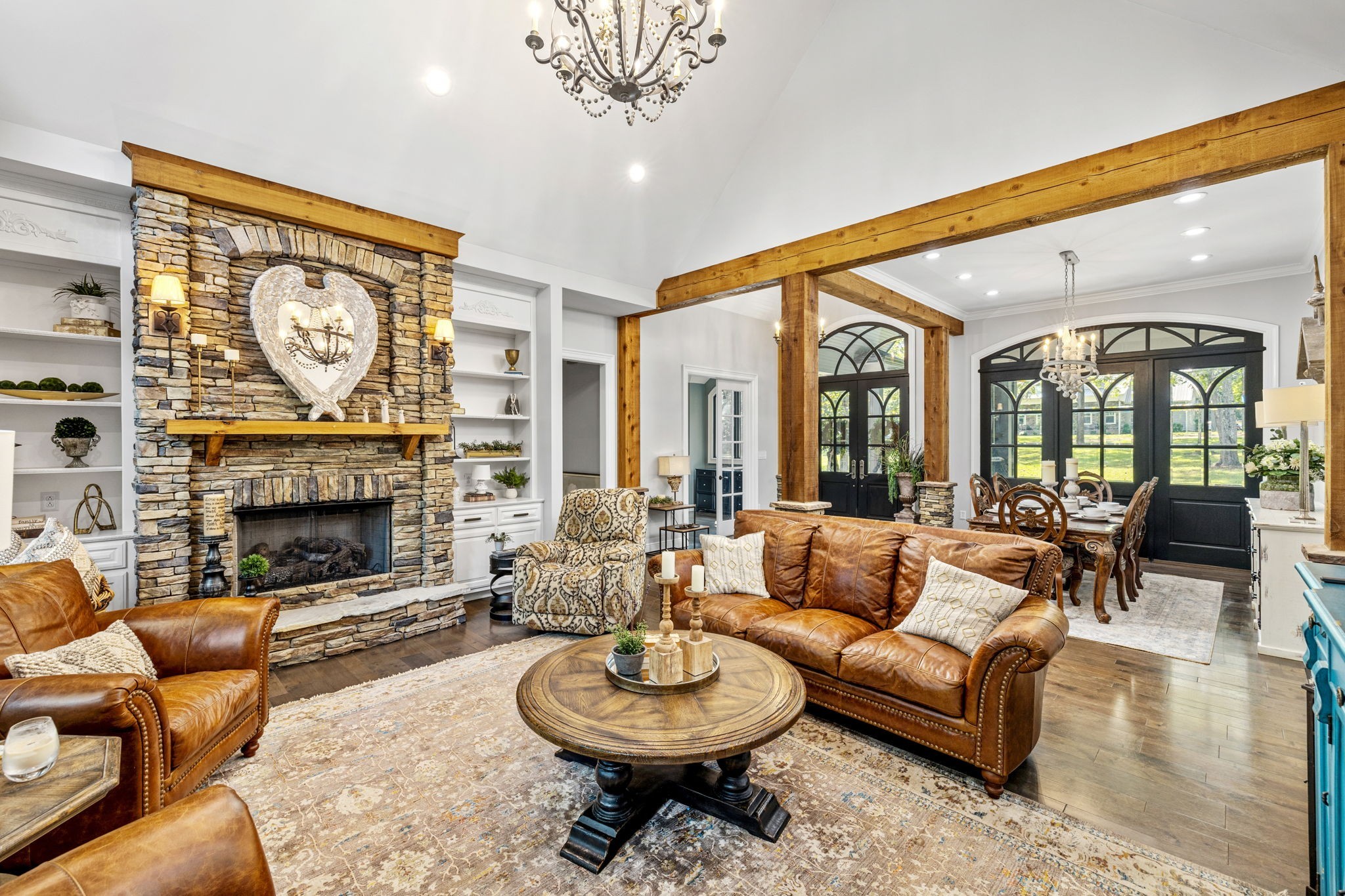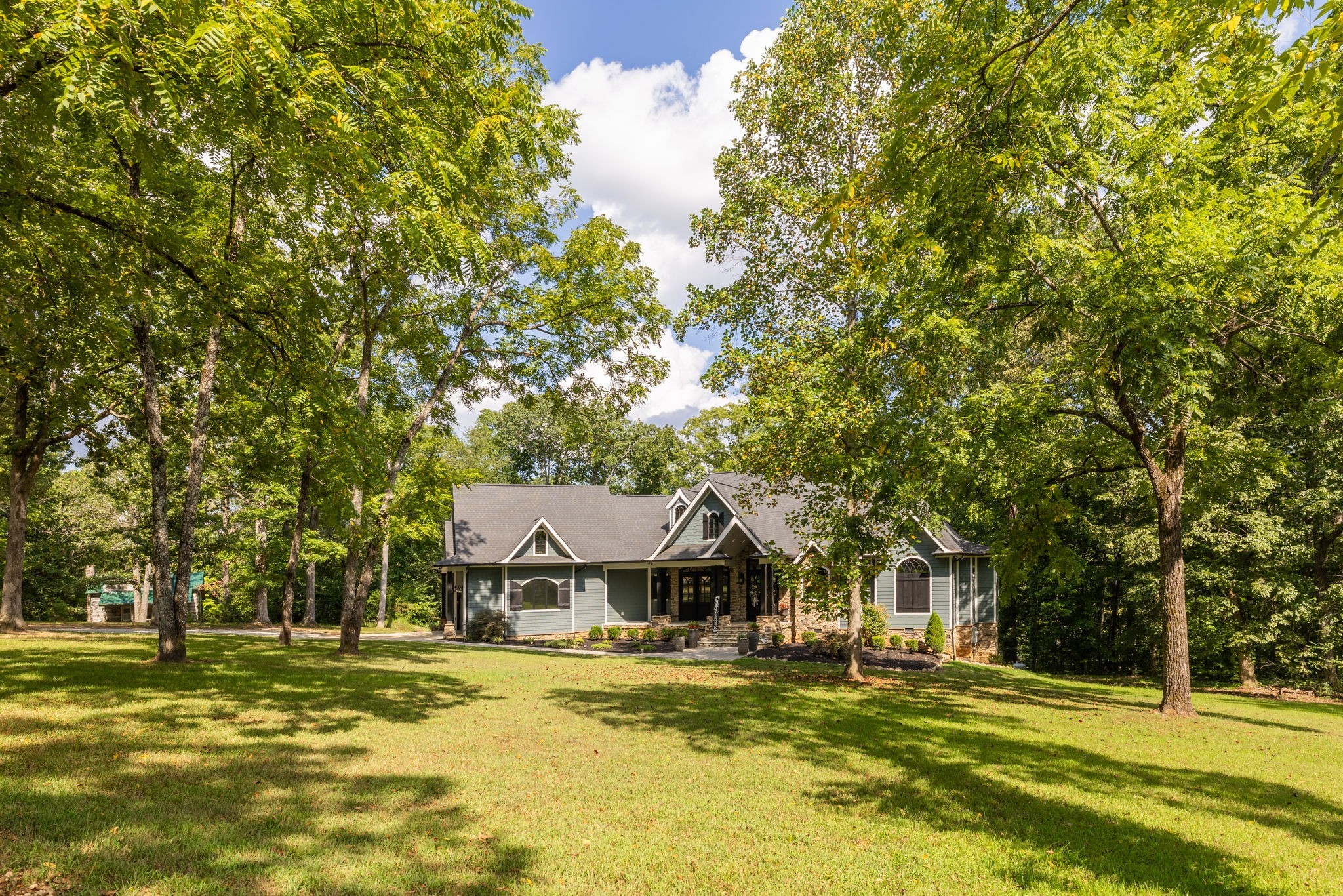 Welcome to this 3,736 sq. ft. custom-built lakefront retreat, designed by the owner with an emphasis on style, comfort, and peaceful southern living. Inside, you’ll find hardwood floors throughout, soaring glass windows that fill the home with natural light, and breathtaking lake views—even from the primary bedroom. The main level offers two spacious bedrooms, with an option for a third, plus an office that connects to the luxurious primary suite. The primary bath features a custom walk-through tile shower, while the oversized walk-in closet with custom shelving is truly impressive. Upstairs, a private suite above the garage feels like its own apartment with a bedroom, bathroom, living room, and plumbing in place for a kitchen—ideal for guests, extended family, or even rental potential. Outdoor living is just as special. A wraparound porch overlooks the 25-acre free-flowing lake, while this property boasts one of the largest lake frontages in the community, complete with two private docks for boating, fishing, or relaxing by the water. Inside, Nashville-crafted stonework creates a stunning fireplace and columns, with matching stone carried to the exterior for timeless appeal. Residents also enjoy a spacious community clubhouse with its own private dock, perfect for hosting events or gatherings on the lake. Blending luxury with southern charm, this home offers the best of both worlds—peaceful living with modern comfort and unmatched views. Don’t miss your chance to own this rare lakefront treasure, where every detail has been thoughtfully designed. Schedule your private showing today!