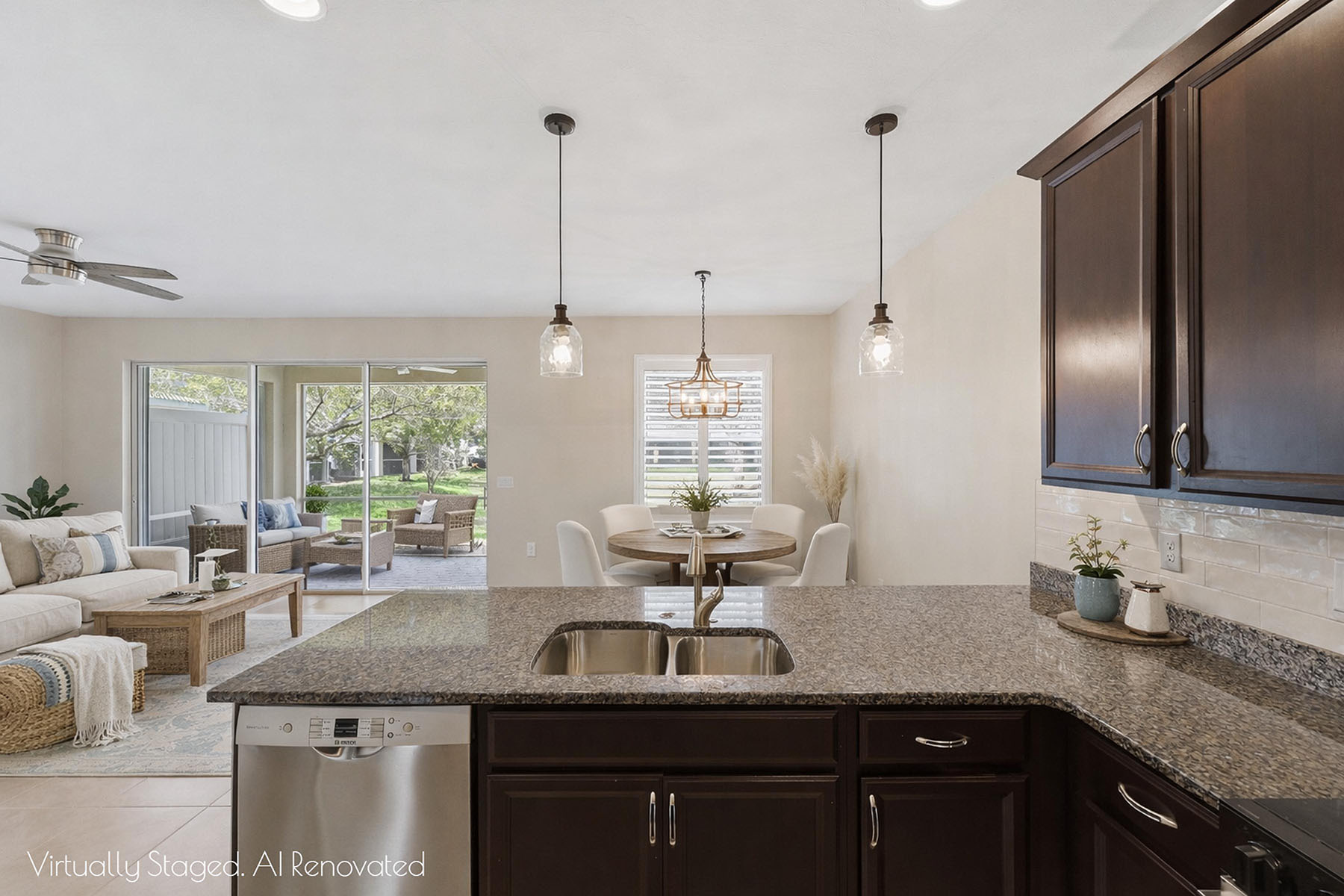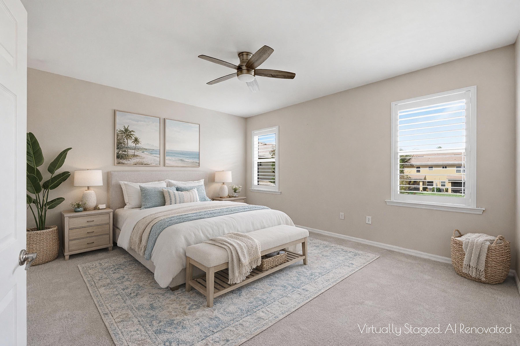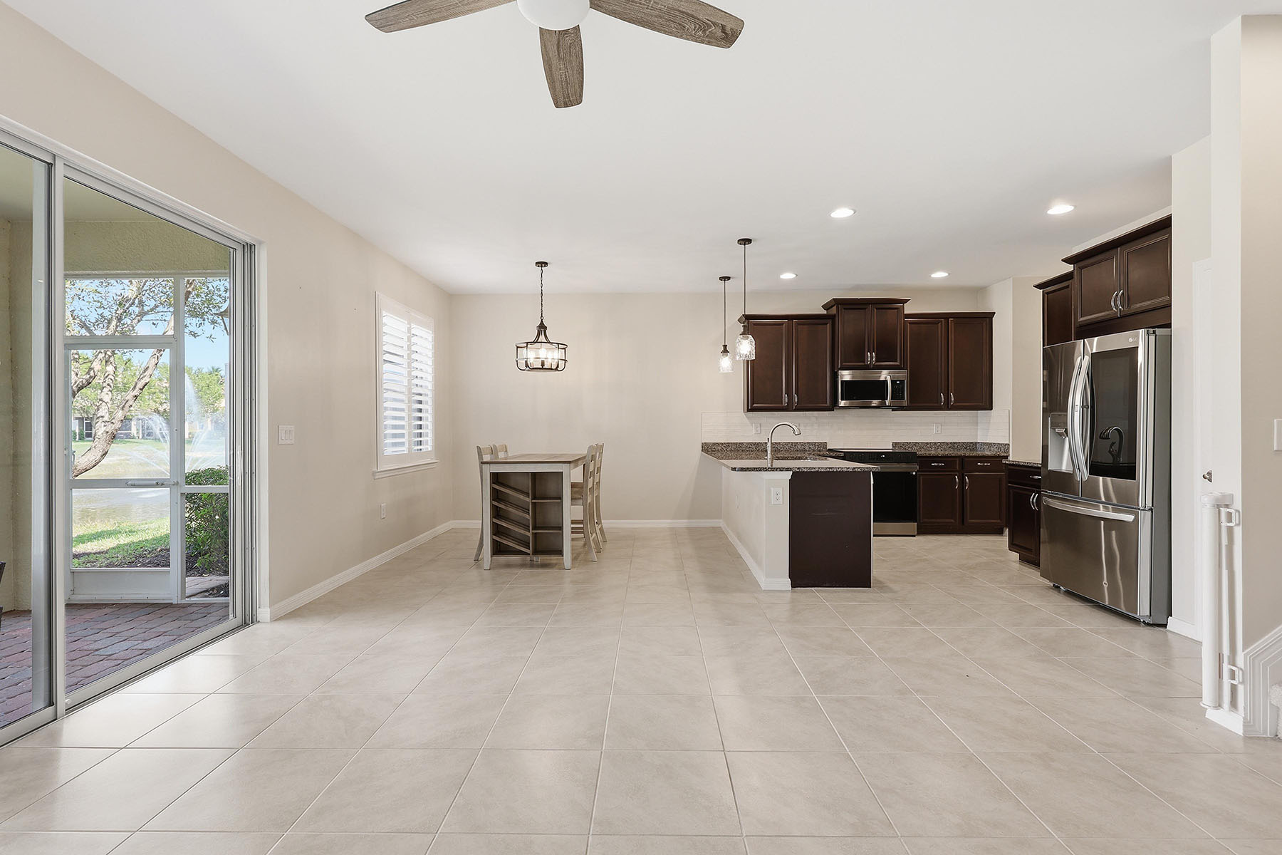 Discover contemporary townhome living in Cordera, a gated community in Bonita Springs. Built in 2016, this two-story residence offers three bedrooms, two-and-one-half baths and approximately 1,826 square feet of thoughtfully designed living space with lake and fountain views. The open-concept floor plan connects the kitchen, dining and living areas, creating a comfortable setting for everyday living and entertaining. The kitchen features granite countertops, 42-inch cabinetry and new stainless steel appliances, complemented by tile flooring throughout the main living areas and newer carpeting in the bedrooms. Sliding glass doors open to a paved lanai with northern exposure overlooking the community lake, providing a peaceful outdoor space to relax. Upstairs, the spacious primary suite includes a walk-in closet and an updated en-suite bath with dual sinks. Additional features include a second-floor laundry room, new water heater and an attached two-car garage with electric car charger. Residents of Cordera enjoy access to resort-inspired amenities, including a clubhouse, fitness center, pool and grilling area surrounded by landscaped grounds. The community's location on Imperial Parkway provides convenient access to Coconut Point Mall, historic downtown Bonita Springs, Everglades Wonder Gardens and Bonita Springs Public Library. Nearby attractions include Florida Gulf Coast University, Hertz Arena, Southwest Florida International Airport and beaches along the Gulf of Mexico. Offering convenience and lifestyle appeal, this Bonita Springs townhome presents an opportunity to enjoy lake views, community amenities and proximity to the shopping, dining and coastal recreation that define Southwest Florida living.