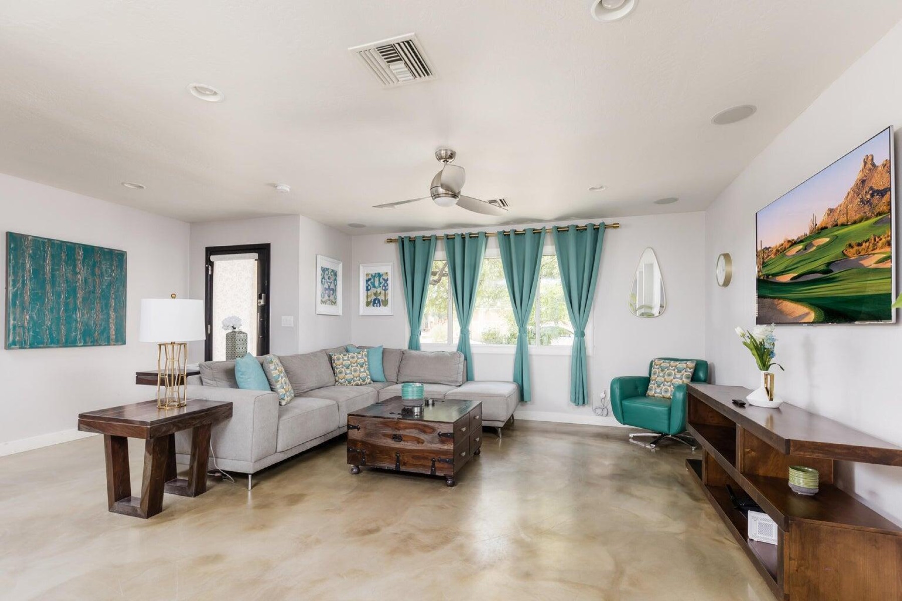 Perfectly situated in the heart of South Scottsdale, this fully furnished designer home offers over 1,900 square feet of single level living with the util. The thoughtfully updated interior features new flooring, fresh paint, designer appliances, a functional open-concept layout ideal for modern living, The spacious primary suite is complemented by generously sized guest bedrooms.The backyard is designed for seamless indoor-outdoor entertaining, low maintenance and an oversized pool. Manicured landscaping in the front yard lends itself to an exceptional design, functionality and low maintenance. Ideally located near fine dining, shopping, and entertainment. Take advantage of this golden opportunity to live the Scottsdale lifestyle in a completely renovated home at an affordable rate.