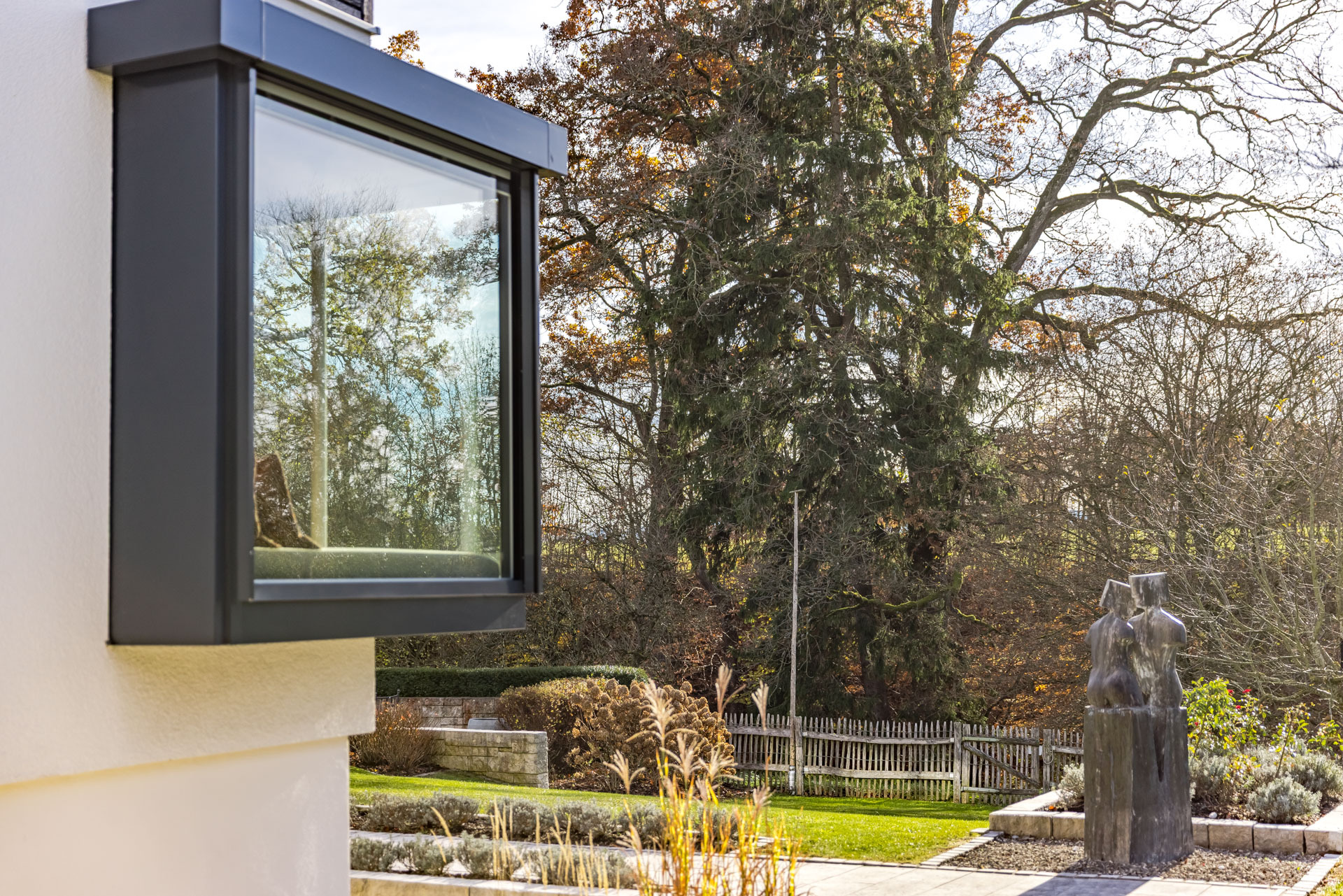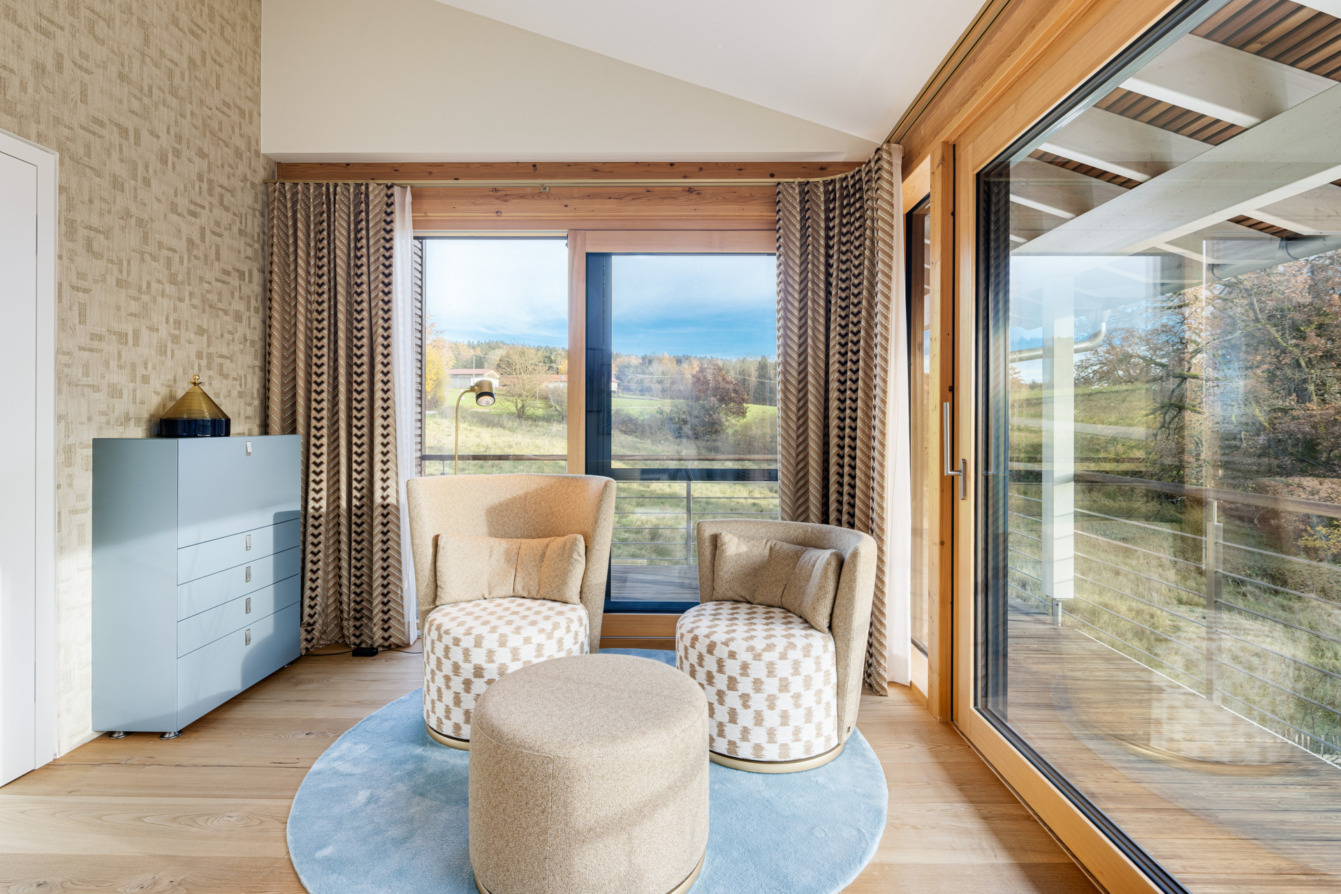 This modern architect-designed house impresses with its clear lines, open floor plans and light-flooded rooms. The architecture focuses on spacious, interconnected living areas that create a natural connection between inside and outside. Large window fronts provide a view of the secluded garden and the surrounding landscape and allow plenty of daylight into all levels of the house.The central living and dining area with fireplace has an open-plan design and flows seamlessly into the high-quality kitchen. Materials such as warm wooden floorboards, elegant tiles and sophisticated lighting create a modern, homely ambience. The bedrooms on the upper floor offer retreat areas with views of the greenery, while the bathrooms are comfortably equipped and combine functionality with design.The basement is developed and includes an exclusive wellness area with sauna, fitness zone and shower - a private area for rest and relaxation. Balcony, terrace and garden extend the living areas outside and offer numerous opportunities to enjoy nature to the full.The architecture and furnishings of the house are modern, high-quality and sustainable. The energy-efficient construction to KfW 55 standard, air-to-water heat pump and underfloor heating ensure low energy consumption and a high level of living comfort.Energy dataEA-B; 11.9 kWh/(m²*a); Electricity; Year of construction 2015; A_PLUSCommissionThe brokerage contract with us is concluded by written agreement or confirmation in text form on the basis of the property exposé and our General Terms and Conditions. The commission to be paid by the buyer to MIR München International Realty Verwaltungs GmbH, master licensee of München I Sotheby`s International Realty and Tegernsee I Sotheby`s International Realty, in the event that a notarized purchase agreement is concluded, is 3.57% (incl. 19% VAT) of the purchase price and is due upon conclusion of the notarized purchase agreement. The seller has to pay us a commission in the same amount.