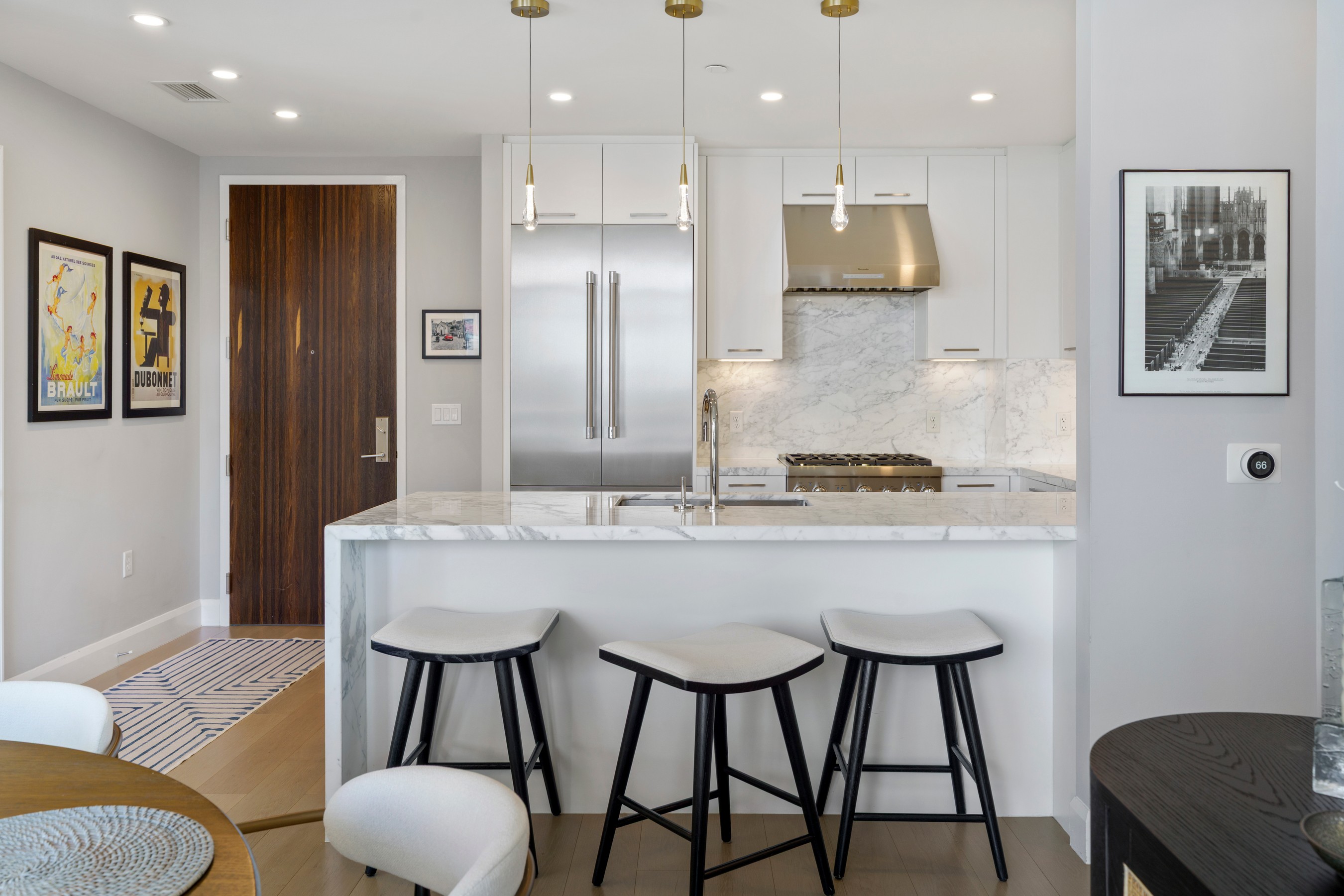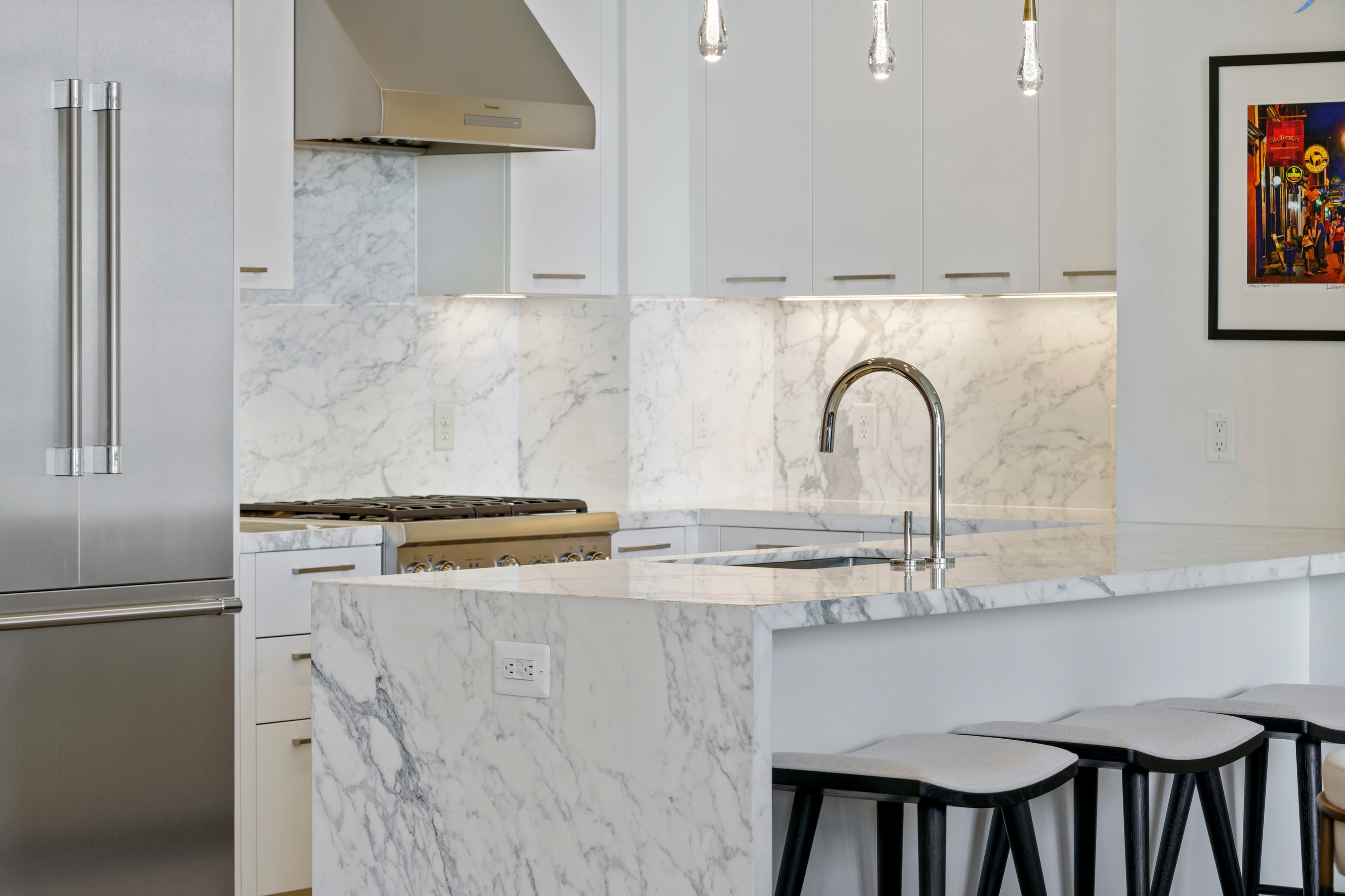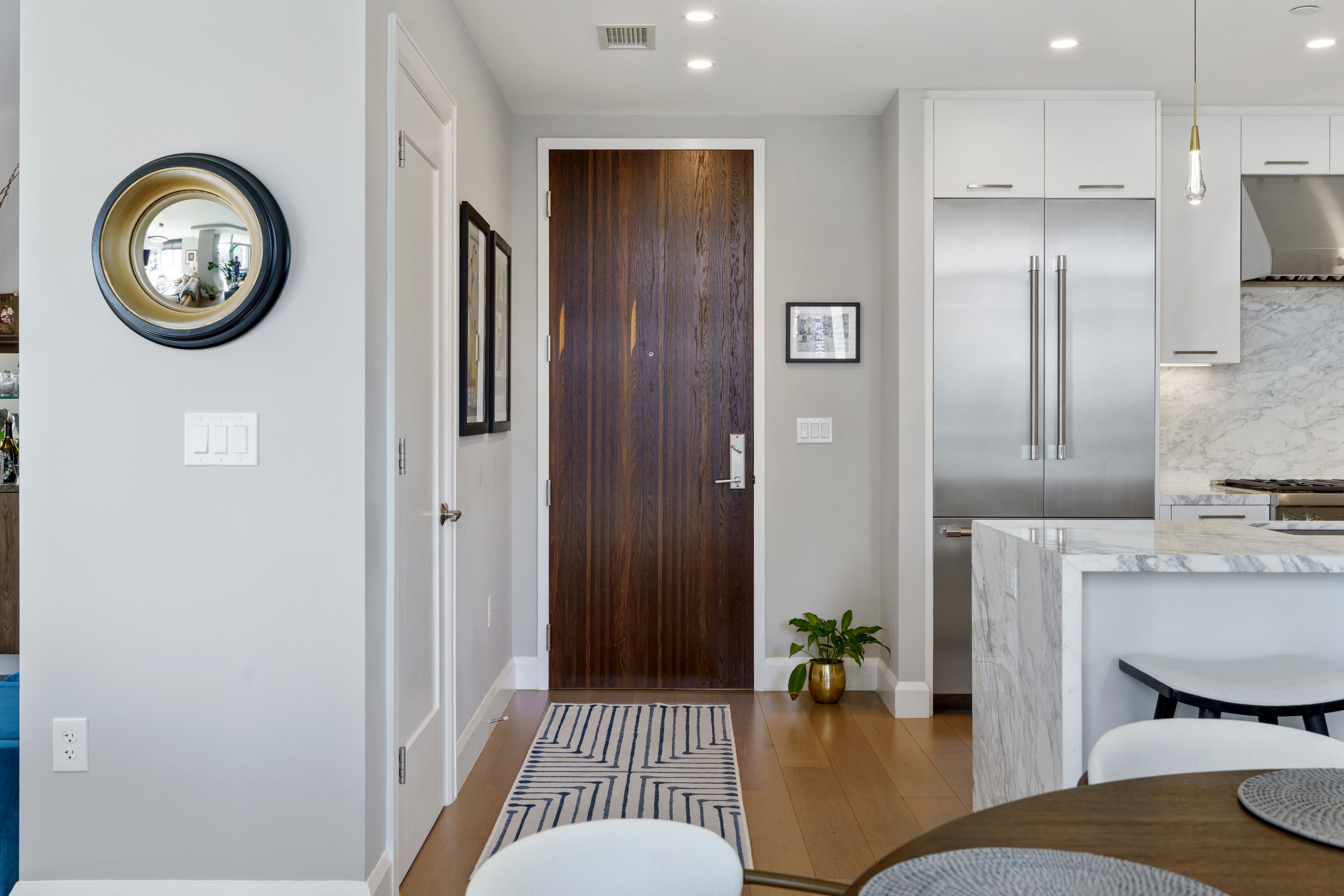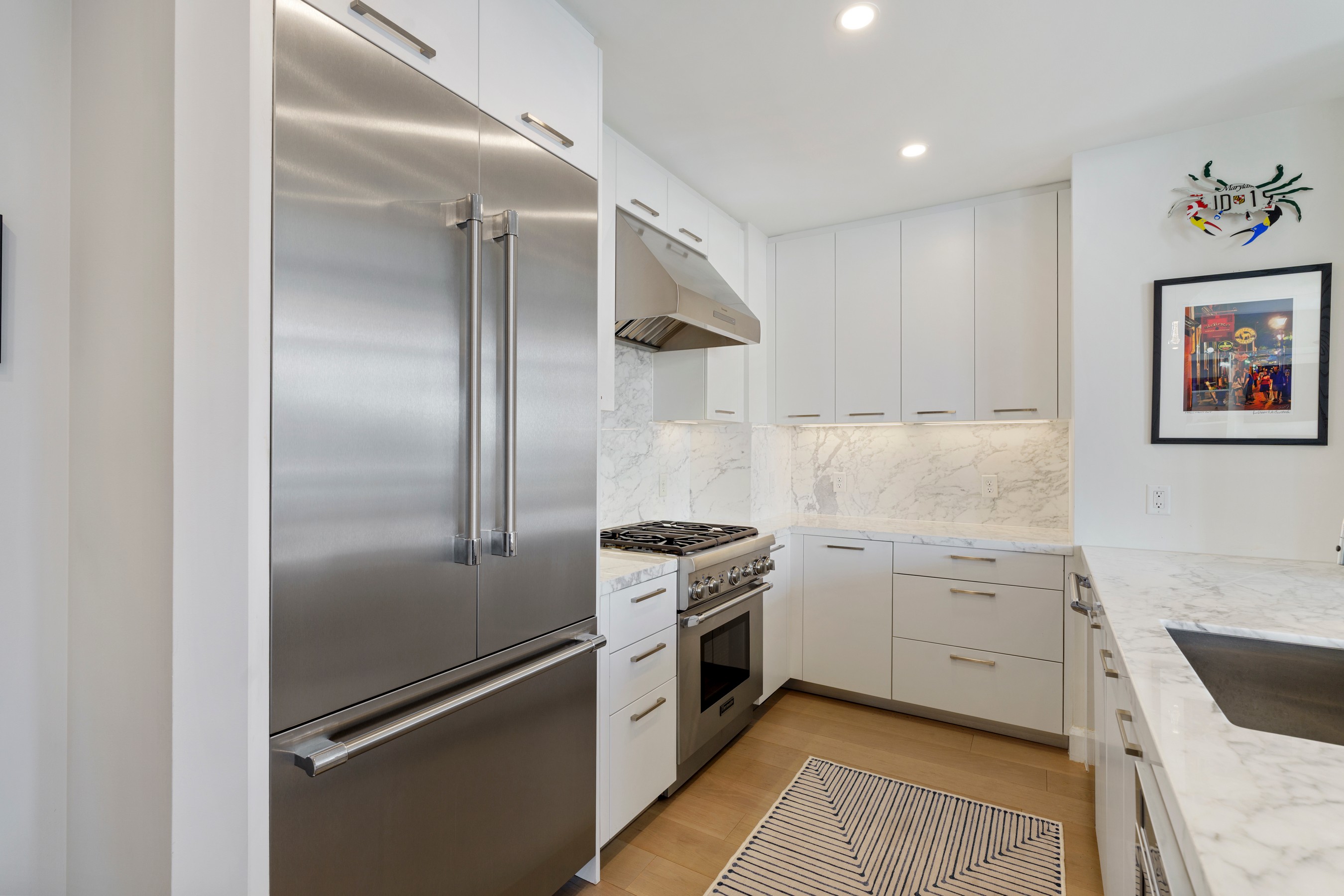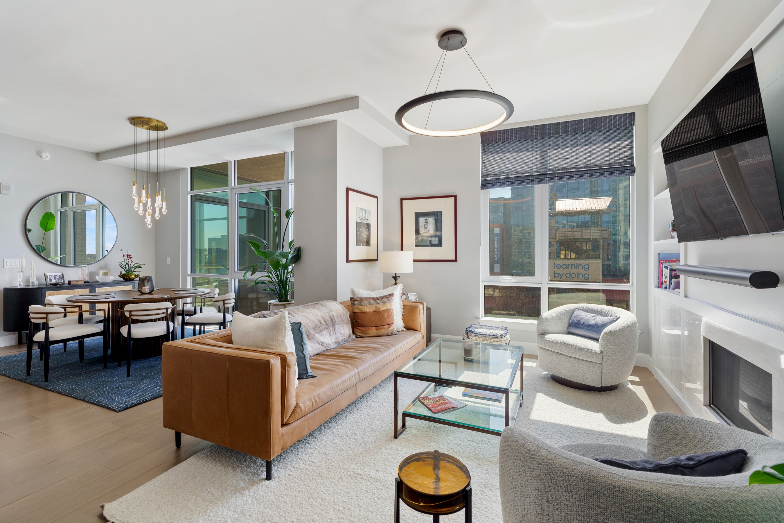 Welcome to waterfront, elevated city living at The Liberty Harbor East, one of the most sought-after boutique residences in Harbor East, where modern design meets vibrant waterfront energy. This extraordinary fifth-floor residence, built in 2019, offers 1,163 square feet of refined living space with one bedroom, one full bath, and a versatile den. Recently enhanced with thoughtful, high-end upgrades, the home now features fresh designer paint, new modern lighting with Lutron smart lighting system, and custom built-ins that elevate both style and functionality. The layout has been reimagined with the removal of the wall between the den and living area, creating an even more open and expansive living space, perfect for today's lifestyle. From the moment you enter, you're greeted by soaring ten-foot ceilings and dramatic floor-to-ceiling windows that flood the home with natural light while showcasing breathtaking southwest views of downtown Baltimore. New custom blinds, fully integrated with Alexa for smart home convenience, add both luxury and ease of living. The living and dining areas flow seamlessly into a chef's kitchen featuring sleek Italkraft cabinetry, premium Thermador appliances, and a striking Calacatta marble waterfall island, ideal for entertaining. Tucked privately beyond the foyer, the spacious primary suite has been elevated with a stunning custom wood-paneled accent wall and offers access to a private balcony overlooking the iconic Inner Harbor. The spa-inspired bath is a true retreat, featuring Carrara marble, Kallista and Kohler fixtures, an expansive walk-in shower, and a custom dual vanity, while the oversized walk-in closet provides abundant storage. Additional upgrades include a whole-house water filtration system and a new hot water heater, ensuring comfort and peace of mind. Residents of The Liberty enjoy a full suite of resort-style amenities, including a rooftop infinity pool with cabanas, a state-of-the-art fitness center and yoga studio, pet park with agility equipment, and beautifully designed social spaces such as a clubroom with indoor and outdoor bar, private dining rooms, and a concierge lounge. Additional conveniences include a secure package room, ButterflyMX smart intercom system, conference rooms, EV charging stations, and garage parking availability. Adding to the unmatched lifestyle, The Liberty offers direct access to a flagship Whole Foods Market, making everyday living effortless. Just steps away, Harbor East is home to some of Baltimore's finest dining, boutique shopping, and scenic waterfront promenades, placing the very best of the city right outside your door. This is more than a home, it's a lifestyle defined by luxury, convenience, and sophistication in one of Baltimore's premier waterfront communities.