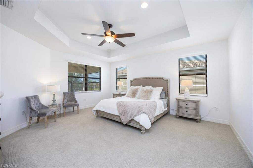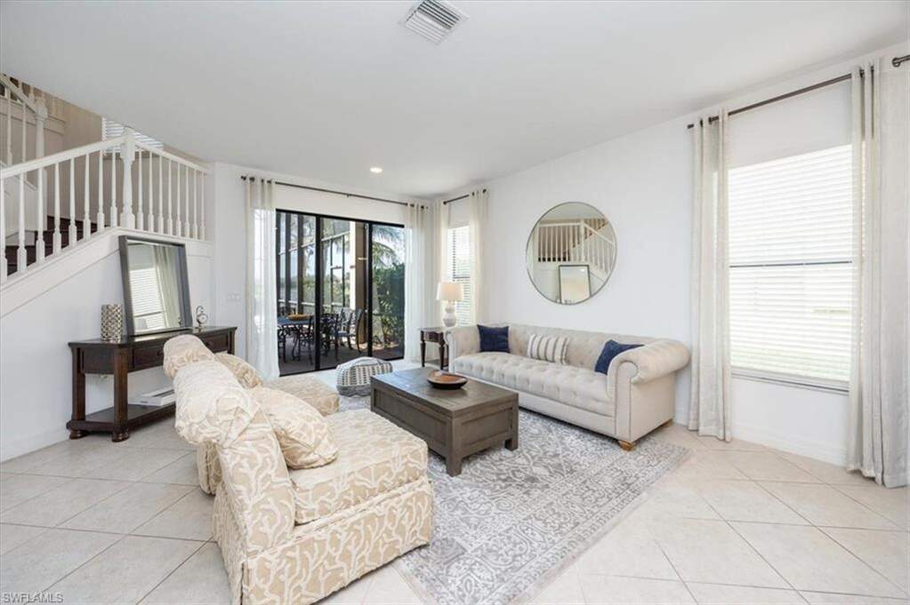 "Live Life Beautifully In Southwest Florida" in the highly desirable Marbella Isles community, this exceptional Shiraz floor plan single-family home offers an expansive layout with six bedrooms, a loft/flex space, and five full bathrooms. Boasting one of the most breathtaking lake views in the neighborhood, this property provides the perfect blend of luxury, comfort, and outdoor living. With western exposure, you can enjoy stunning sunsets over the serene waters from your private oasis. The long heated lap pool and spacious outdoor living area make this home an entertainers dream, offering ample space for family gatherings and relaxation. Inside, the home features tile flooring throughout the main living areas, with plush carpet in the bedrooms and wood flooring on the stairs and in the upstairs loft and walkways. The updated kitchen is a chefs delight, complete with stainless steel appliances, a wine fridge, and plenty of cabinetry for storage. The open-concept design flows seamlessly into the dining and living areas, creating an inviting space for daily living and entertaining. The spacious master bedroom is a true retreat, overlooking the pool area and offering serene lake views. The master bath is equally impressive, featuring two water closets, a separate soaking tub and walk-in shower, and dual vanities. The suite also includes two expansive walk-in closets, providing an abundance of storage and space for your wardrobe. Marbella Isles is a resort-style community with low fees, offering a range of amenities including tennis courts, pickleball courts, exercise, game, and card rooms, as well as a resort-style pool and a separate kids pool with slides. The community is guard-gated, providing added security and peace of mind. Centrally located in Naples, this home is just minutes from local beaches, only seven minutes to the upscale Mercato shopping and dining center, 15 minutes to downtown Naples, and a 25-minute drive to Southwest Florida International Airport. This home offers the ultimate Florida lifestyle.